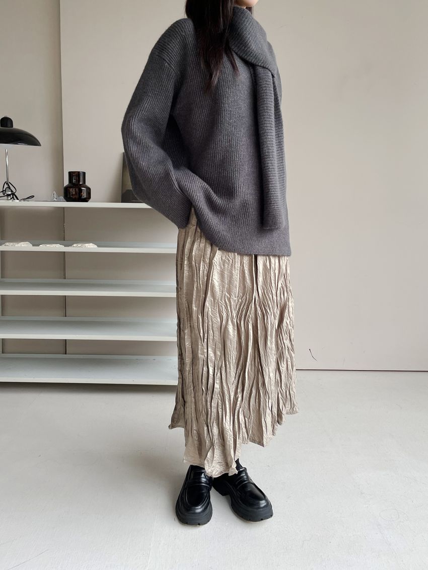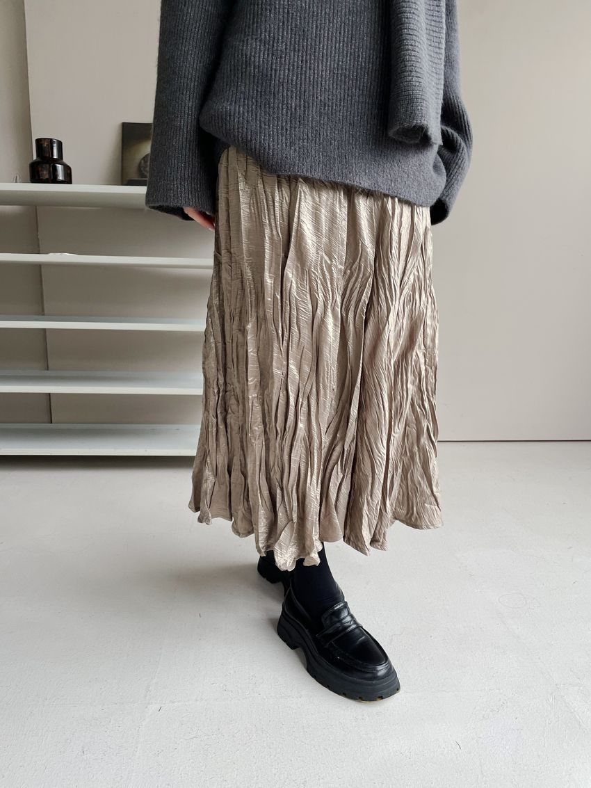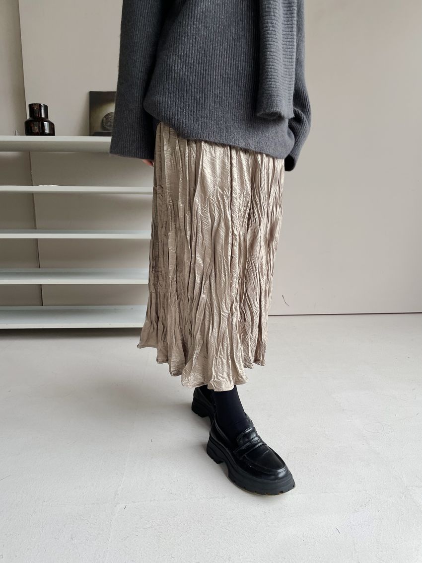 > 揉皺金屬光澤雪紡裙(直播影片)(特)