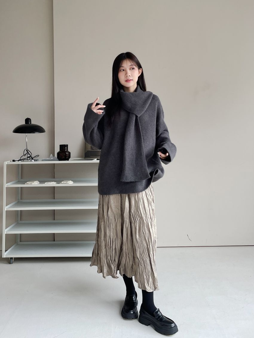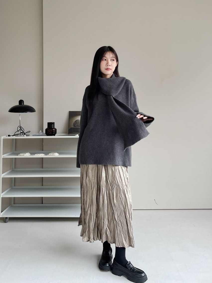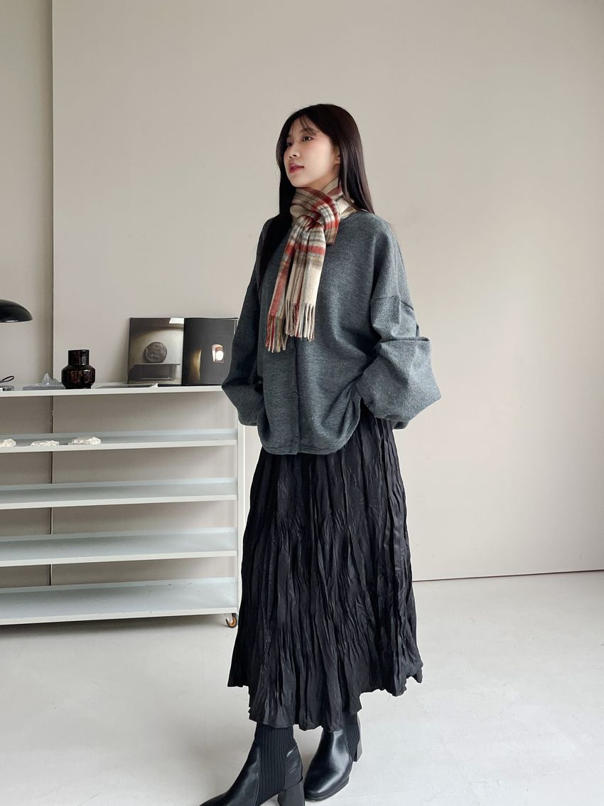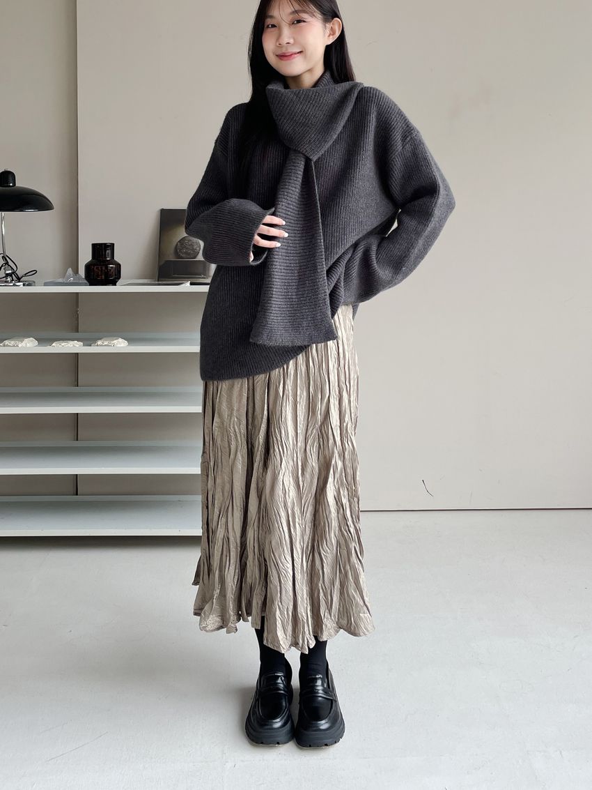 > 揉皺金屬光澤雪紡裙(直播影片)(特)