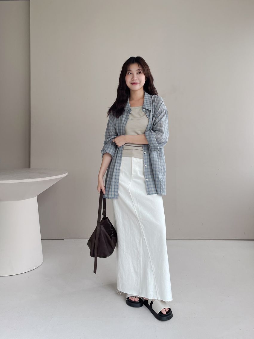> 白單寧小A字長裙(特)
