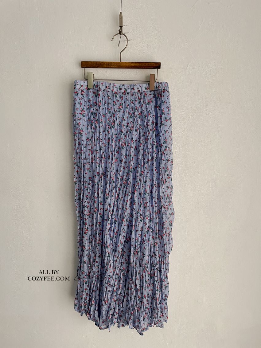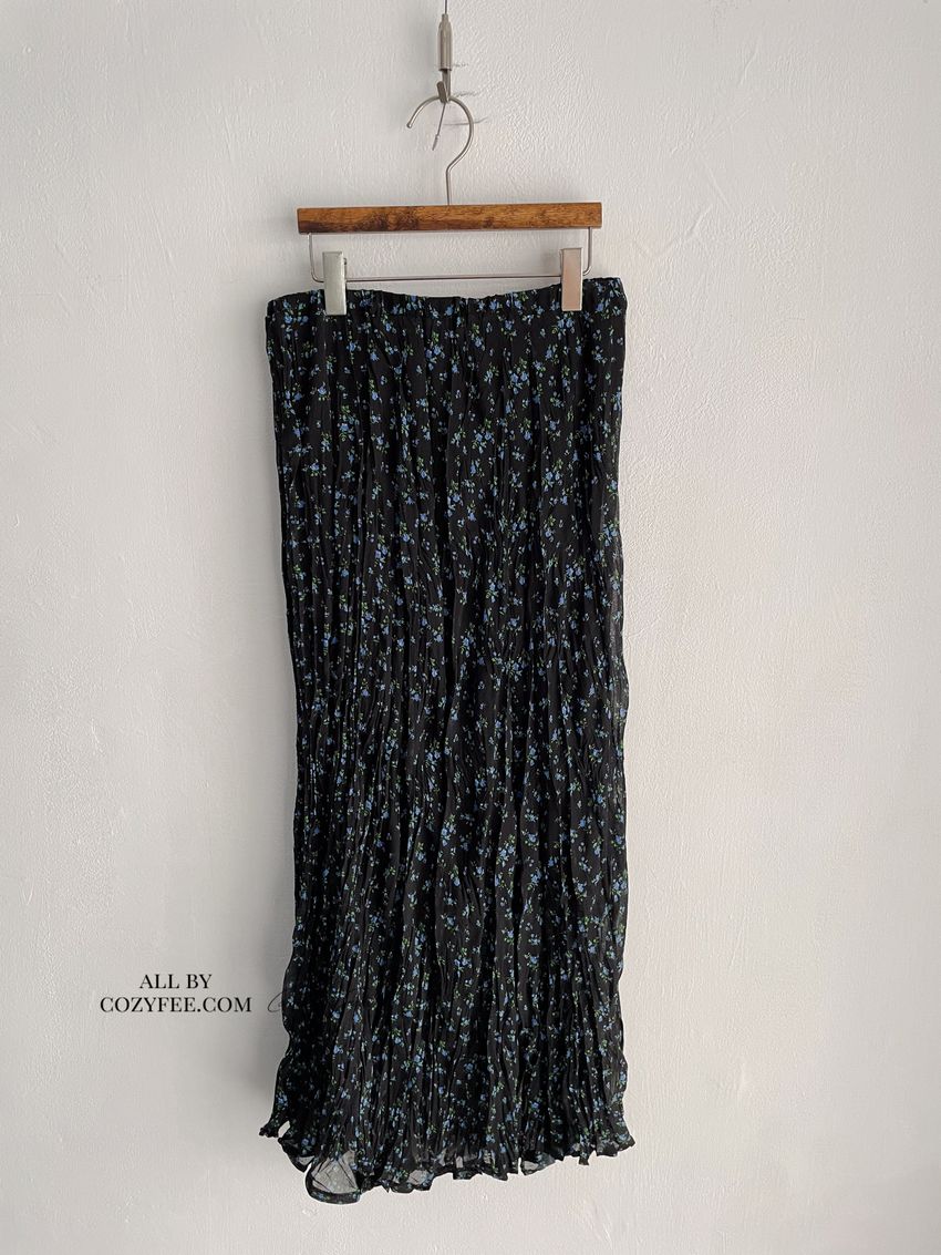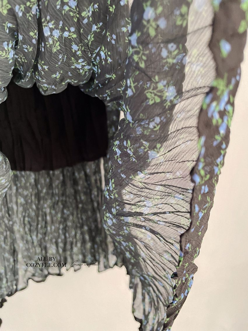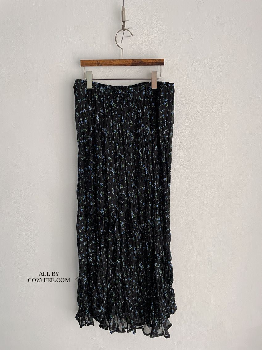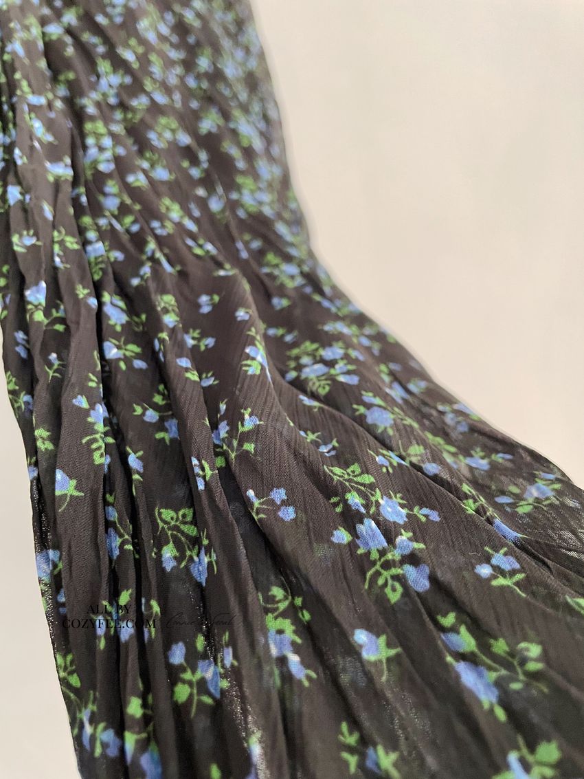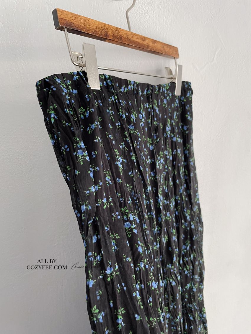 > 皺紙藍星花雪紡長裙(直播款)(特)