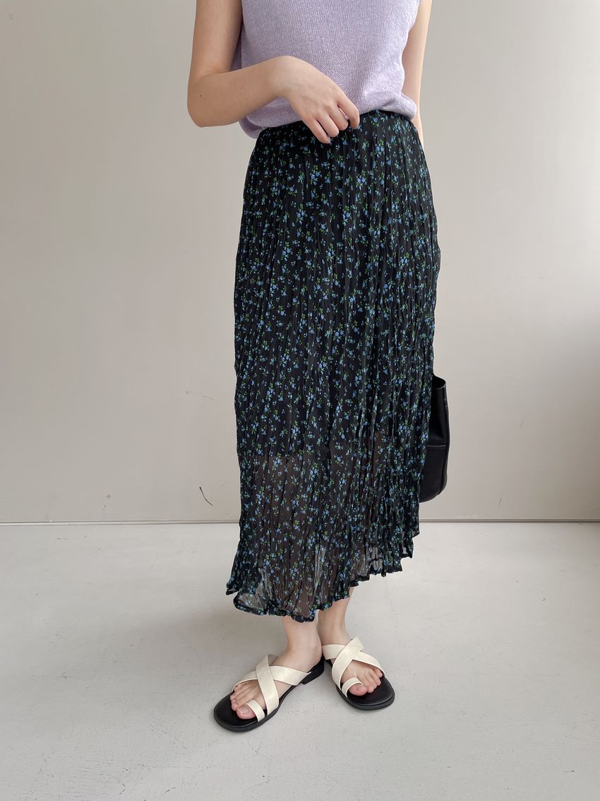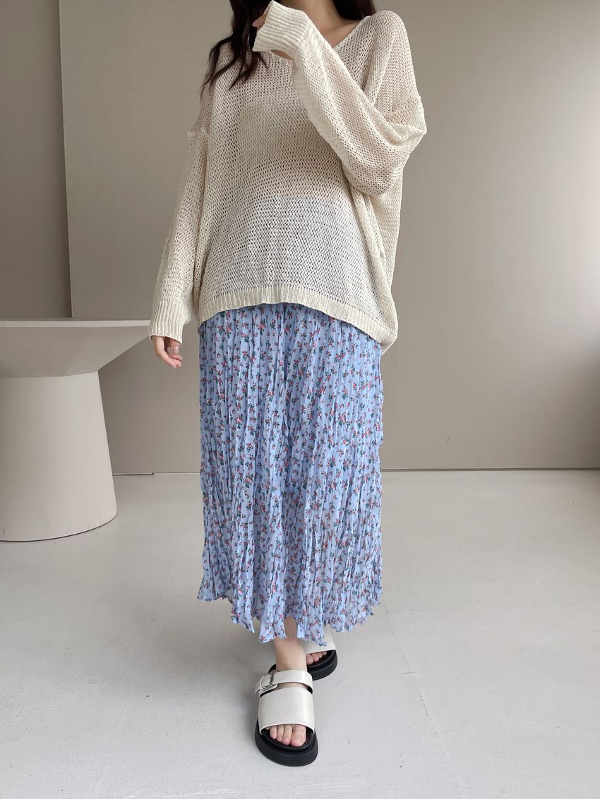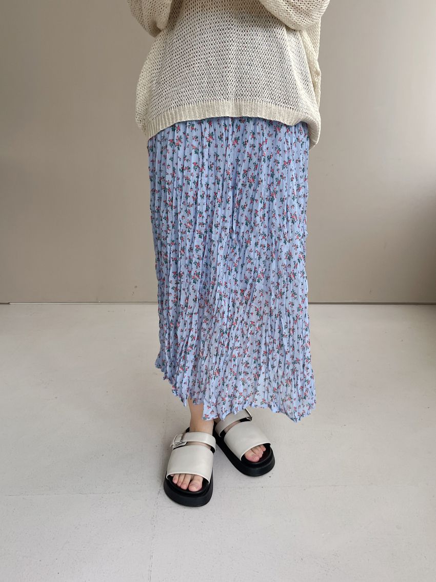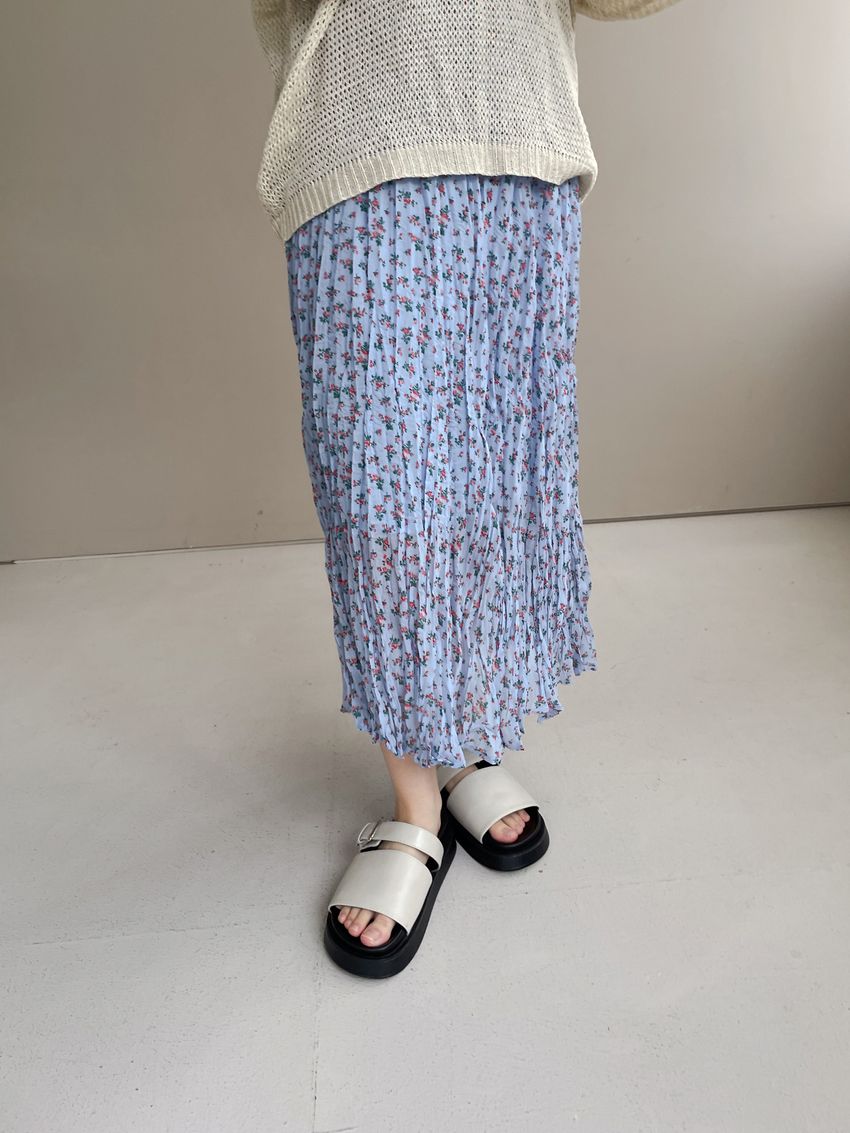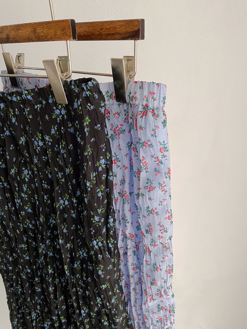 > 皺紙藍星花雪紡長裙(直播款)(特)