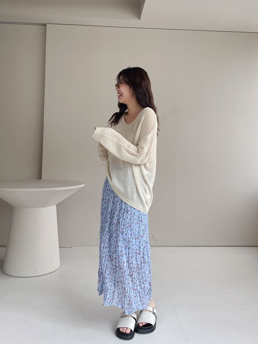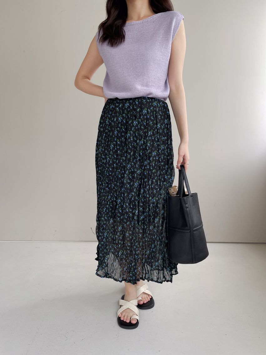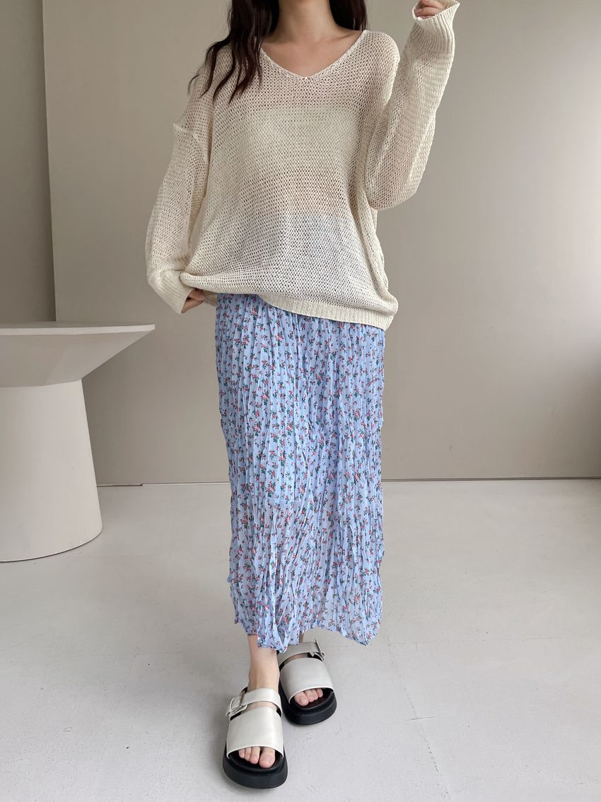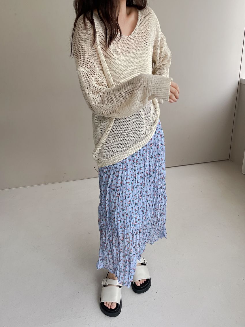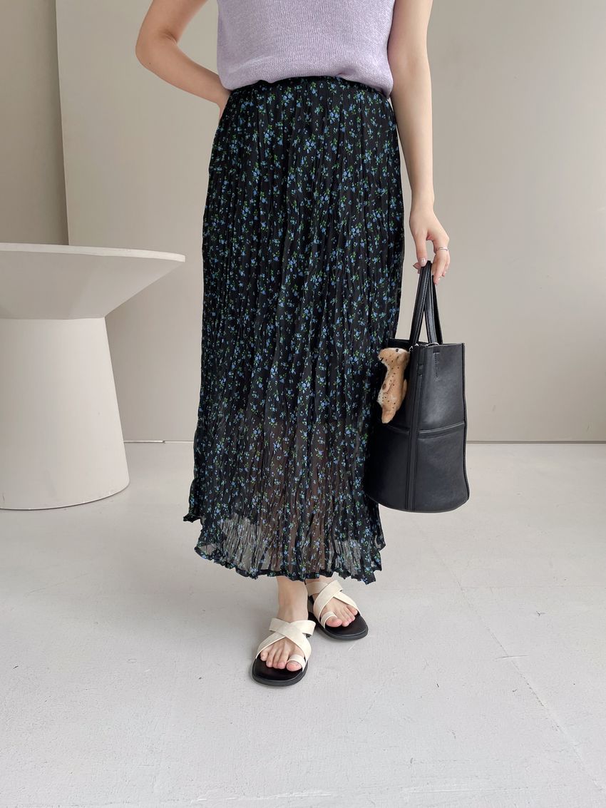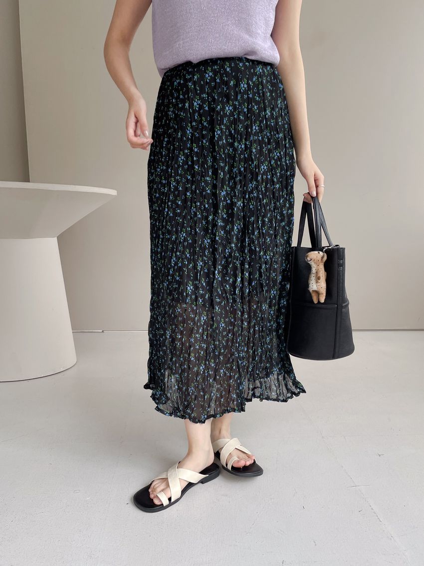 > 皺紙藍星花雪紡長裙(直播款)(特)