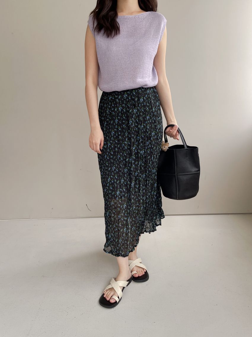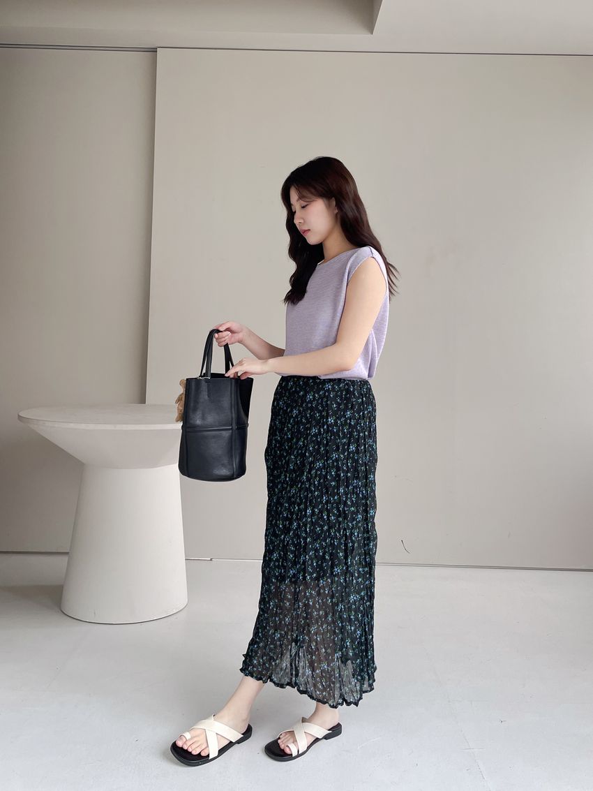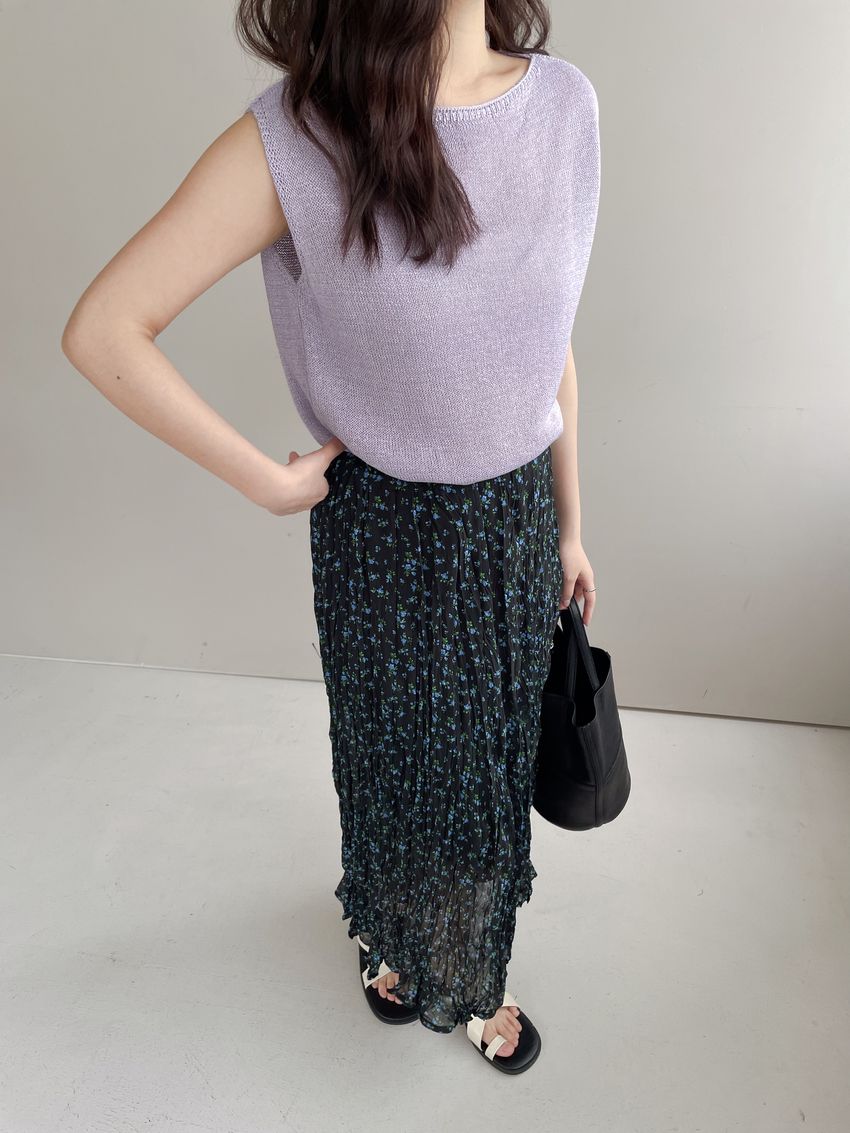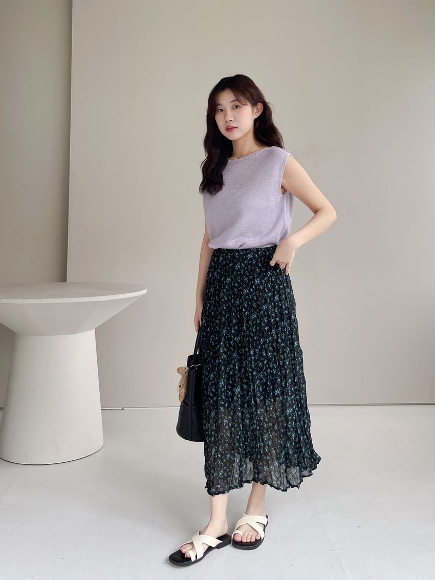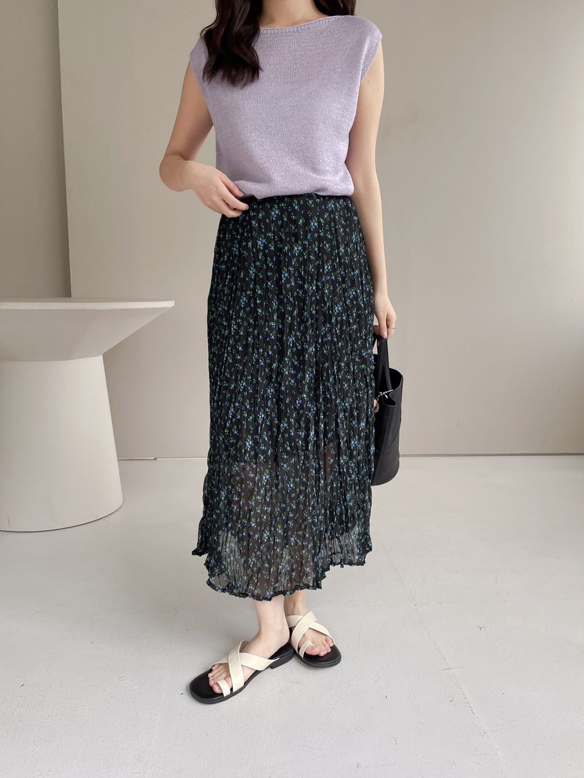> 皺紙藍星花雪紡長裙(直播款)(特)