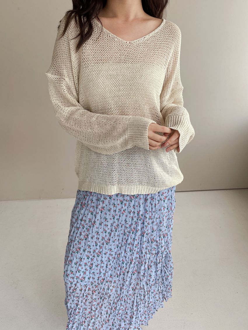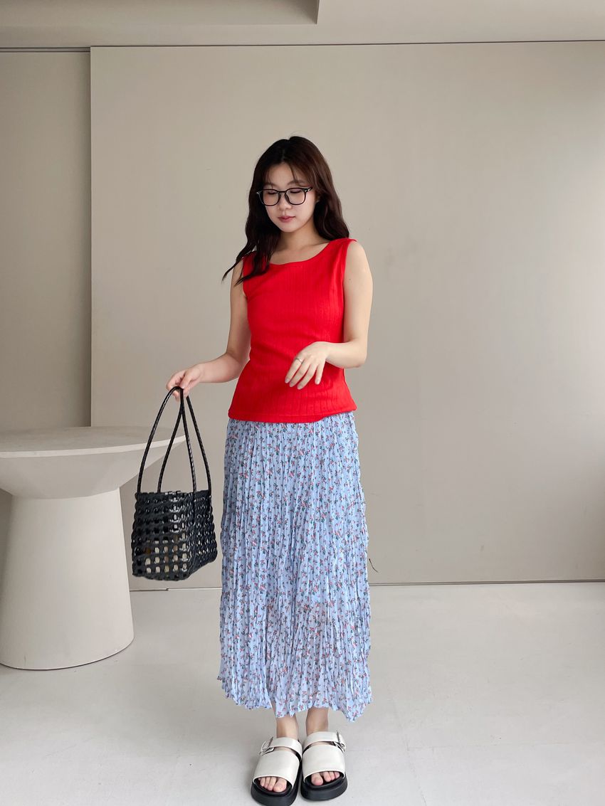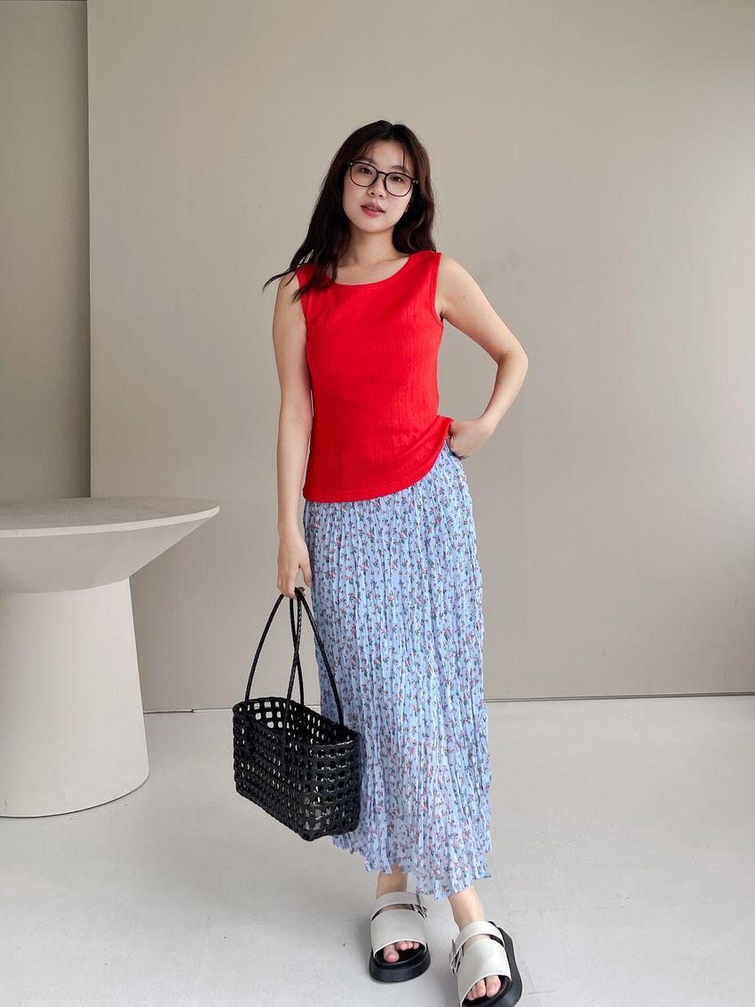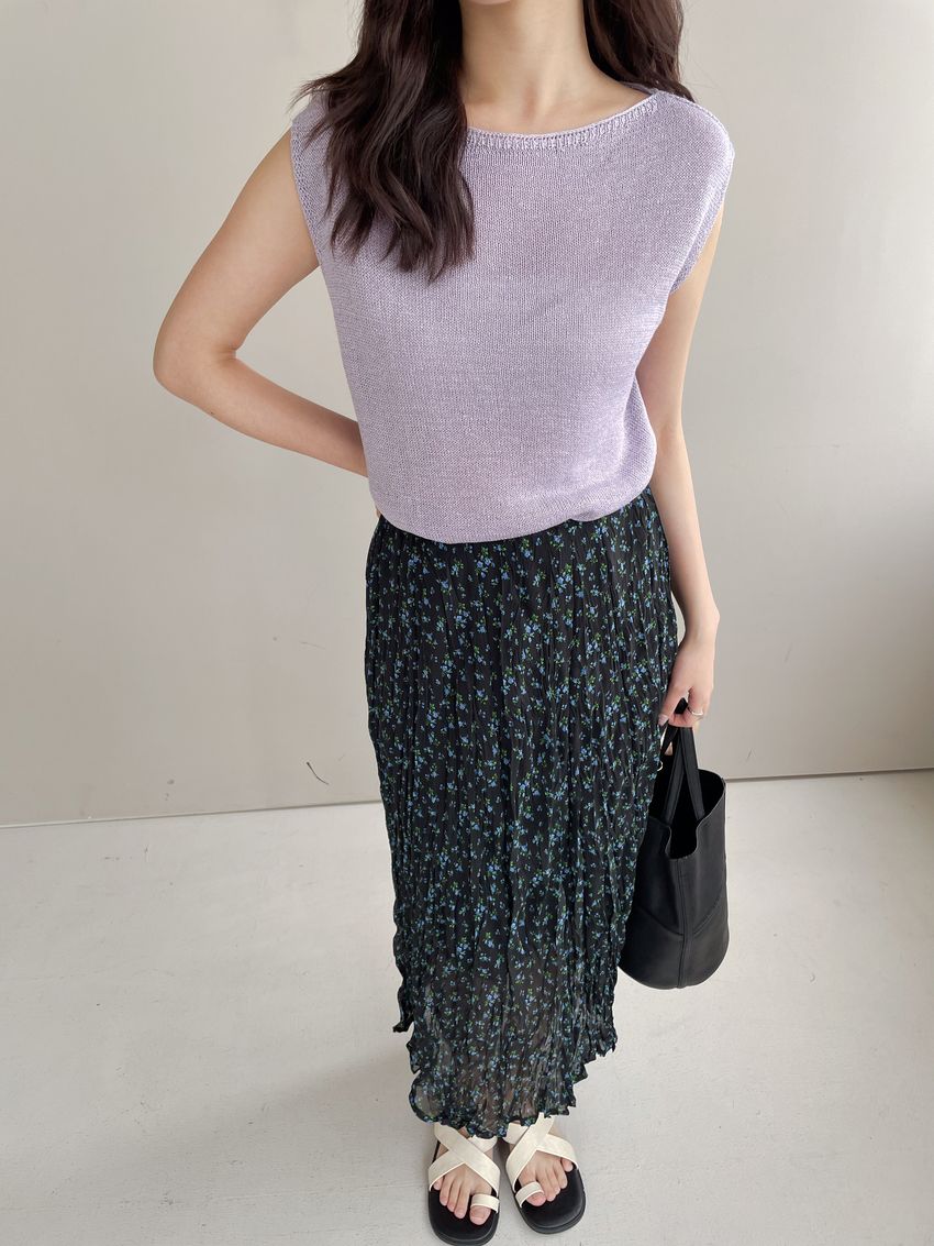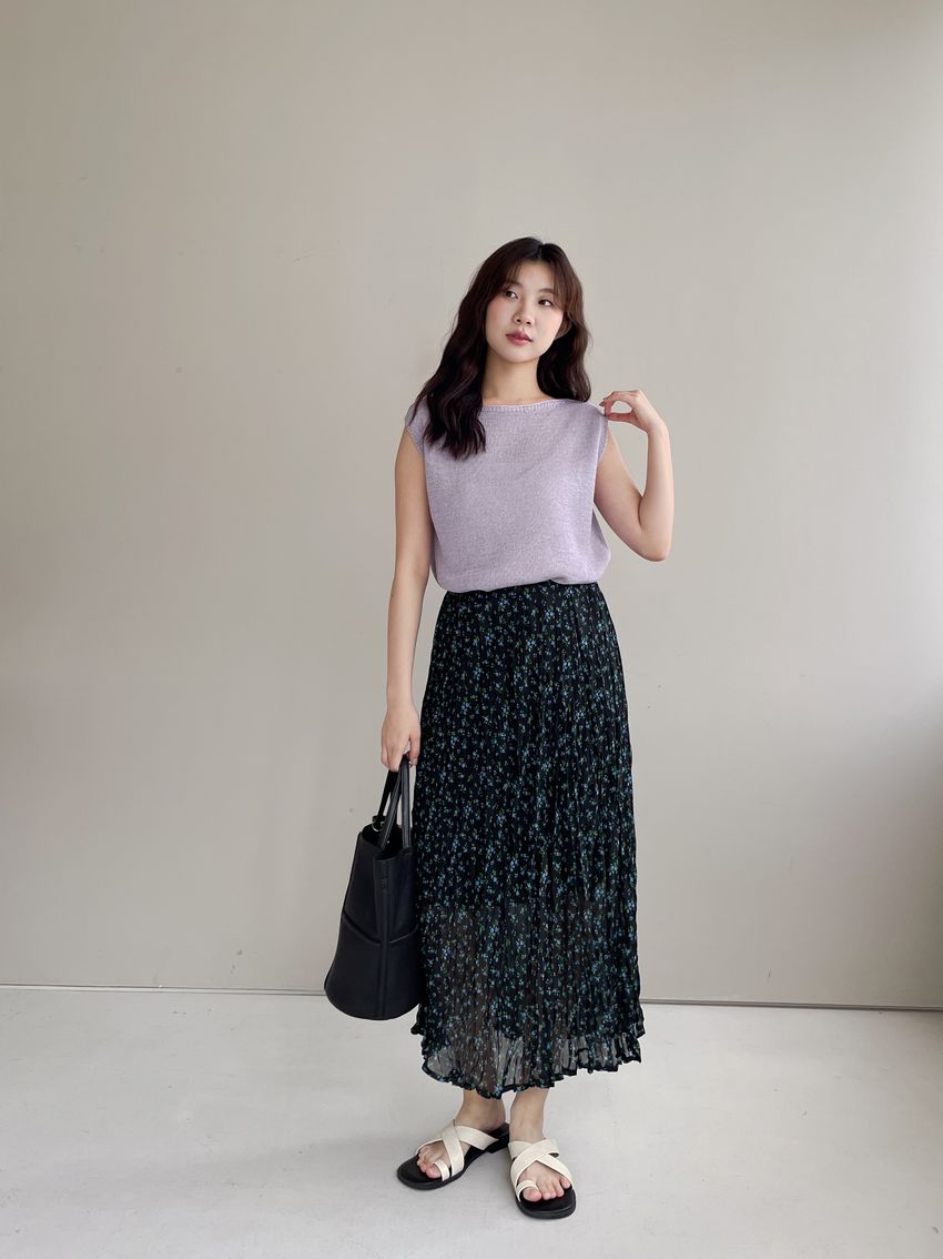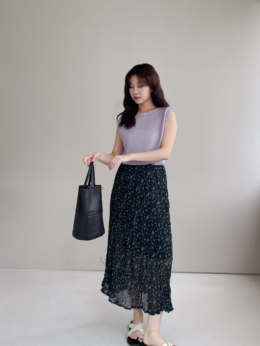 > 皺紙藍星花雪紡長裙(直播款)(特)