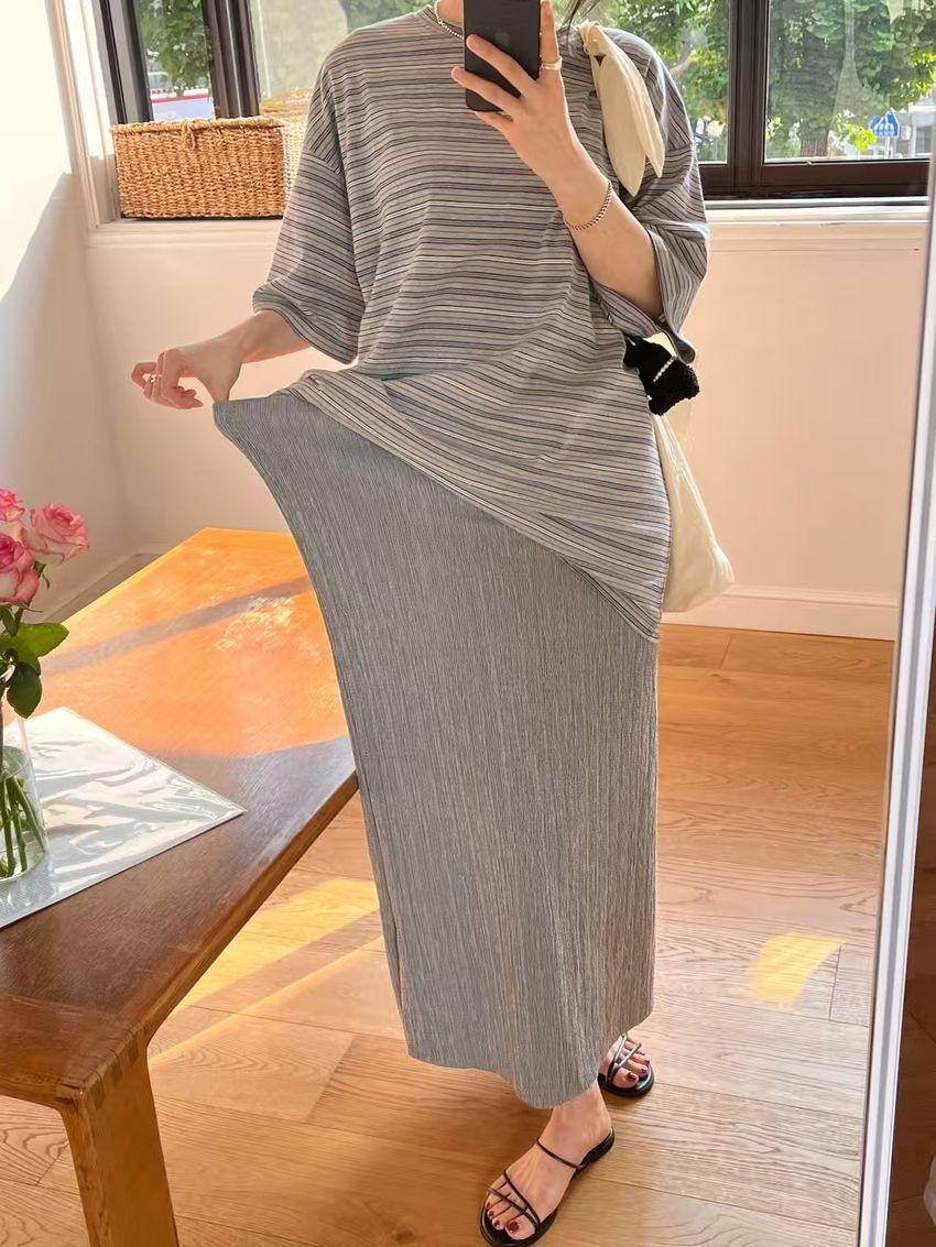 混色PP細褶鉛筆裙(直播款)