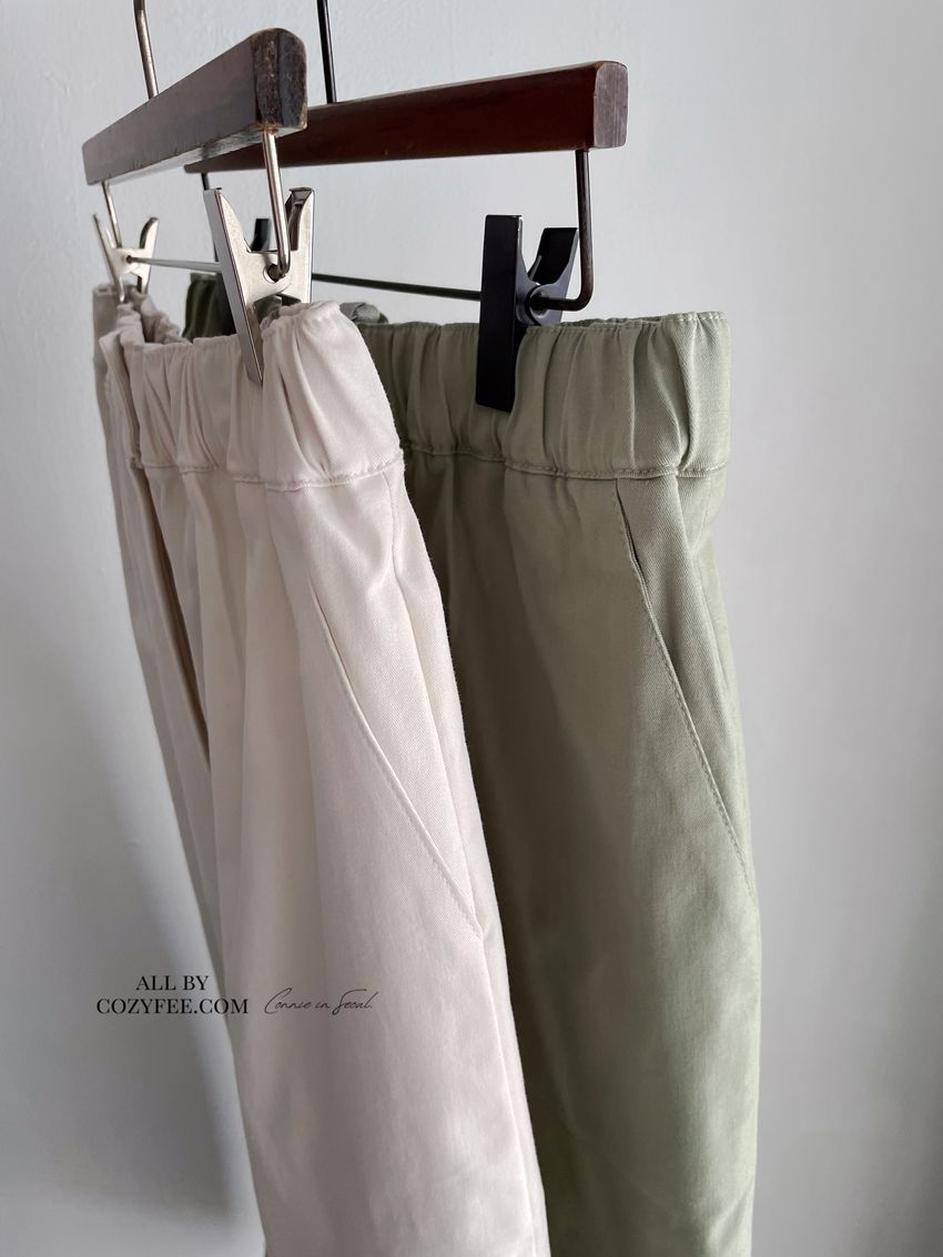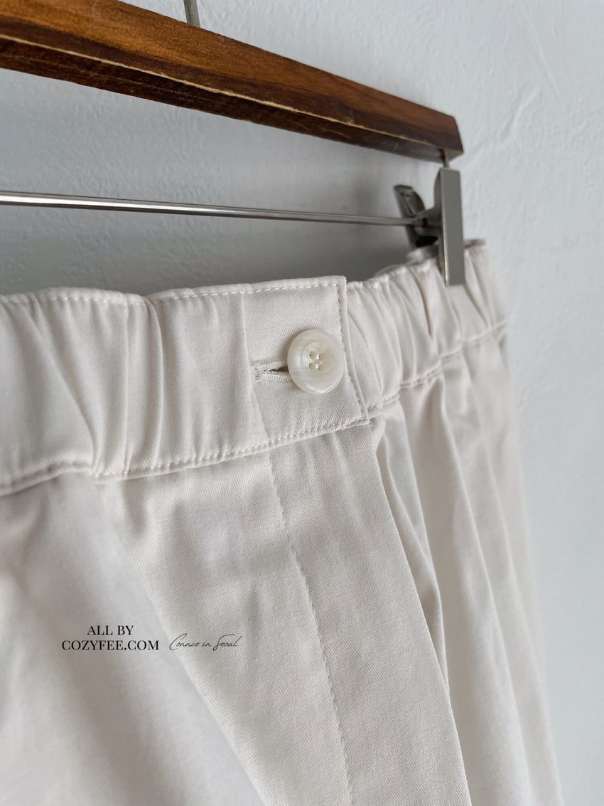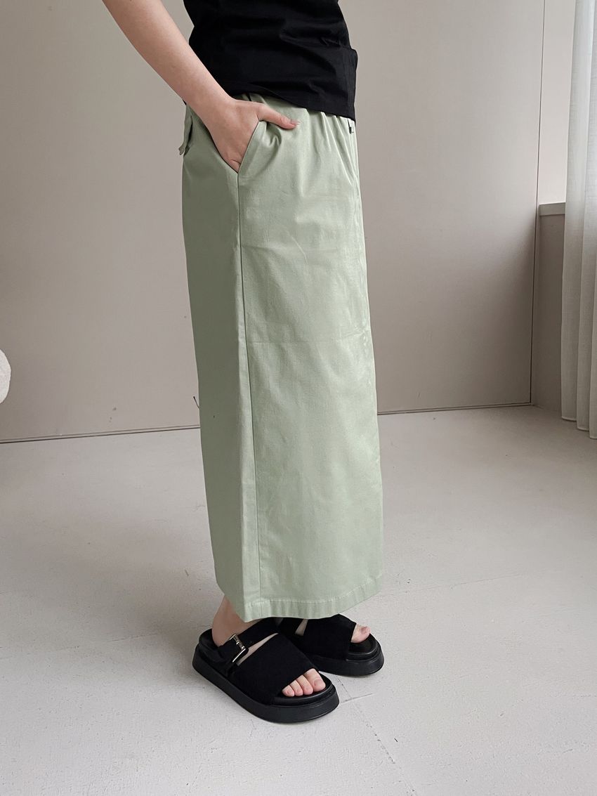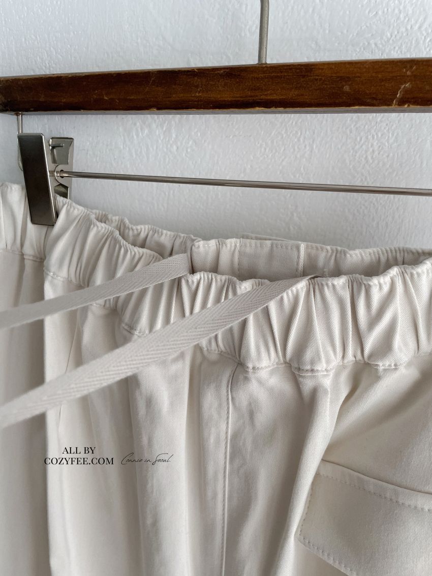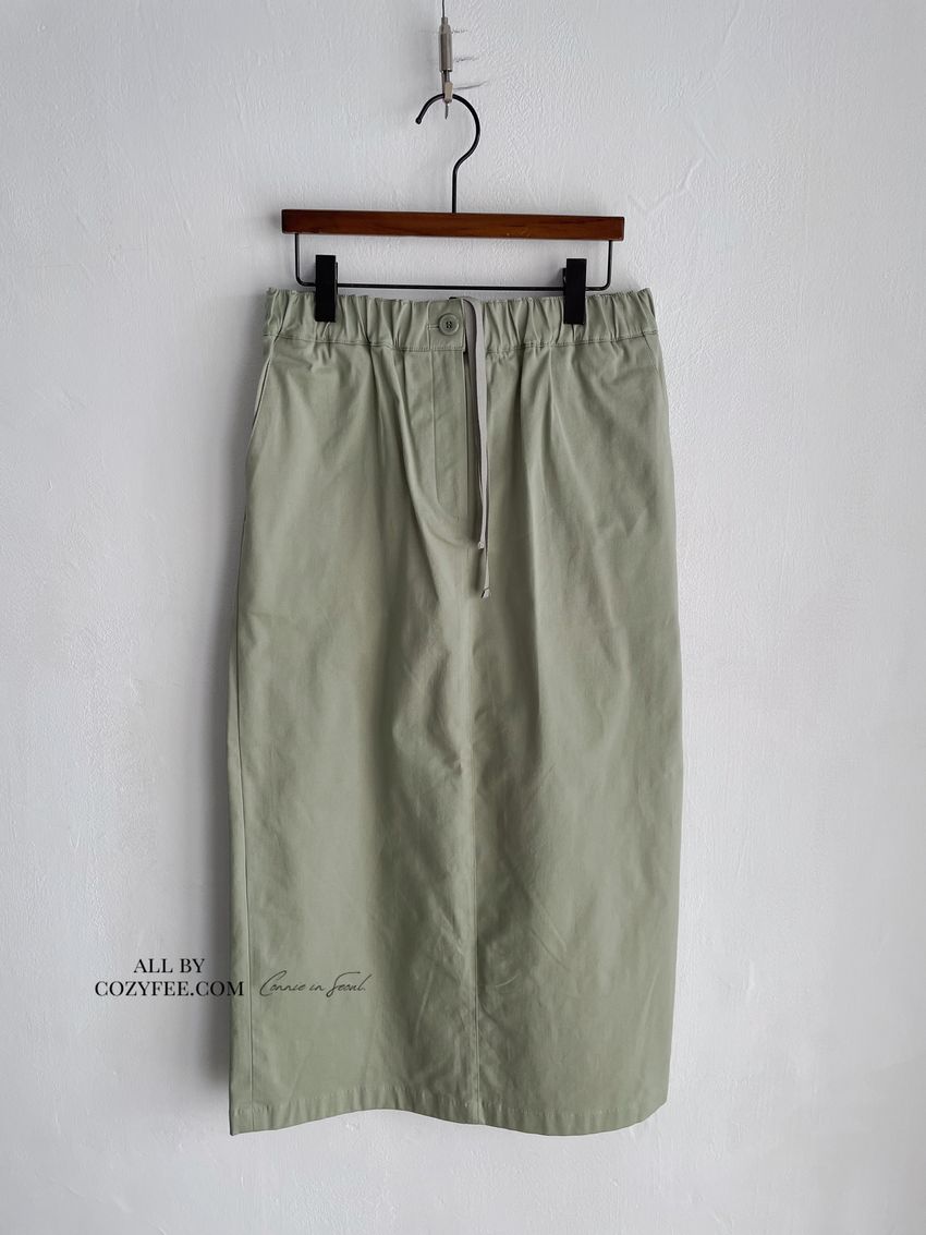 97%cotton 3%span腰部整圈鬆緊彈性 內有抽繩可以再調緊腰圍無內裡 後下擺開岔米杏色 / 湖水綠色單一尺寸 建議S號~L號身型適合model / Yen - 159cm / 44kg 腰24 臀34