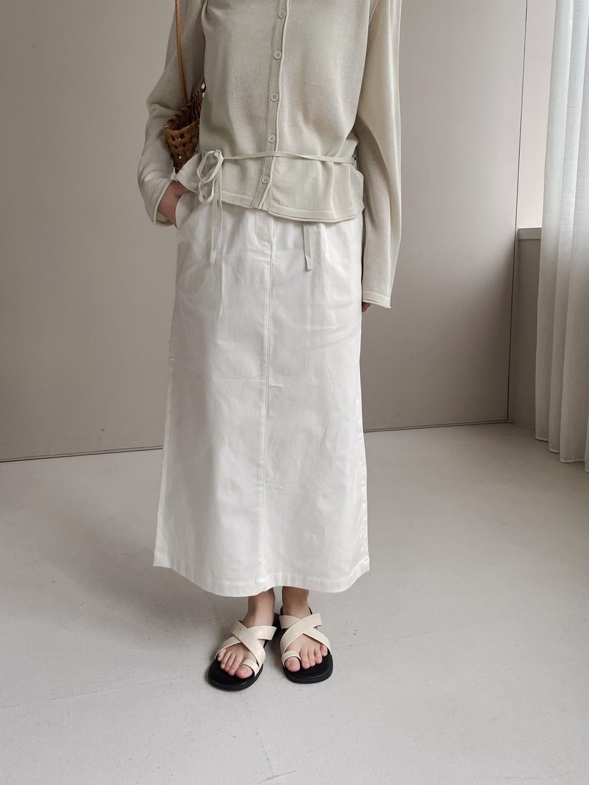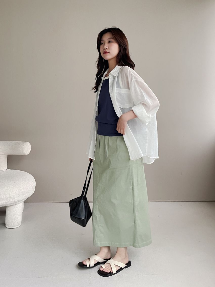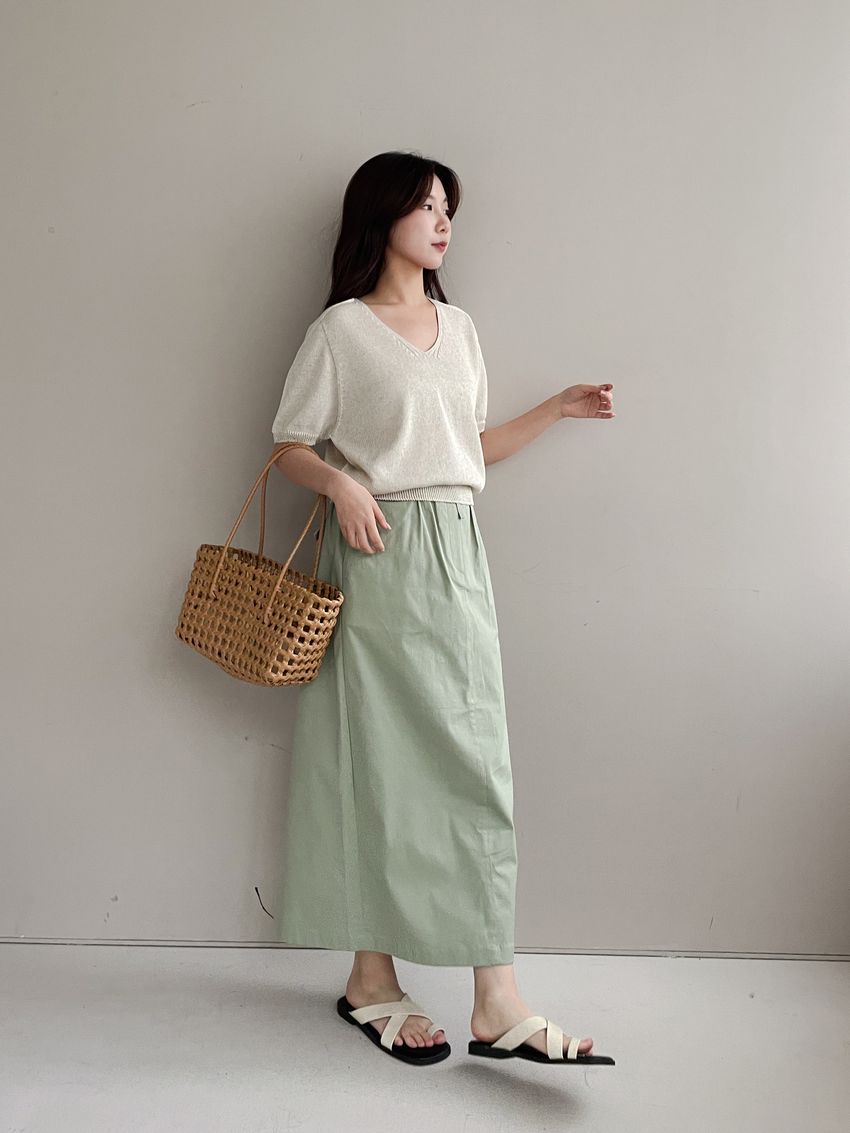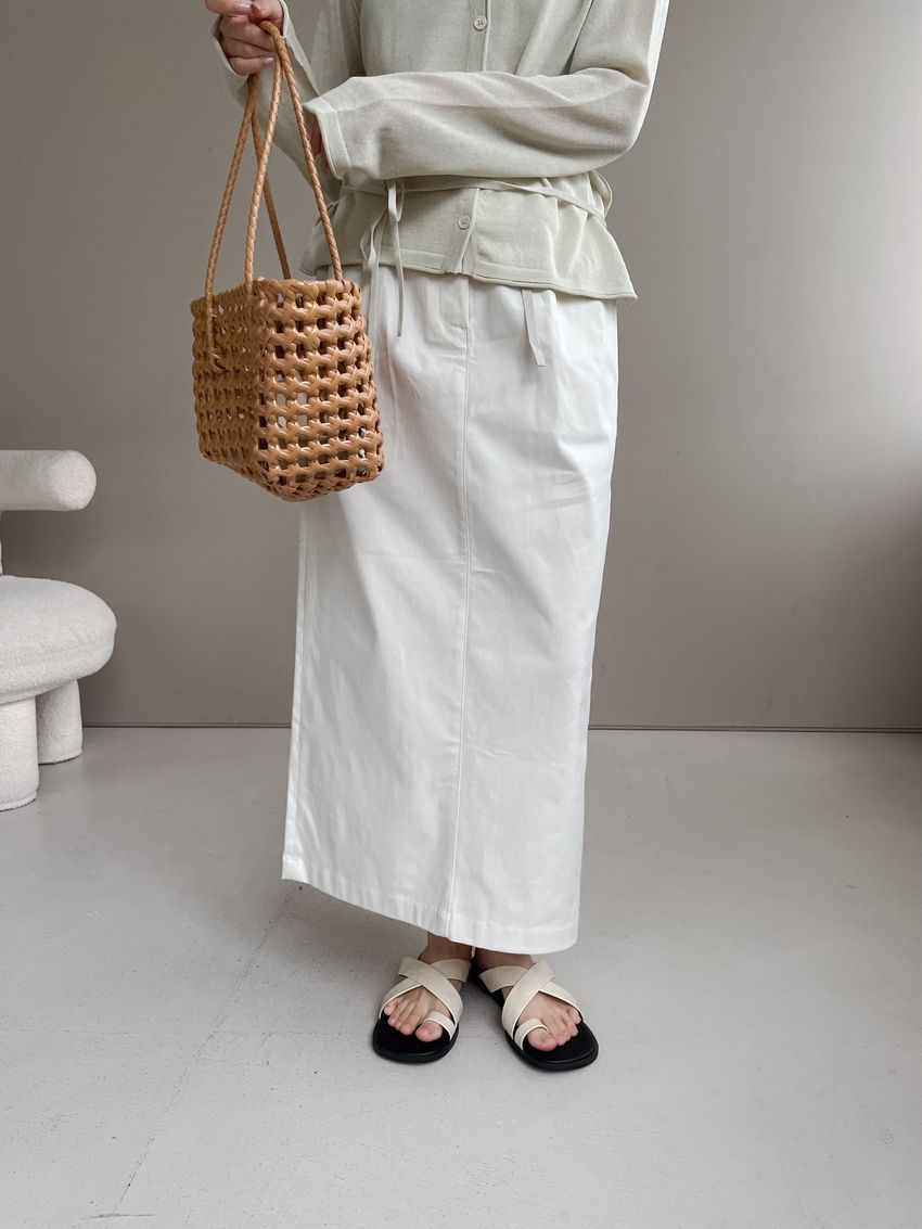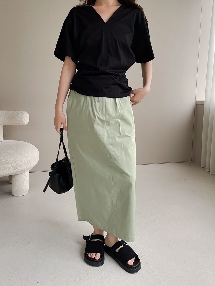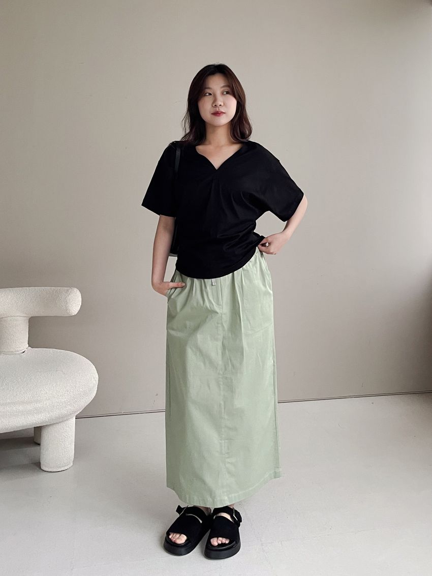 97%cotton 3%span腰部整圈鬆緊彈性 內有抽繩可以再調緊腰圍無內裡 後下擺開岔米杏色 / 湖水綠色單一尺寸 建議S號~L號身型適合model / Yen - 159cm / 44kg 腰24 臀34