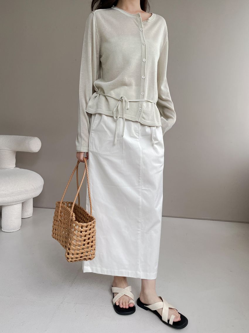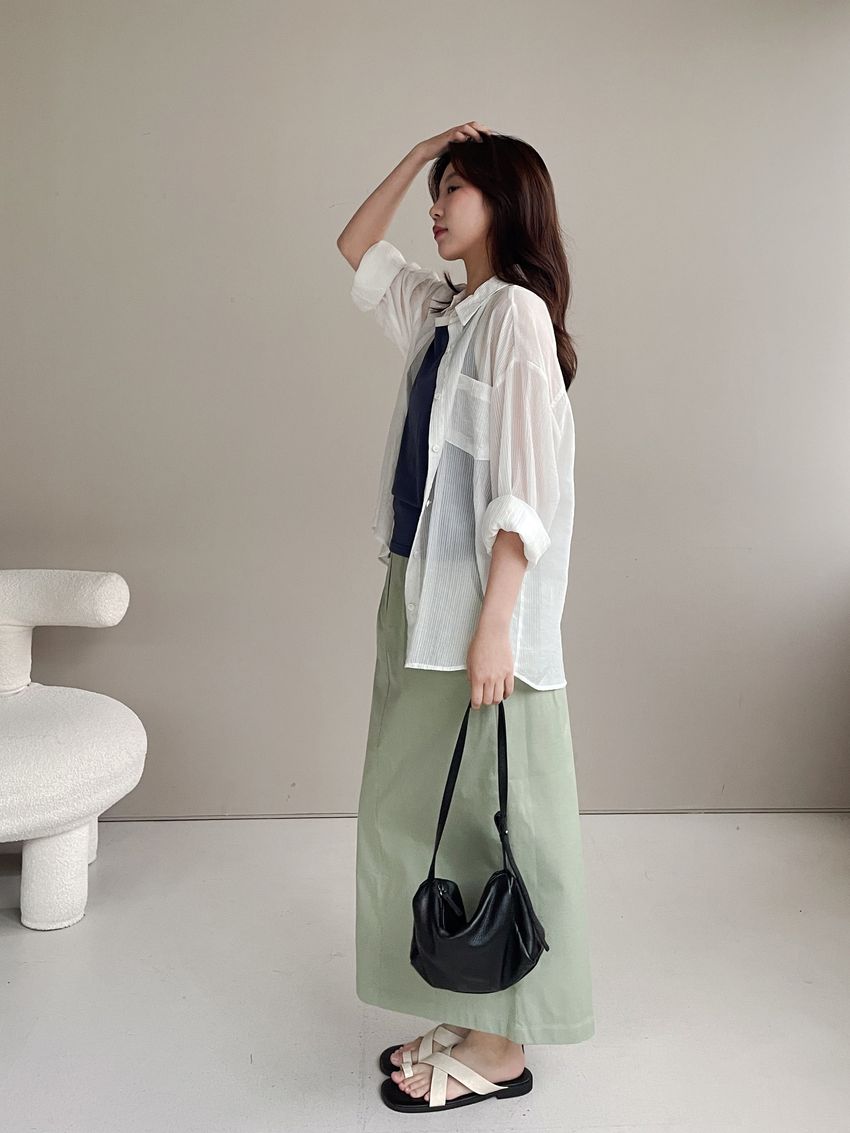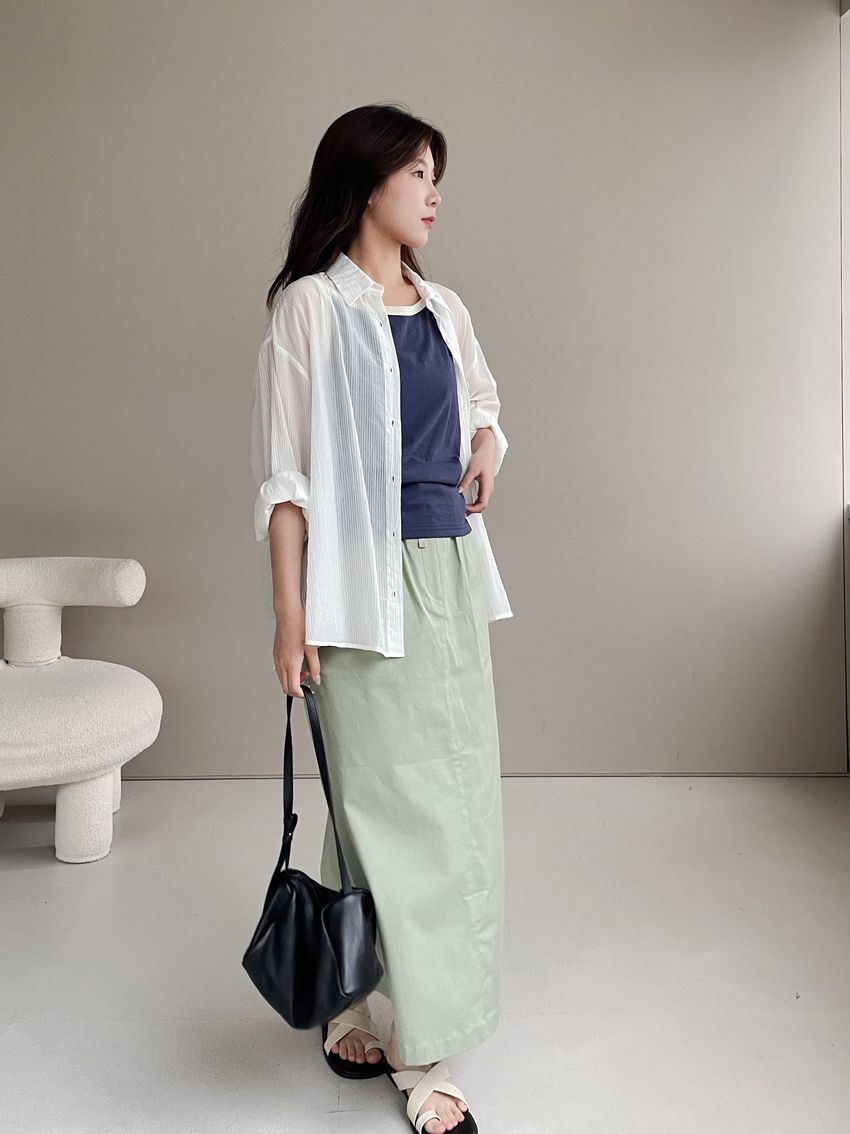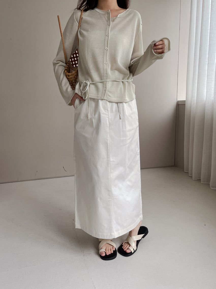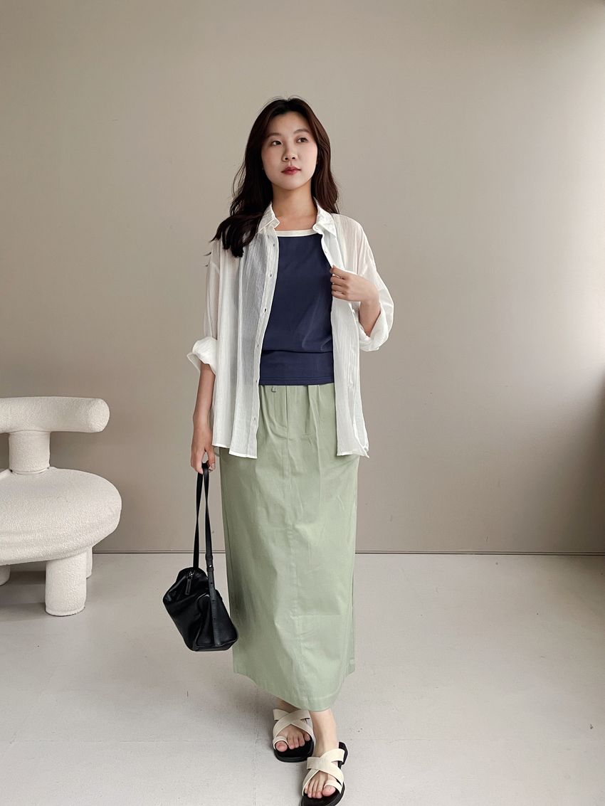 97%cotton 3%span腰部整圈鬆緊彈性 內有抽繩可以再調緊腰圍無內裡 後下擺開岔米杏色 / 湖水綠色單一尺寸 建議S號~L號身型適合model / Yen - 159cm / 44kg 腰24 臀34