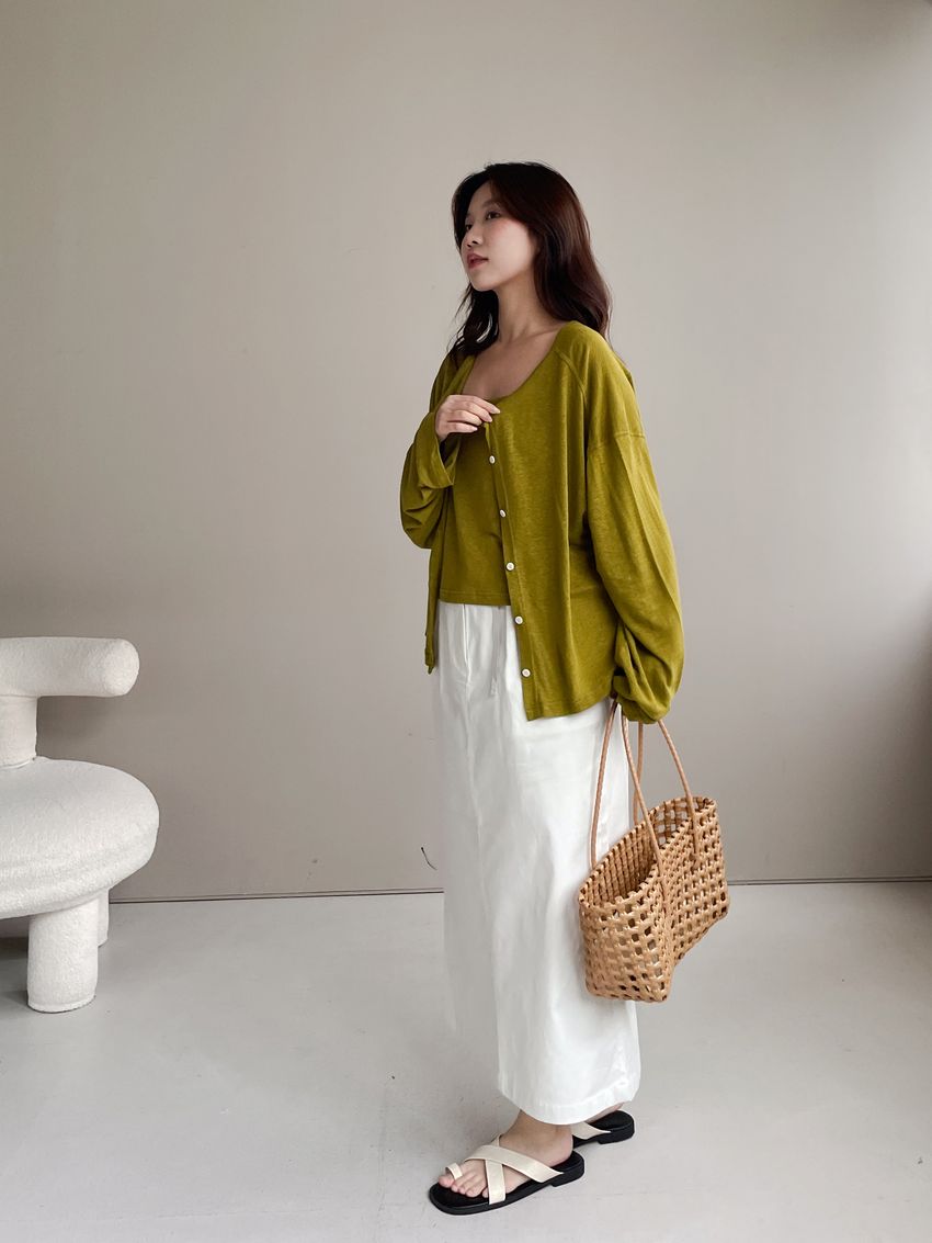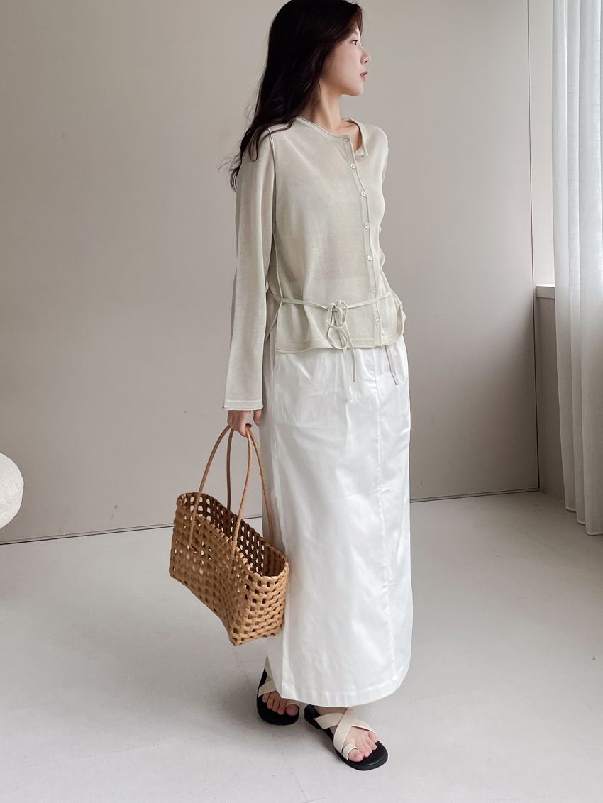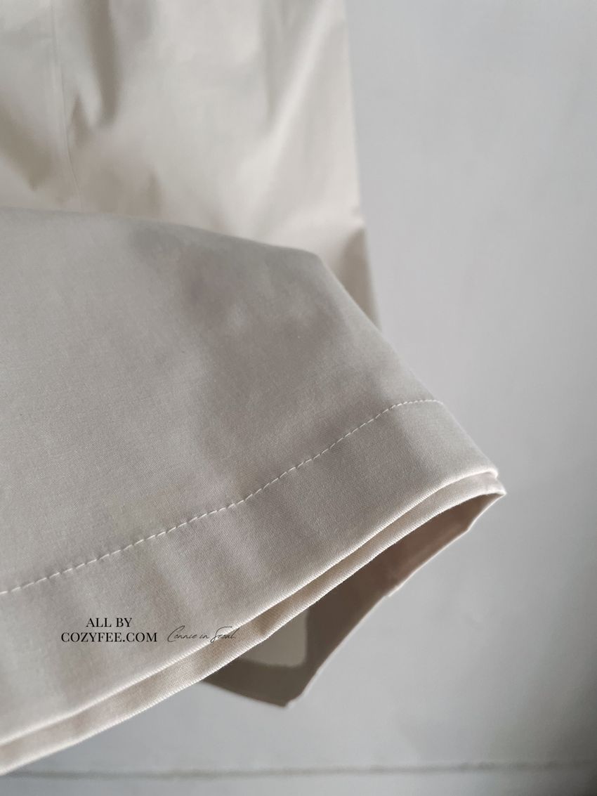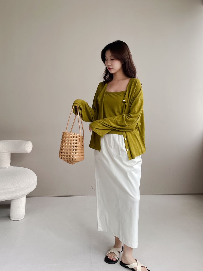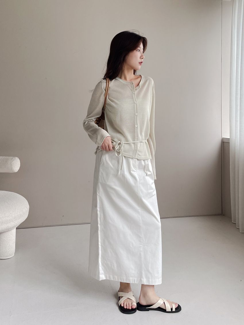 97%cotton 3%span腰部整圈鬆緊彈性 內有抽繩可以再調緊腰圍無內裡 後下擺開岔米杏色 / 湖水綠色單一尺寸 建議S號~L號身型適合model / Yen - 159cm / 44kg 腰24 臀34