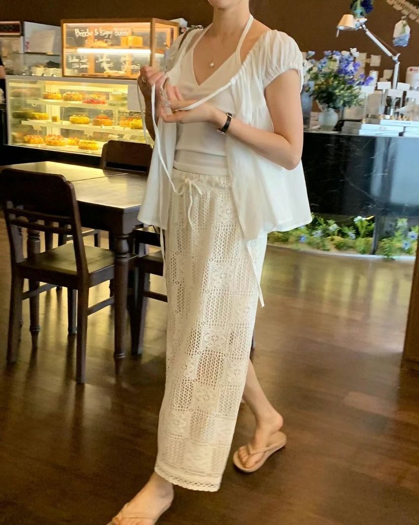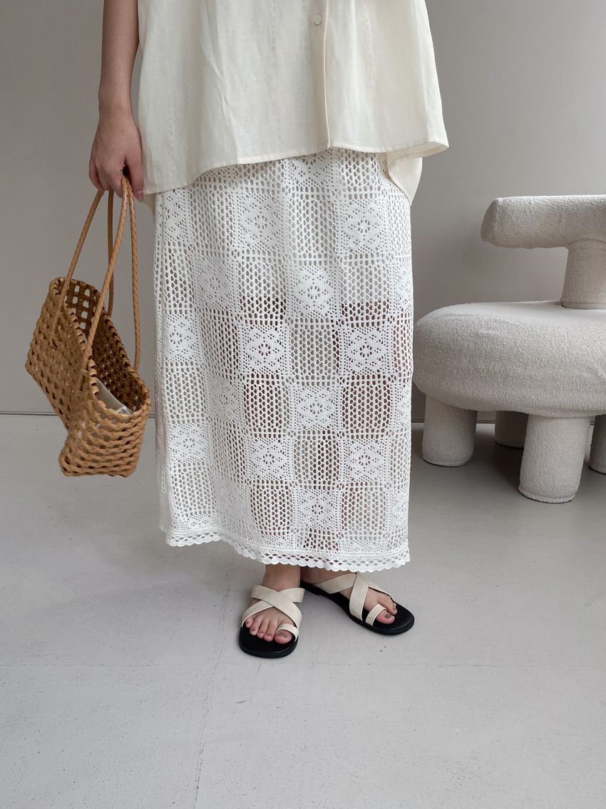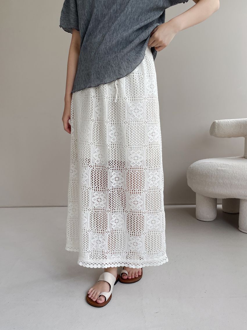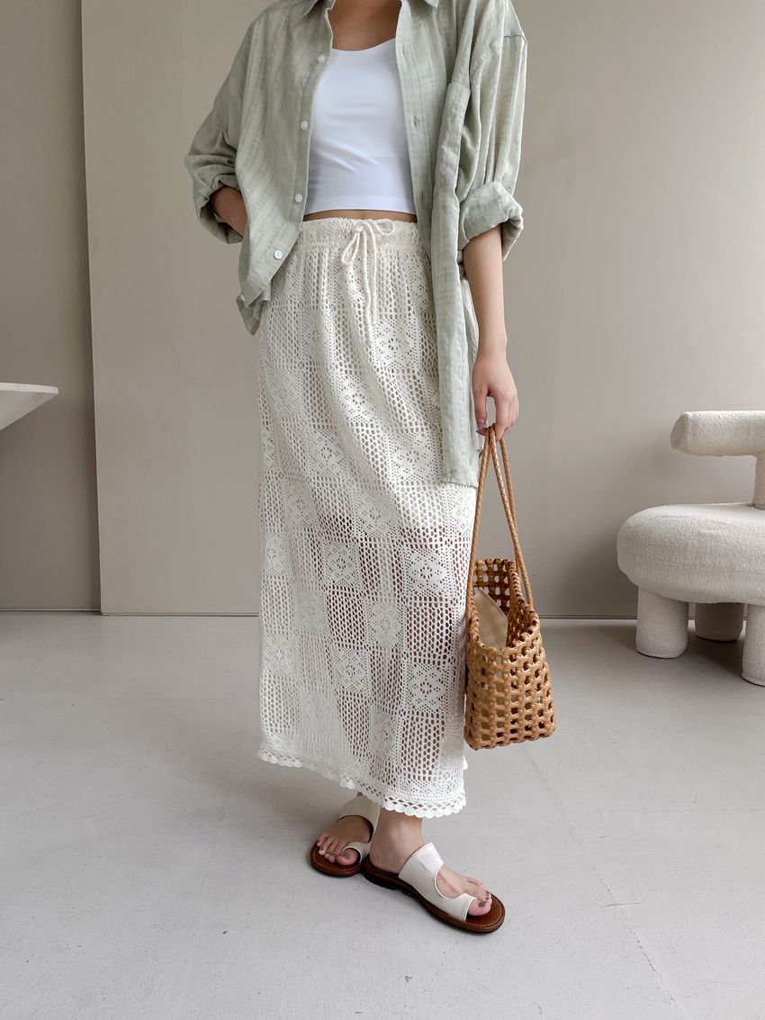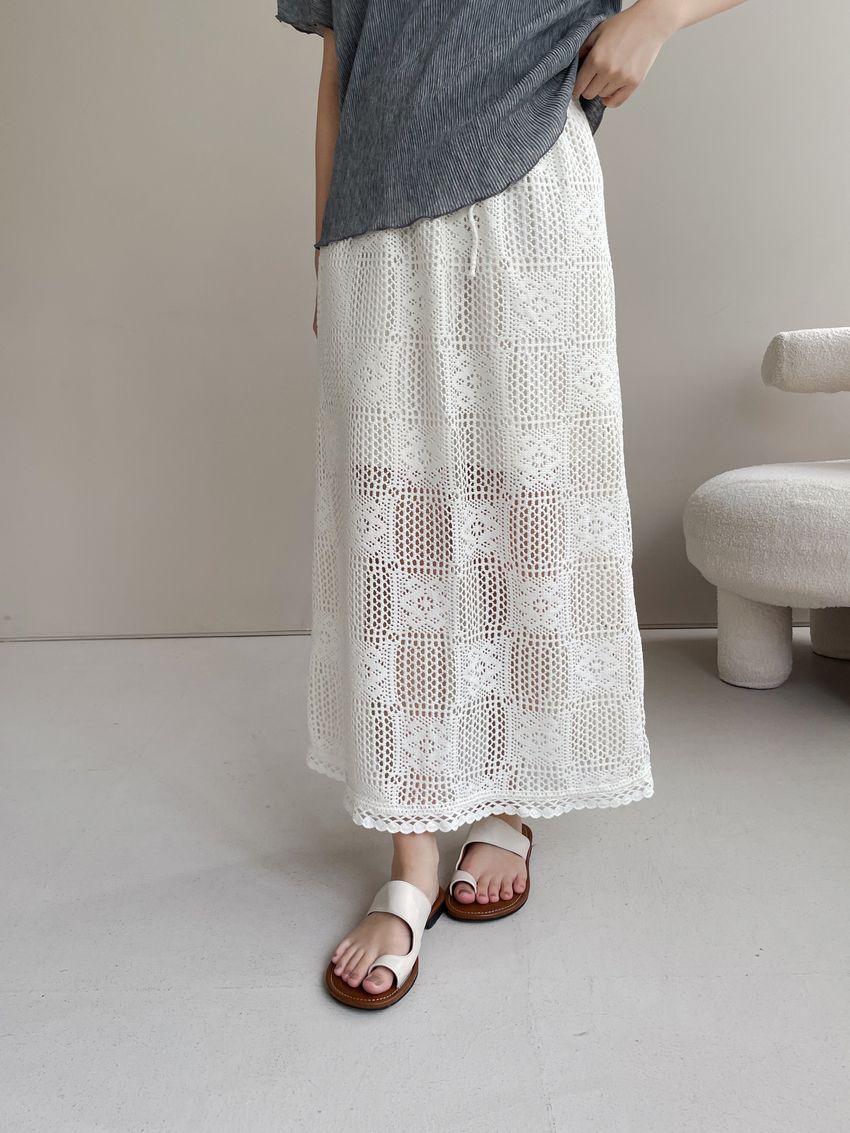 35%cotton 65%poly裙頭整圈鬆緊+綁繩設計有半長內裡後下擺開衩L號身形穿會較貼臀 建議搭配長版上衣米白色單一尺寸適合S~小L號 臀圍38吋以內身形model / Yen - 159cm / 44kg 腰24 臀34