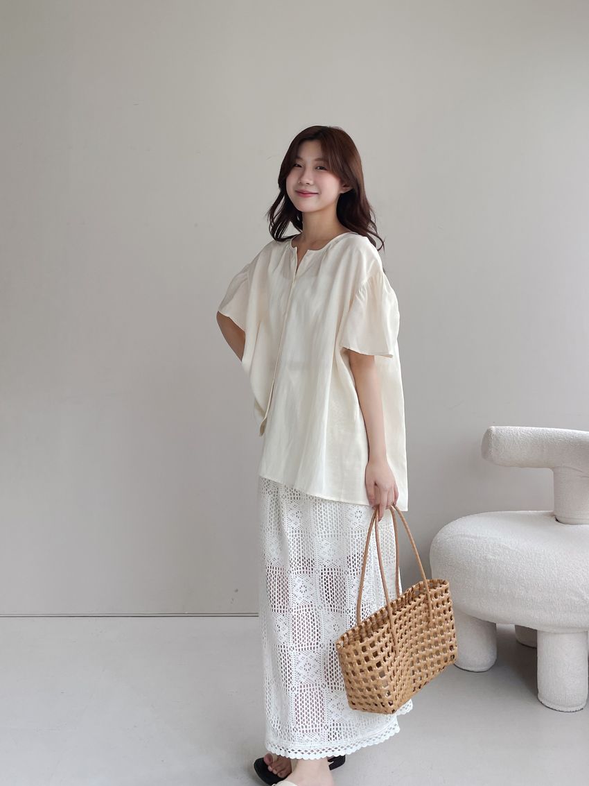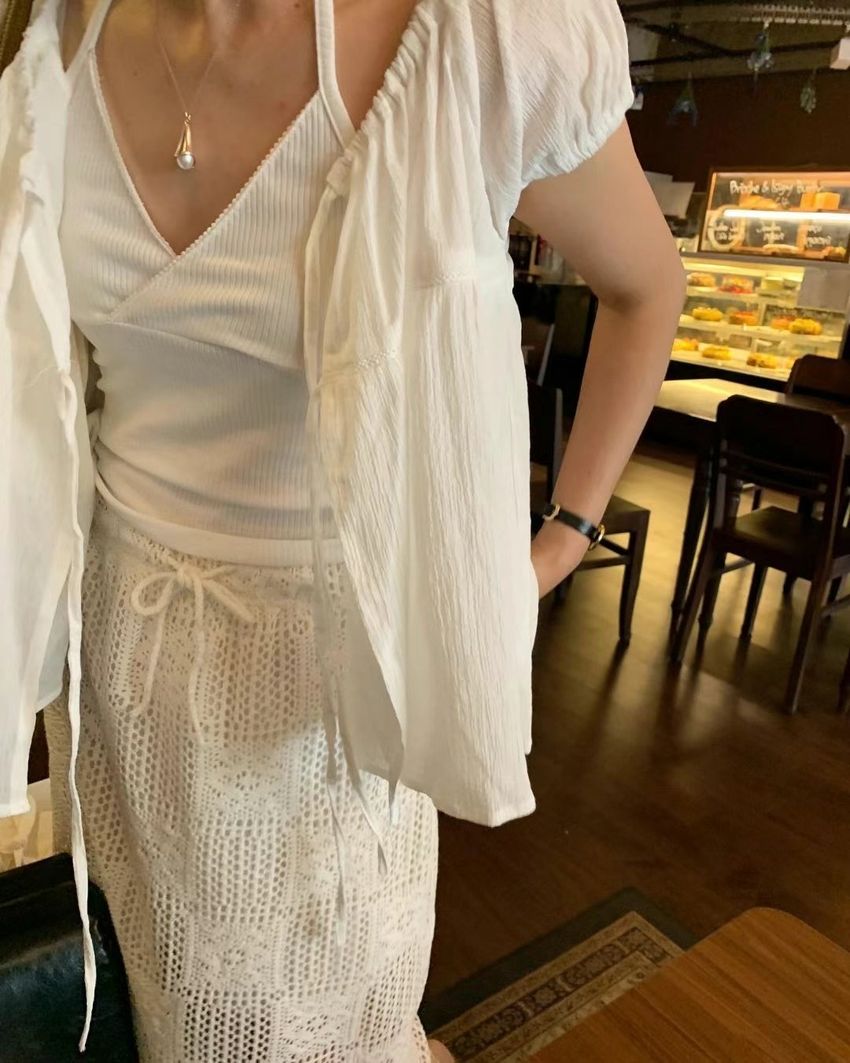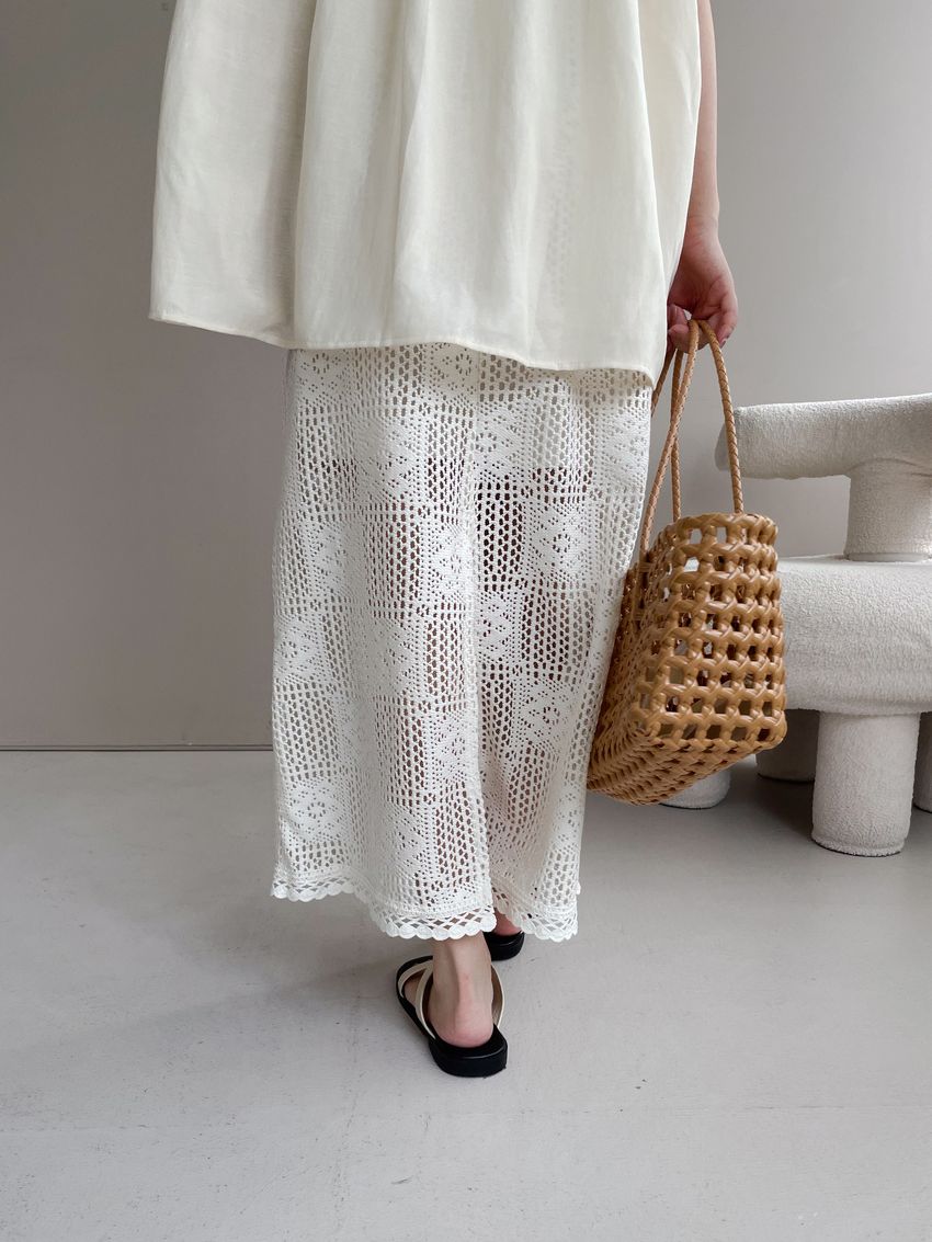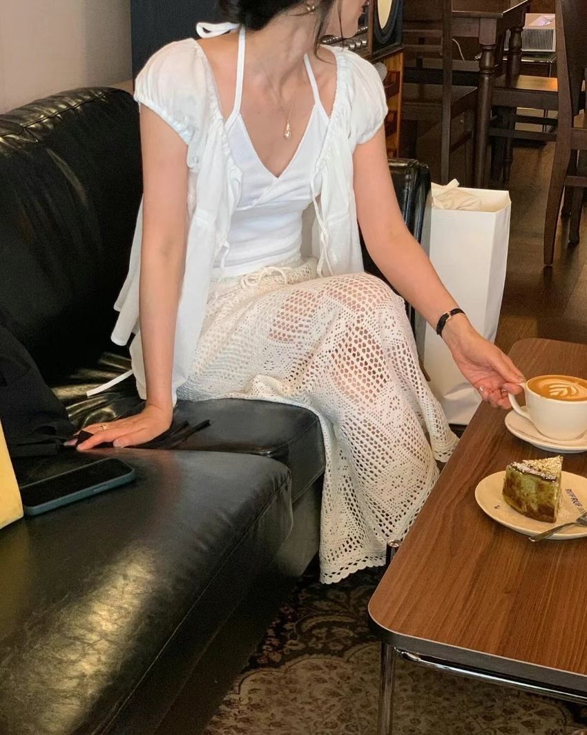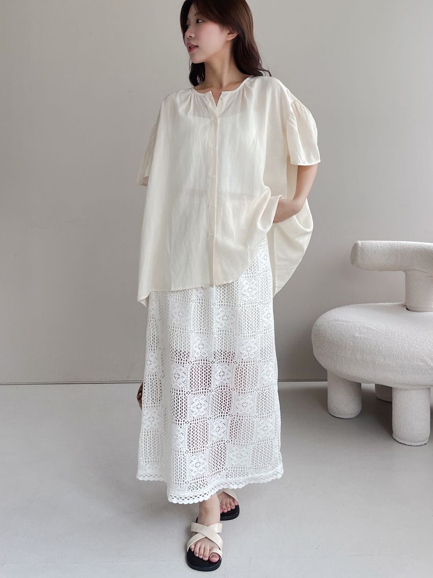 35%cotton 65%poly裙頭整圈鬆緊+綁繩設計有半長內裡後下擺開衩L號身形穿會較貼臀 建議搭配長版上衣米白色單一尺寸適合S~小L號 臀圍38吋以內身形model / Yen - 159cm / 44kg 腰24 臀34
