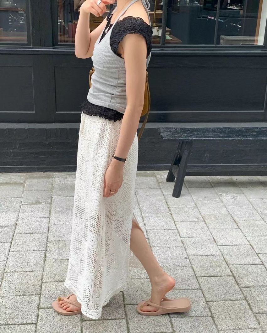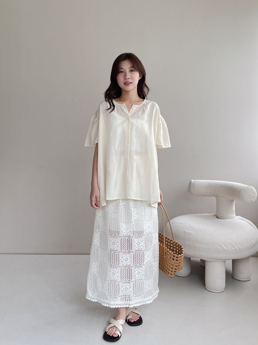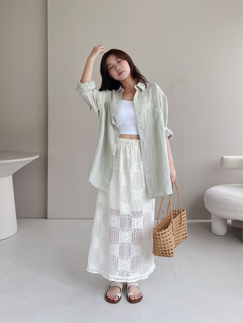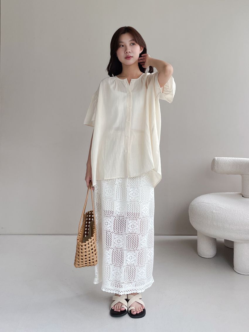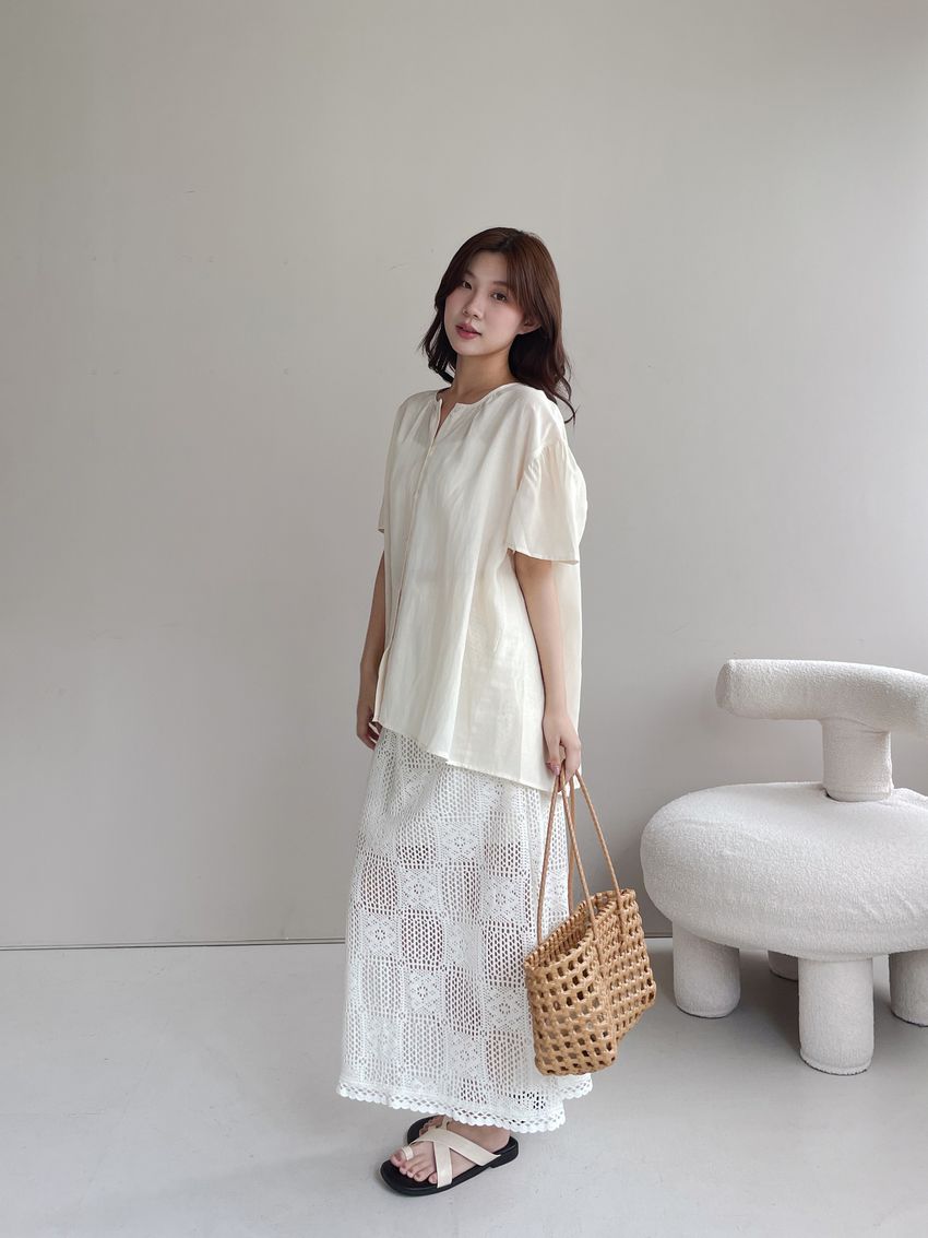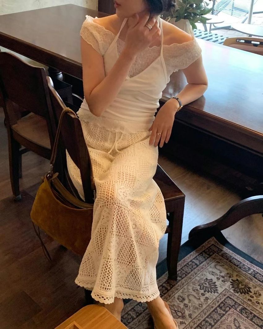 35%cotton 65%poly裙頭整圈鬆緊+綁繩設計有半長內裡後下擺開衩L號身形穿會較貼臀 建議搭配長版上衣米白色單一尺寸適合S~小L號 臀圍38吋以內身形model / Yen - 159cm / 44kg 腰24 臀34