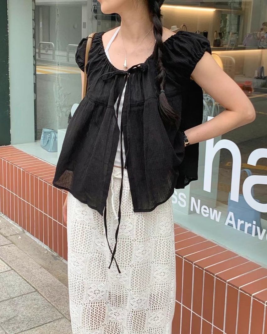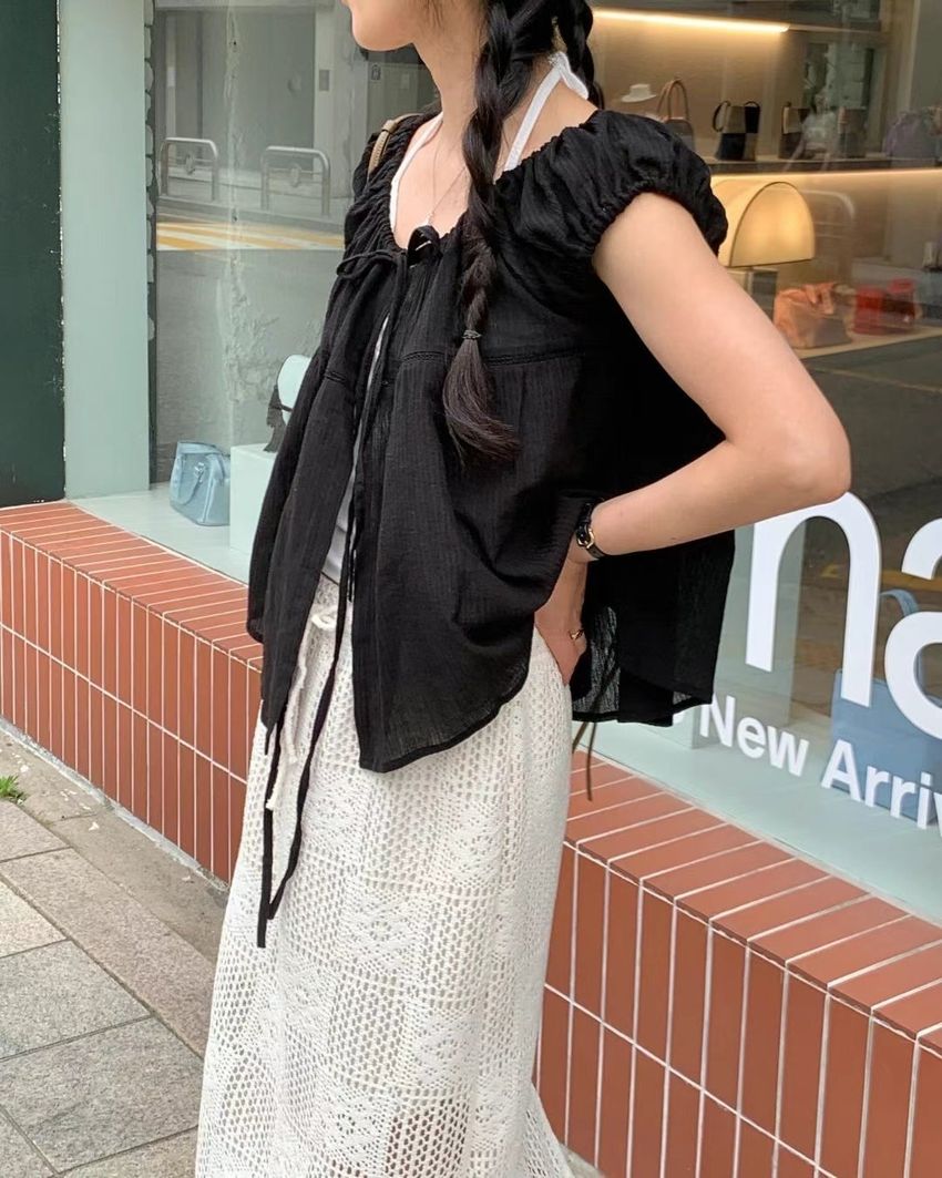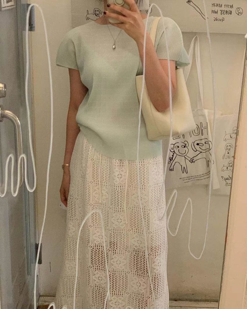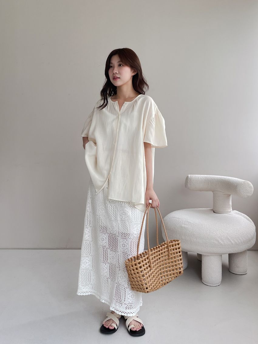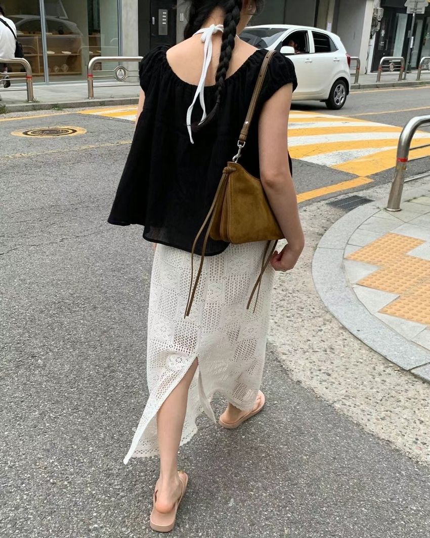 35%cotton 65%poly裙頭整圈鬆緊+綁繩設計有半長內裡後下擺開衩L號身形穿會較貼臀 建議搭配長版上衣米白色單一尺寸適合S~小L號 臀圍38吋以內身形model / Yen - 159cm / 44kg 腰24 臀34
