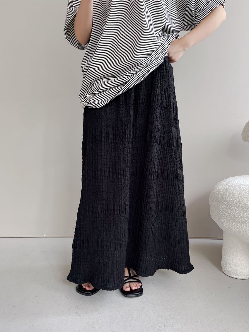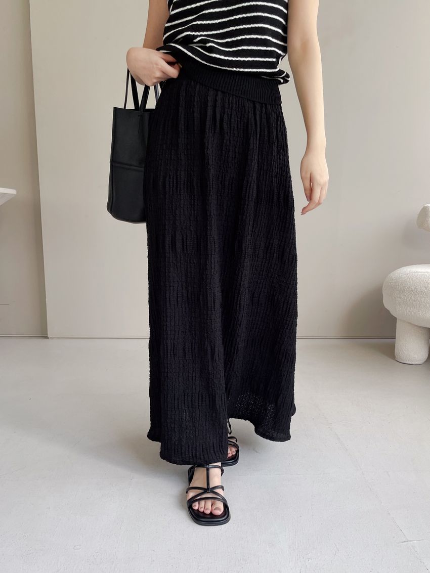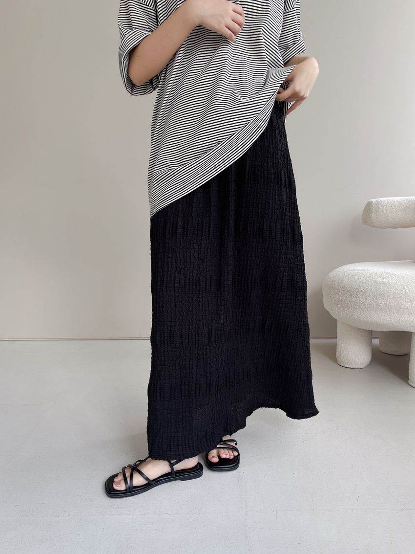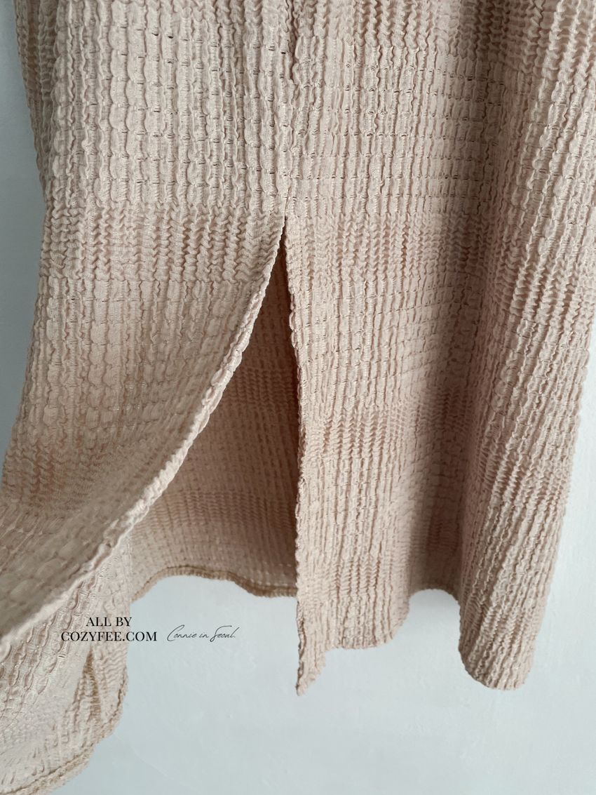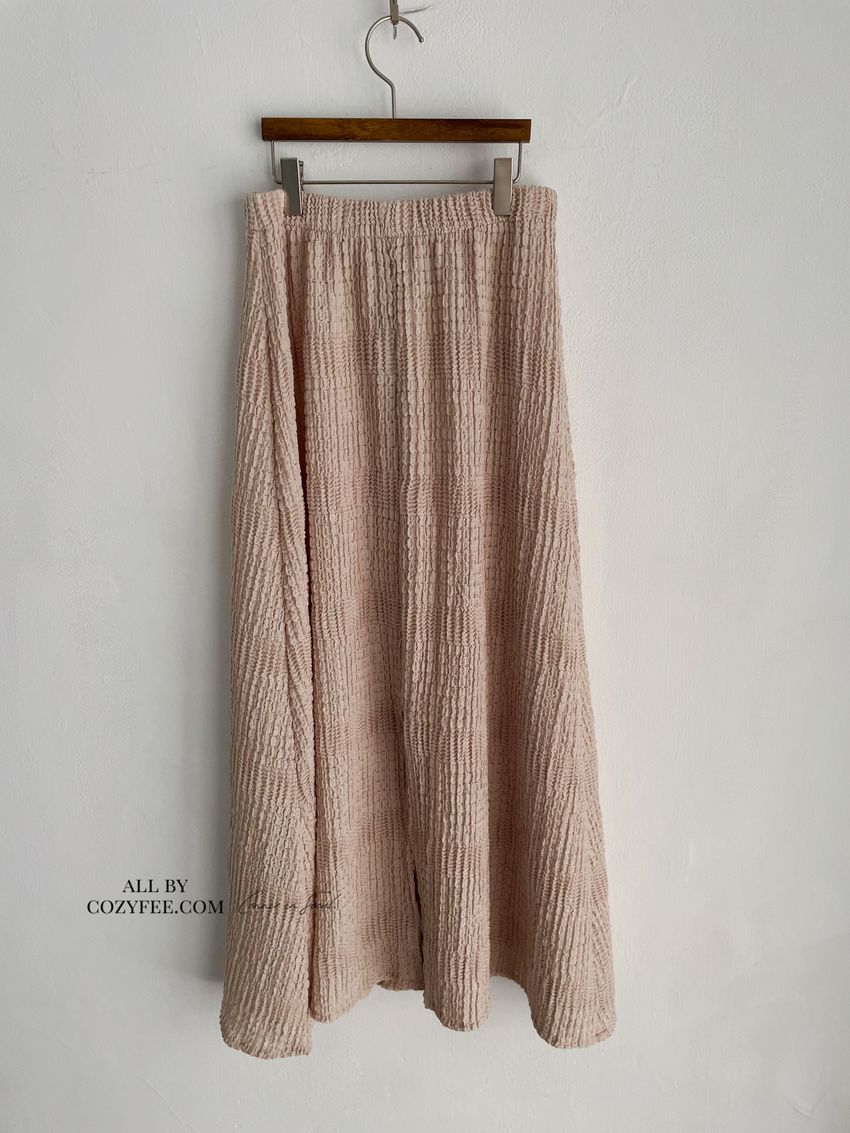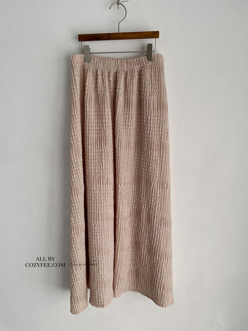 81%poly 18%cotton 1%span腰圍整圈鬆緊後下擺開衩無內裡黑色 / 藕粉色 / 淺奶茶杏色單一尺寸 建議S號~L號身型適合model / Yen - 159cm / 44kg 腰24 臀34