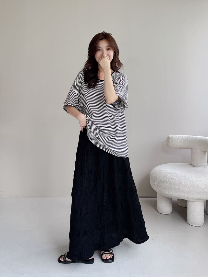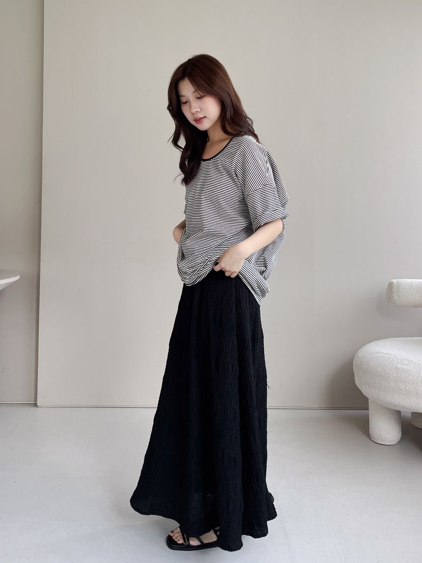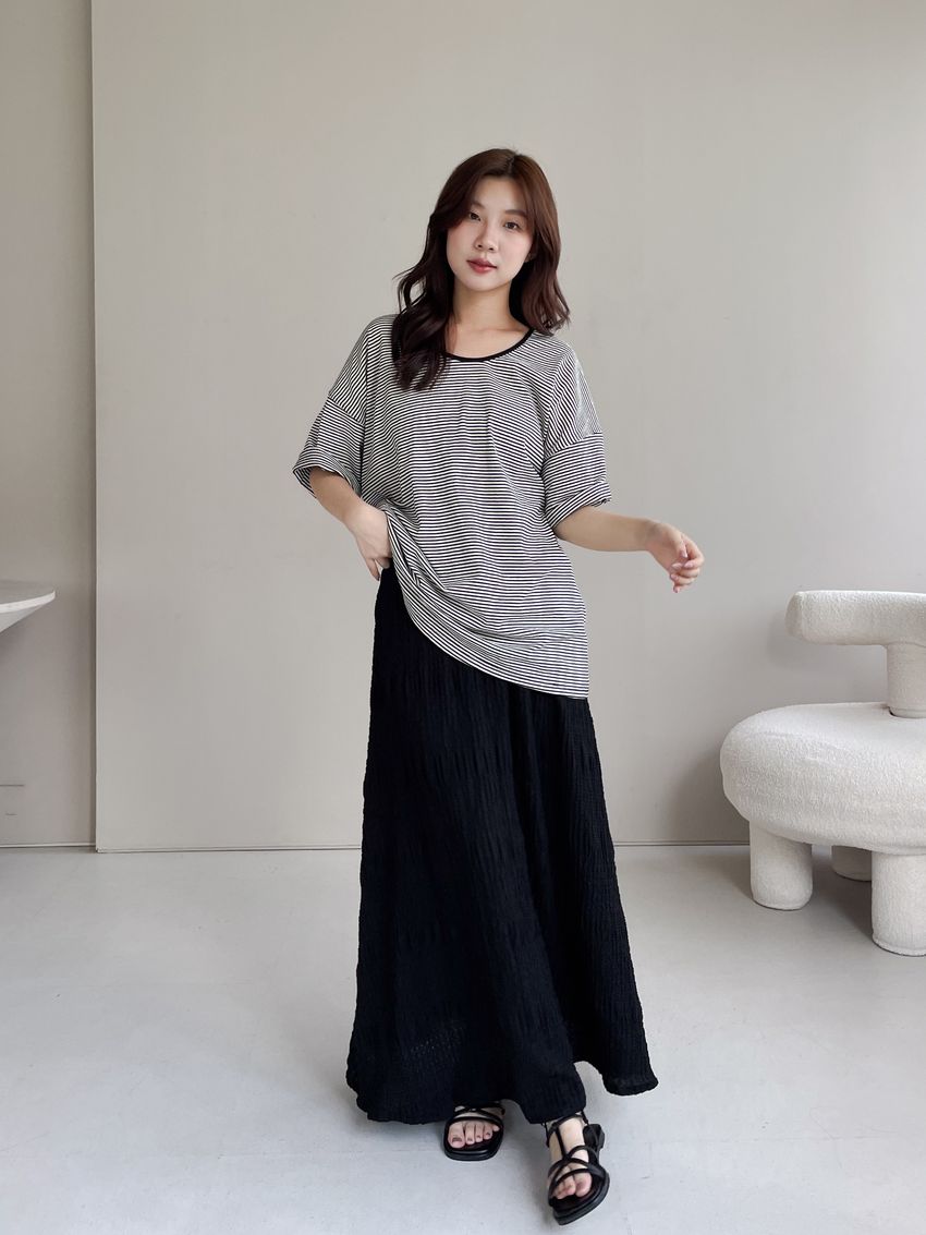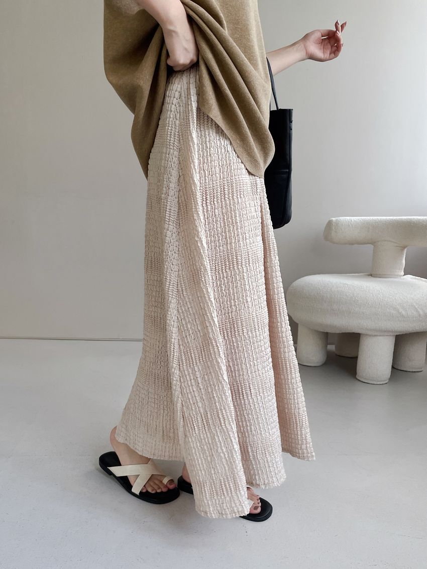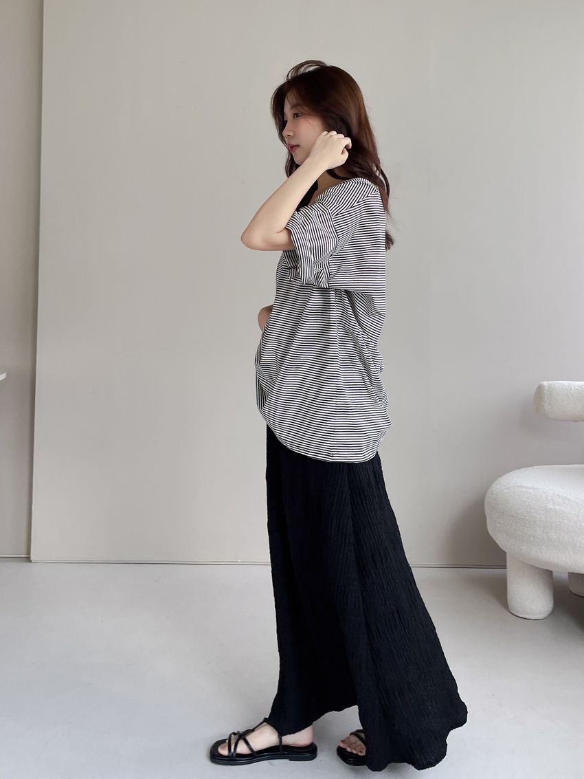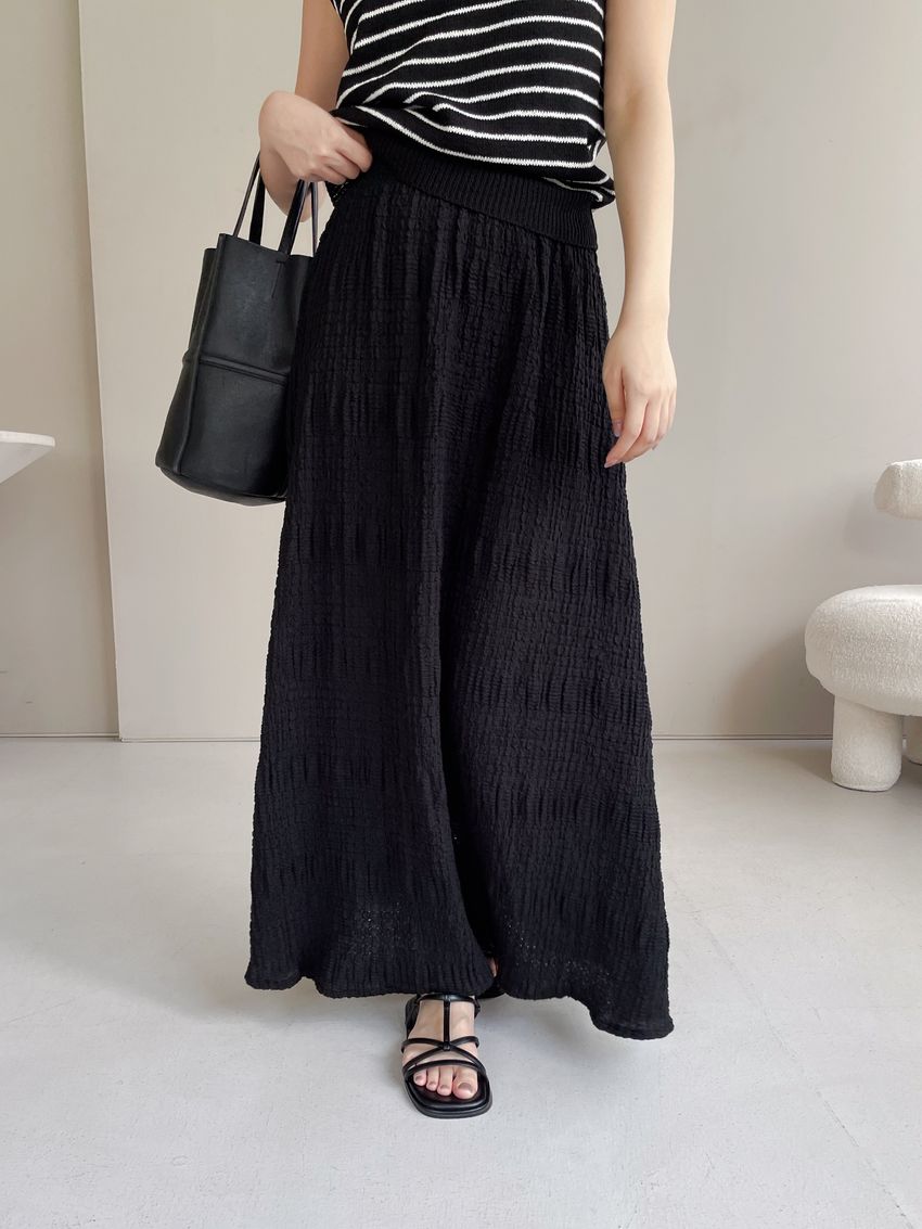 81%poly 18%cotton 1%span腰圍整圈鬆緊後下擺開衩無內裡黑色 / 藕粉色 / 淺奶茶杏色單一尺寸 建議S號~L號身型適合model / Yen - 159cm / 44kg 腰24 臀34