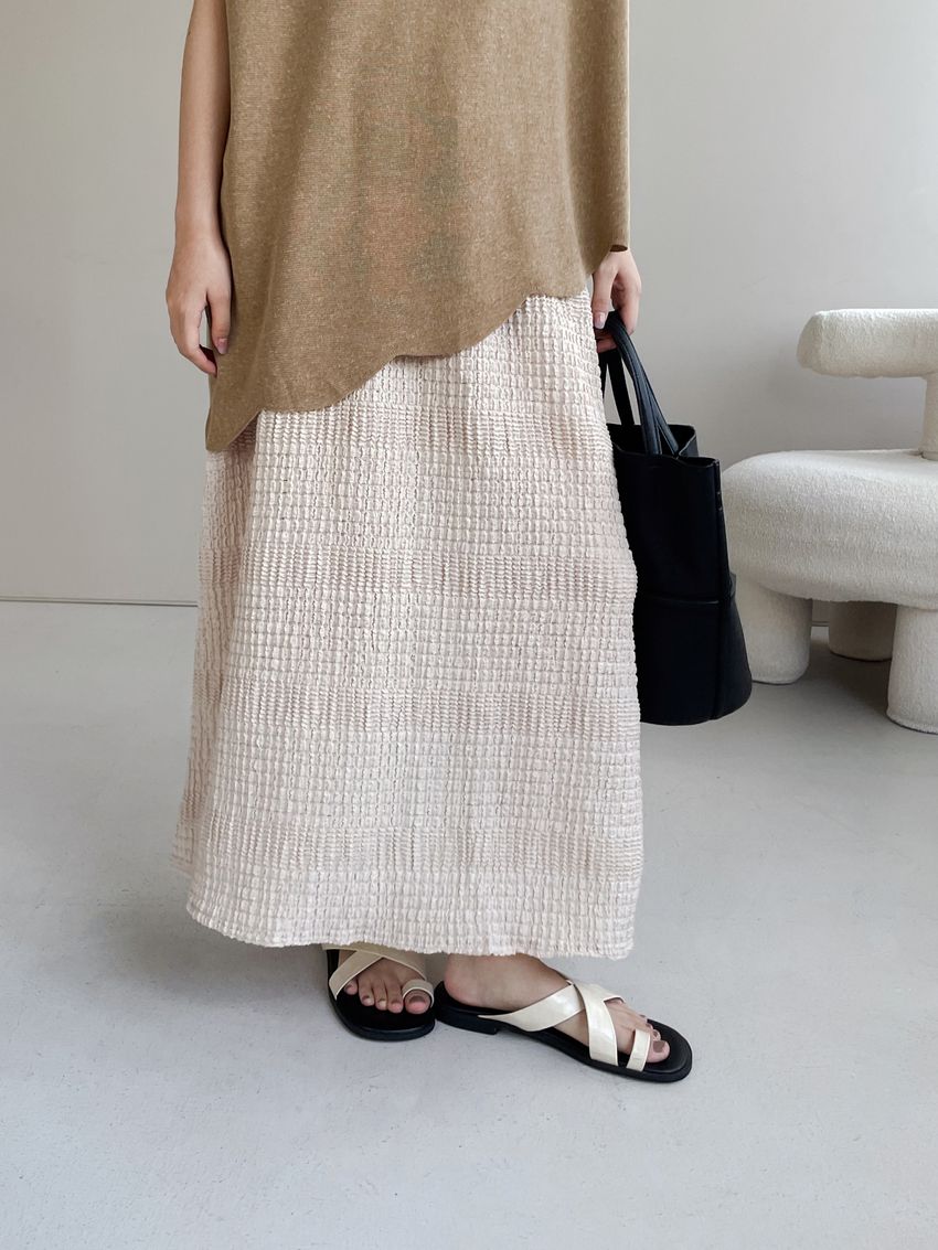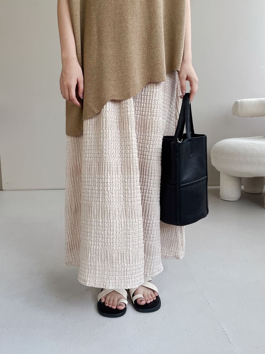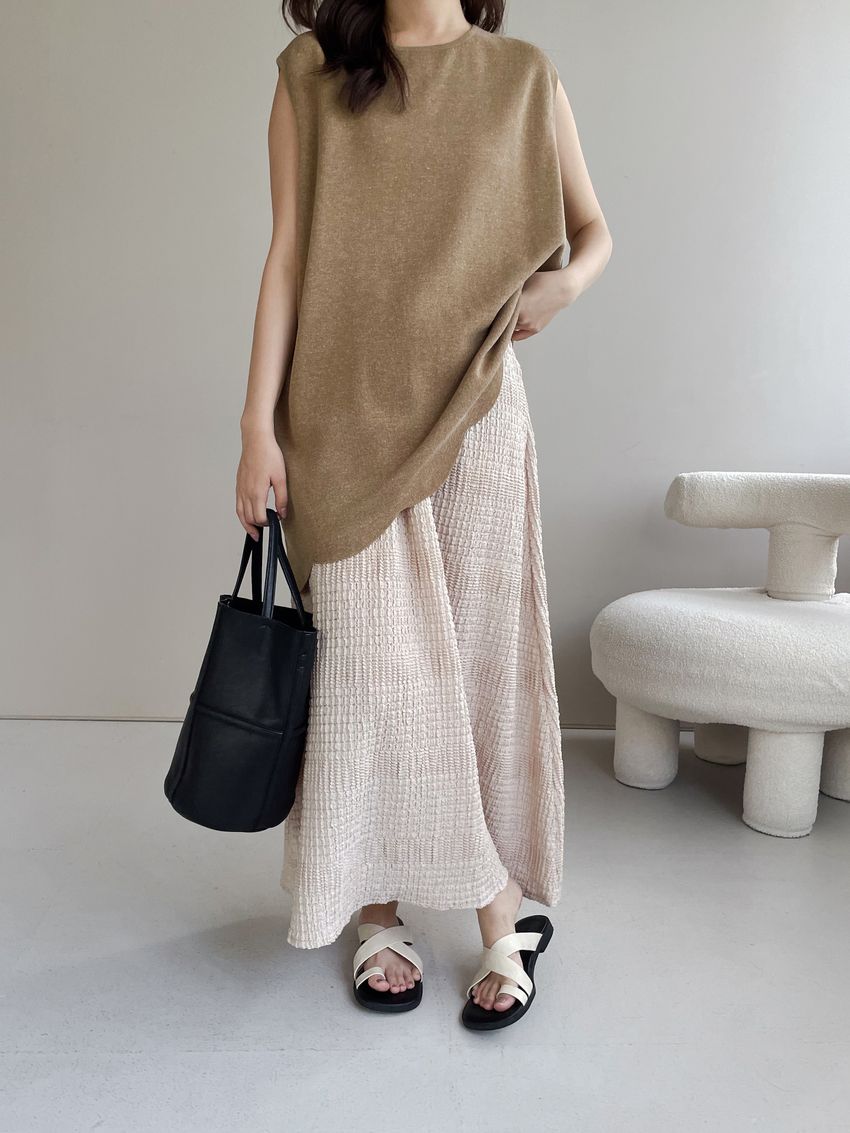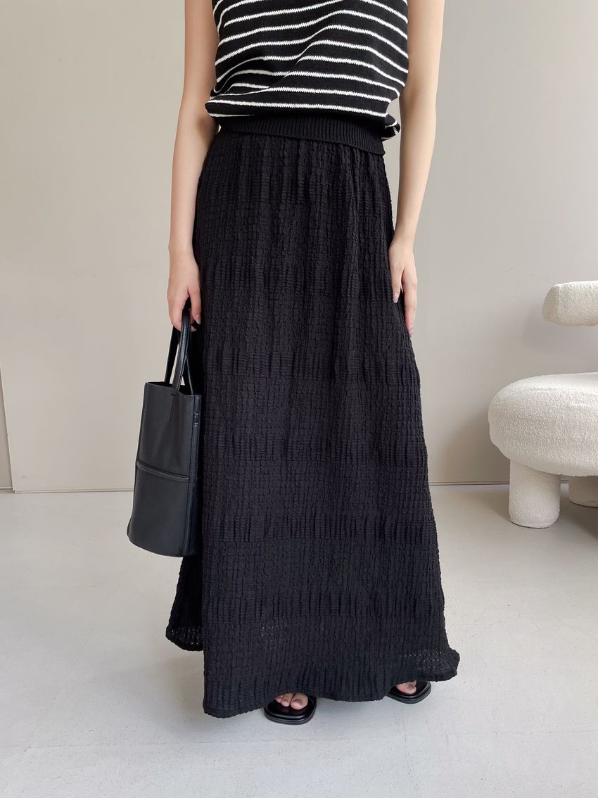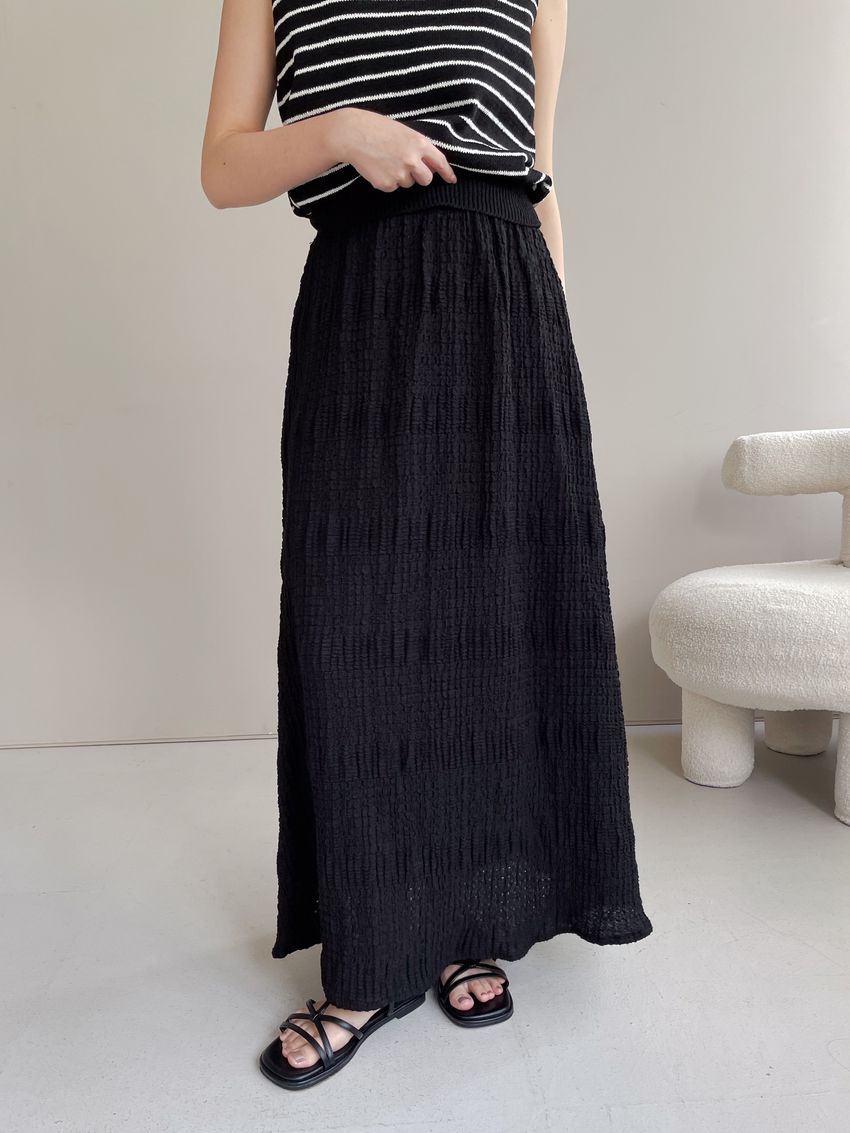 81%poly 18%cotton 1%span腰圍整圈鬆緊後下擺開衩無內裡黑色 / 藕粉色 / 淺奶茶杏色單一尺寸 建議S號~L號身型適合model / Yen - 159cm / 44kg 腰24 臀34