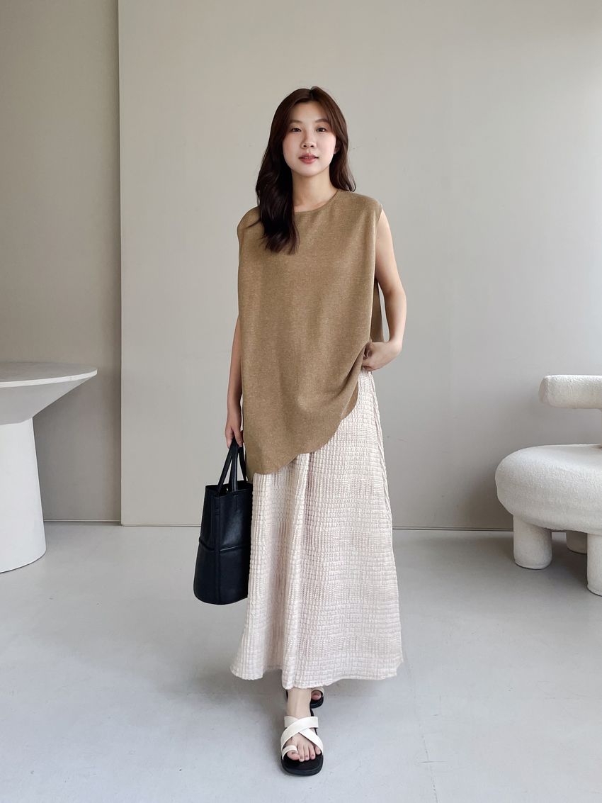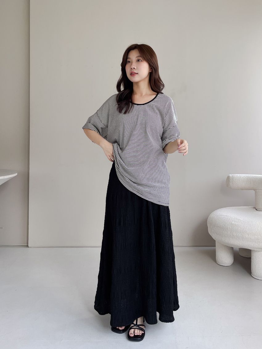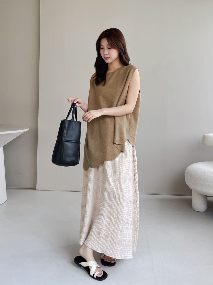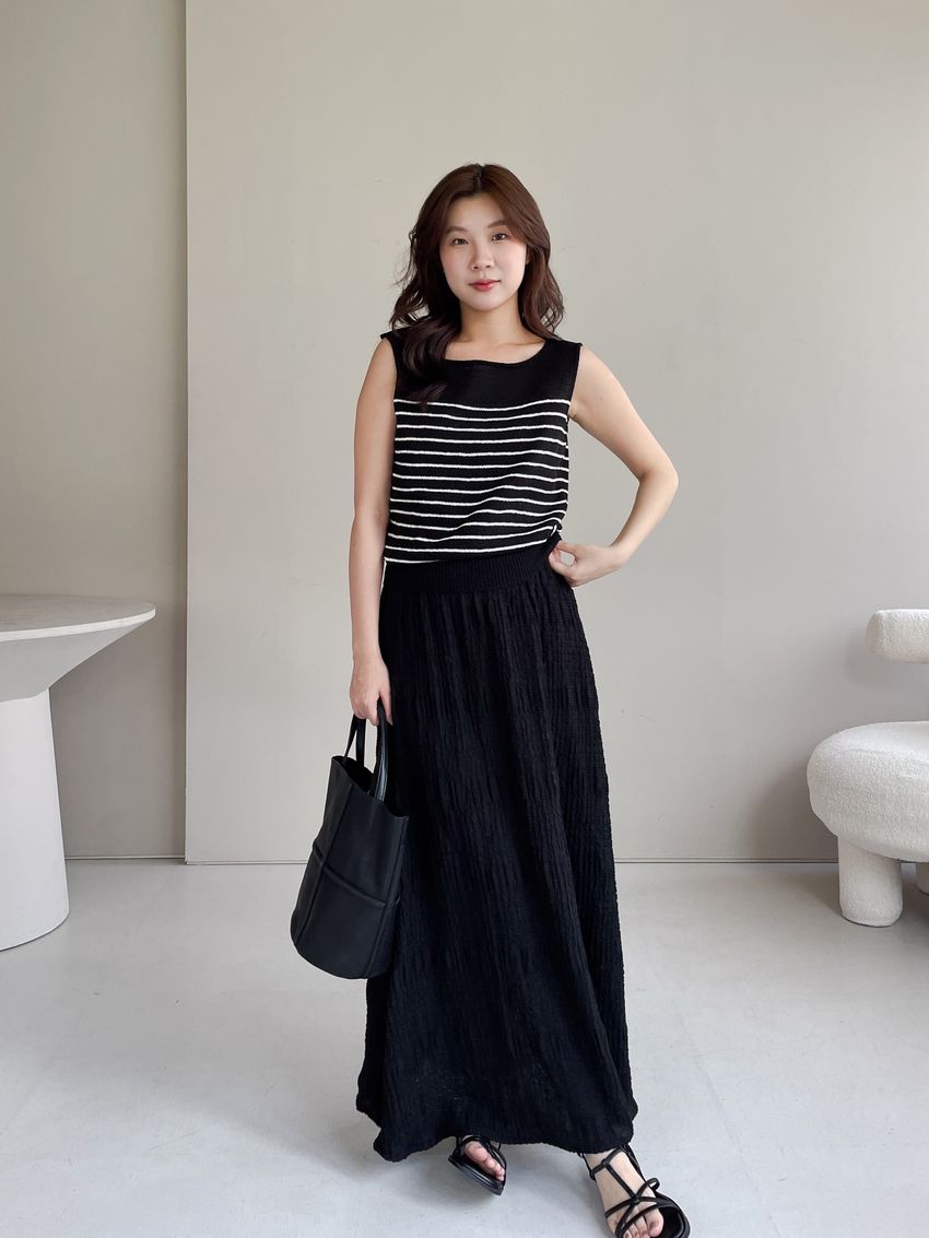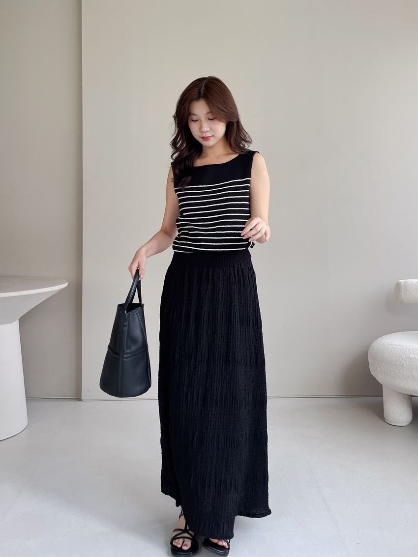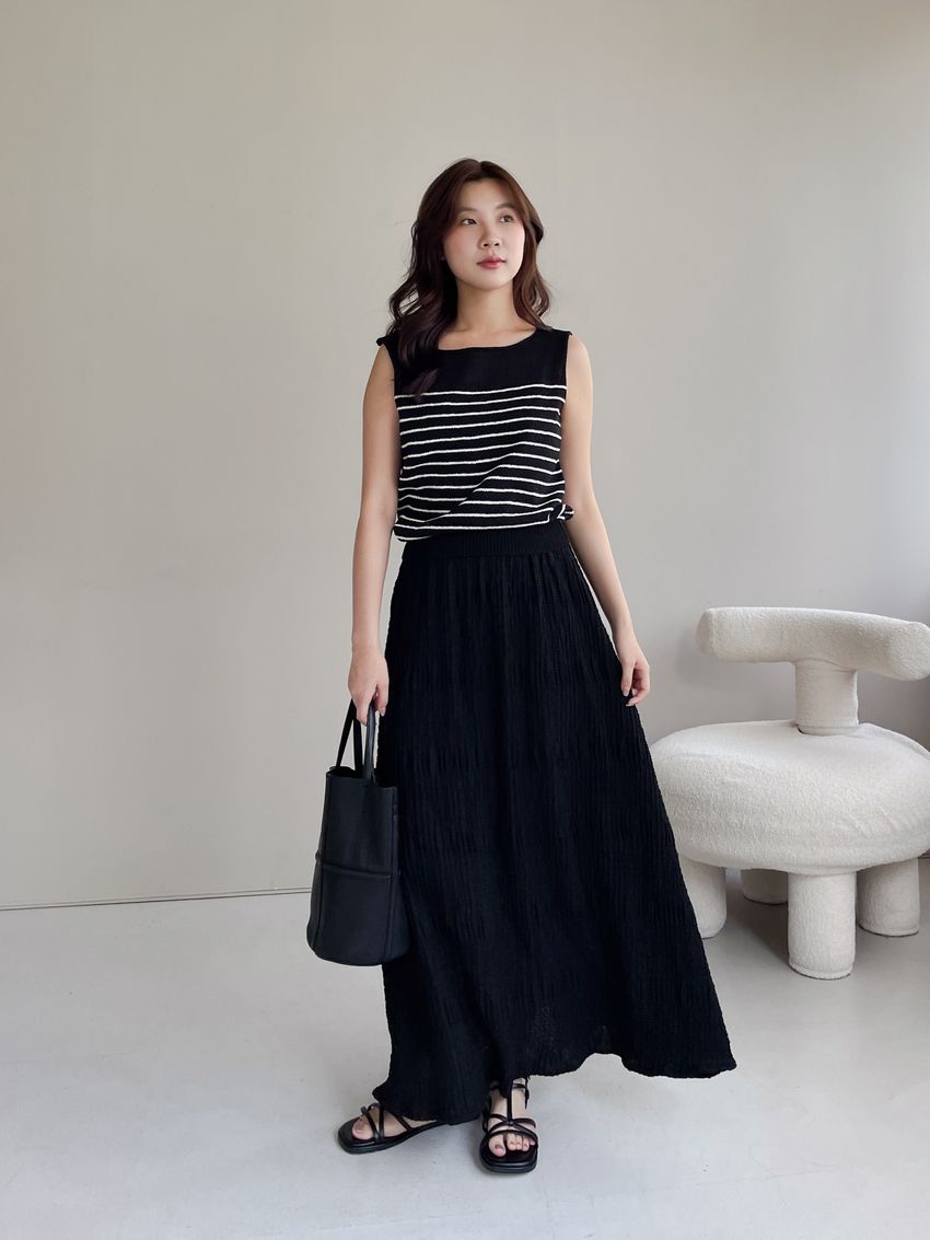 81%poly 18%cotton 1%span腰圍整圈鬆緊後下擺開衩無內裡黑色 / 藕粉色 / 淺奶茶杏色單一尺寸 建議S號~L號身型適合model / Yen - 159cm / 44kg 腰24 臀34