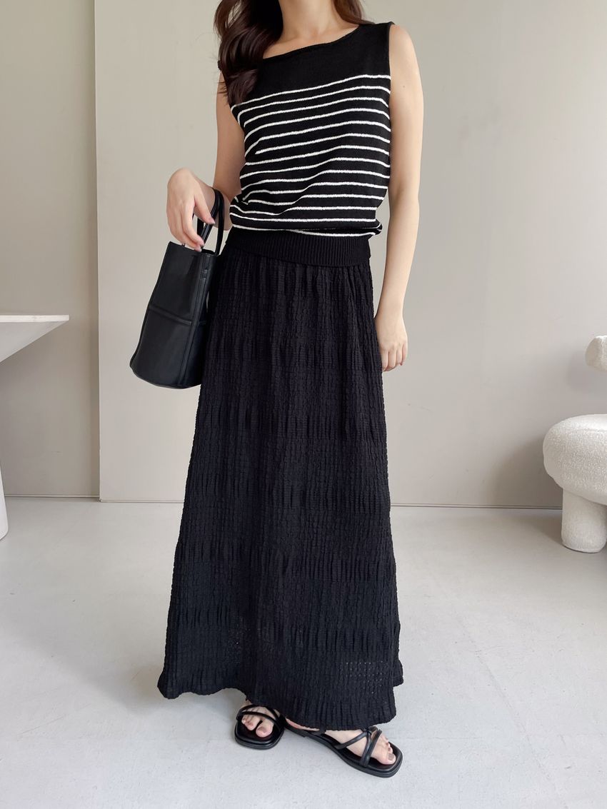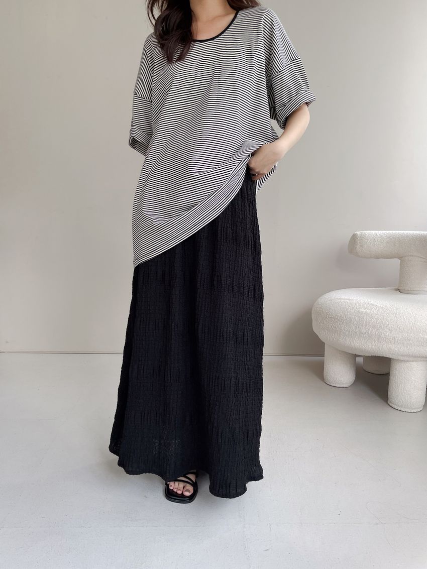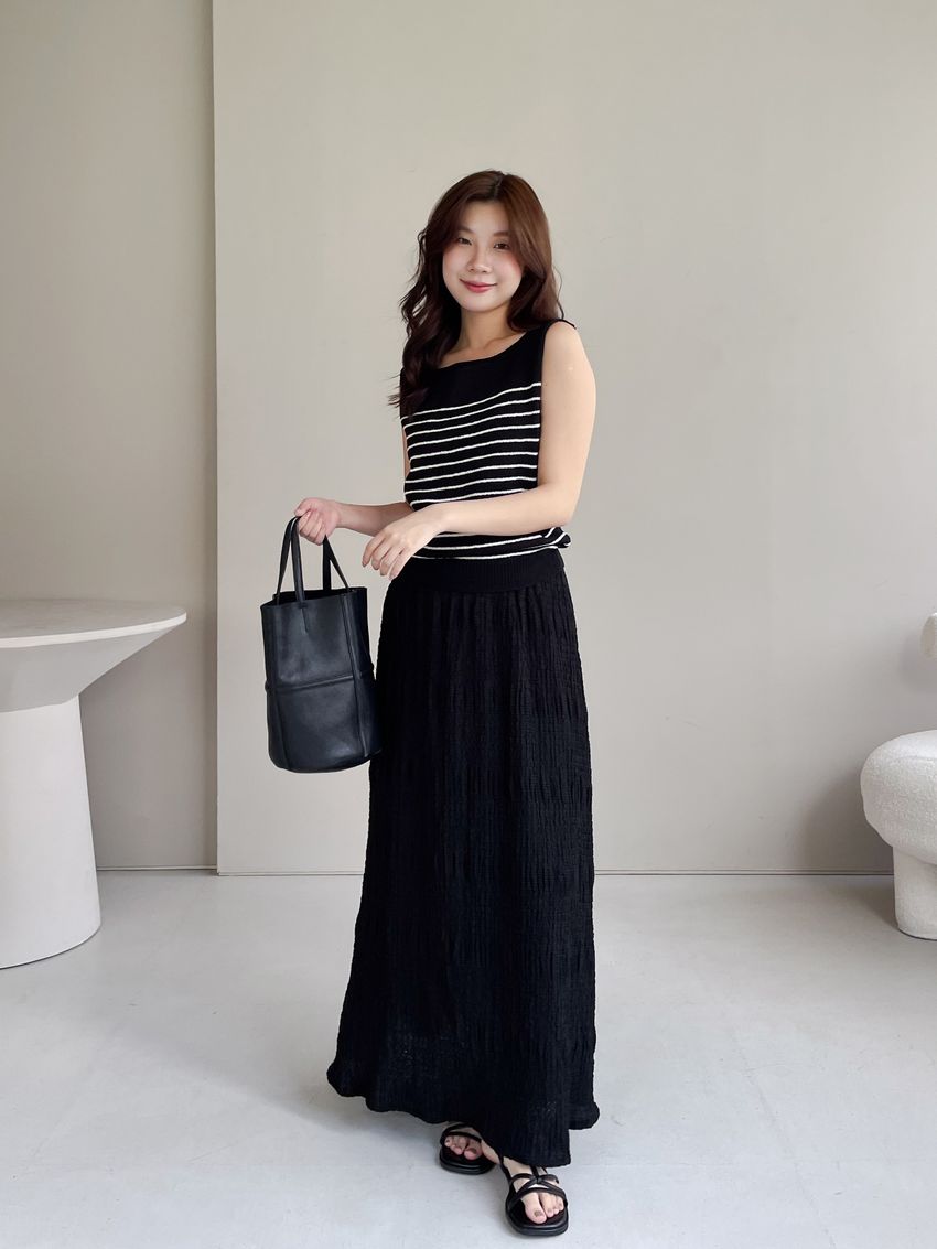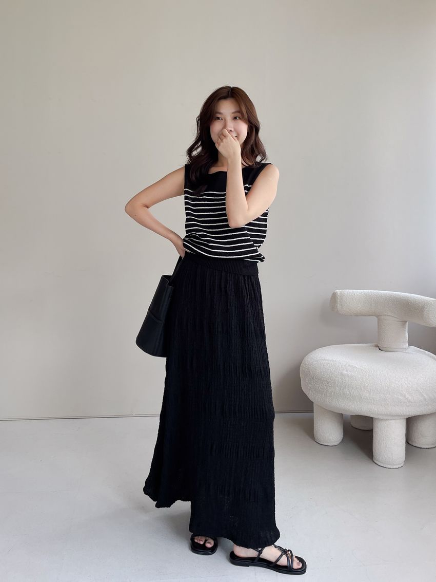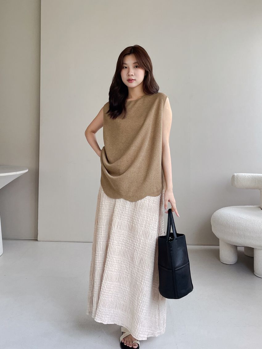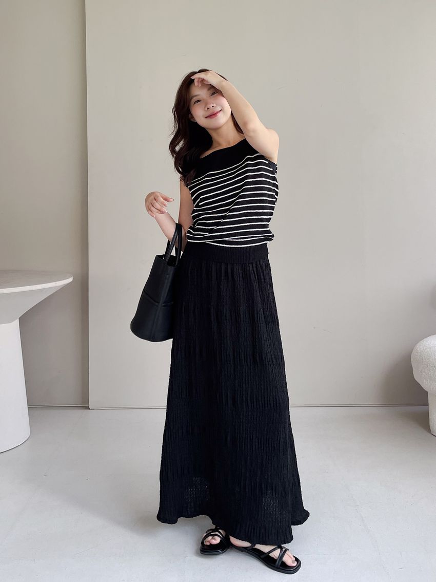 81%poly 18%cotton 1%span腰圍整圈鬆緊後下擺開衩無內裡黑色 / 藕粉色 / 淺奶茶杏色單一尺寸 建議S號~L號身型適合model / Yen - 159cm / 44kg 腰24 臀34