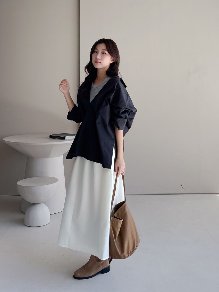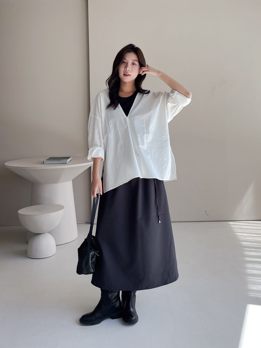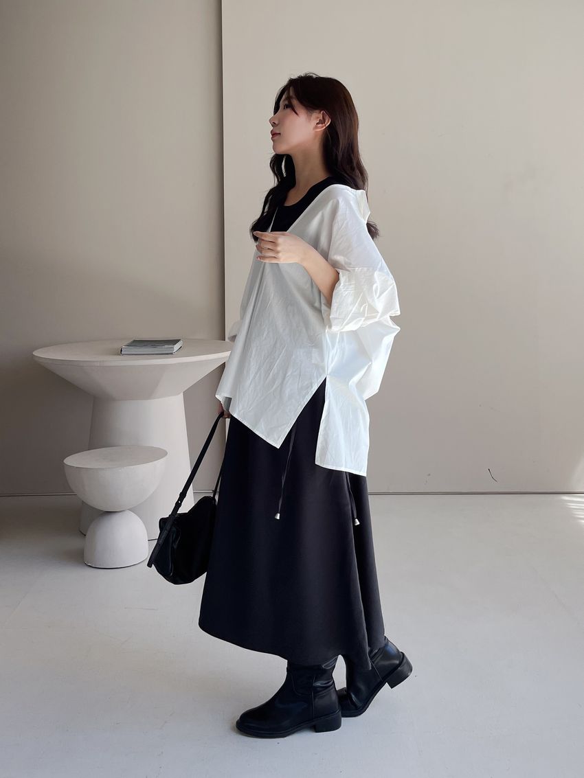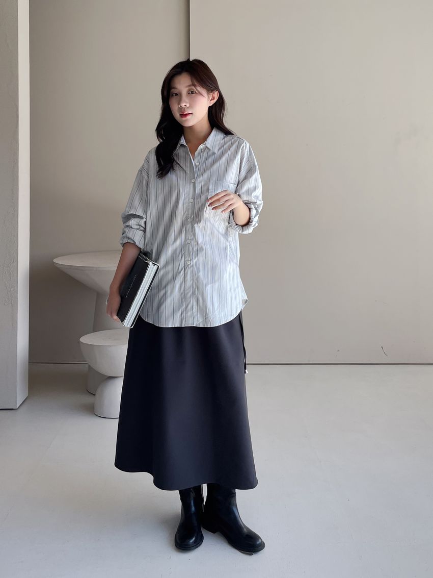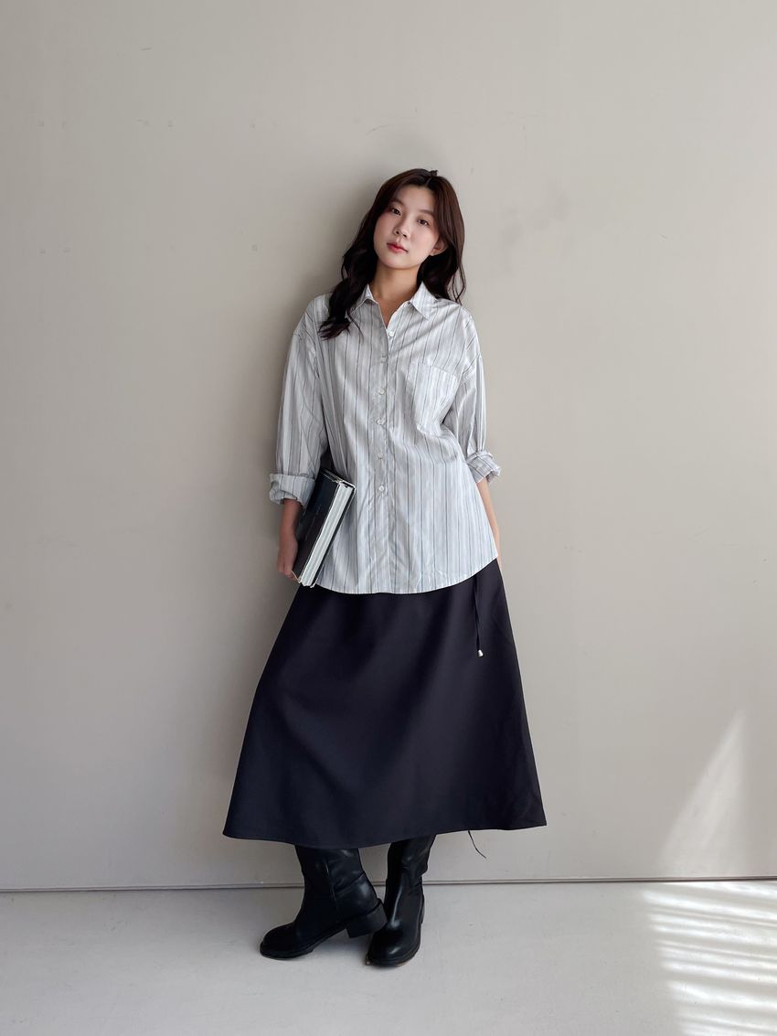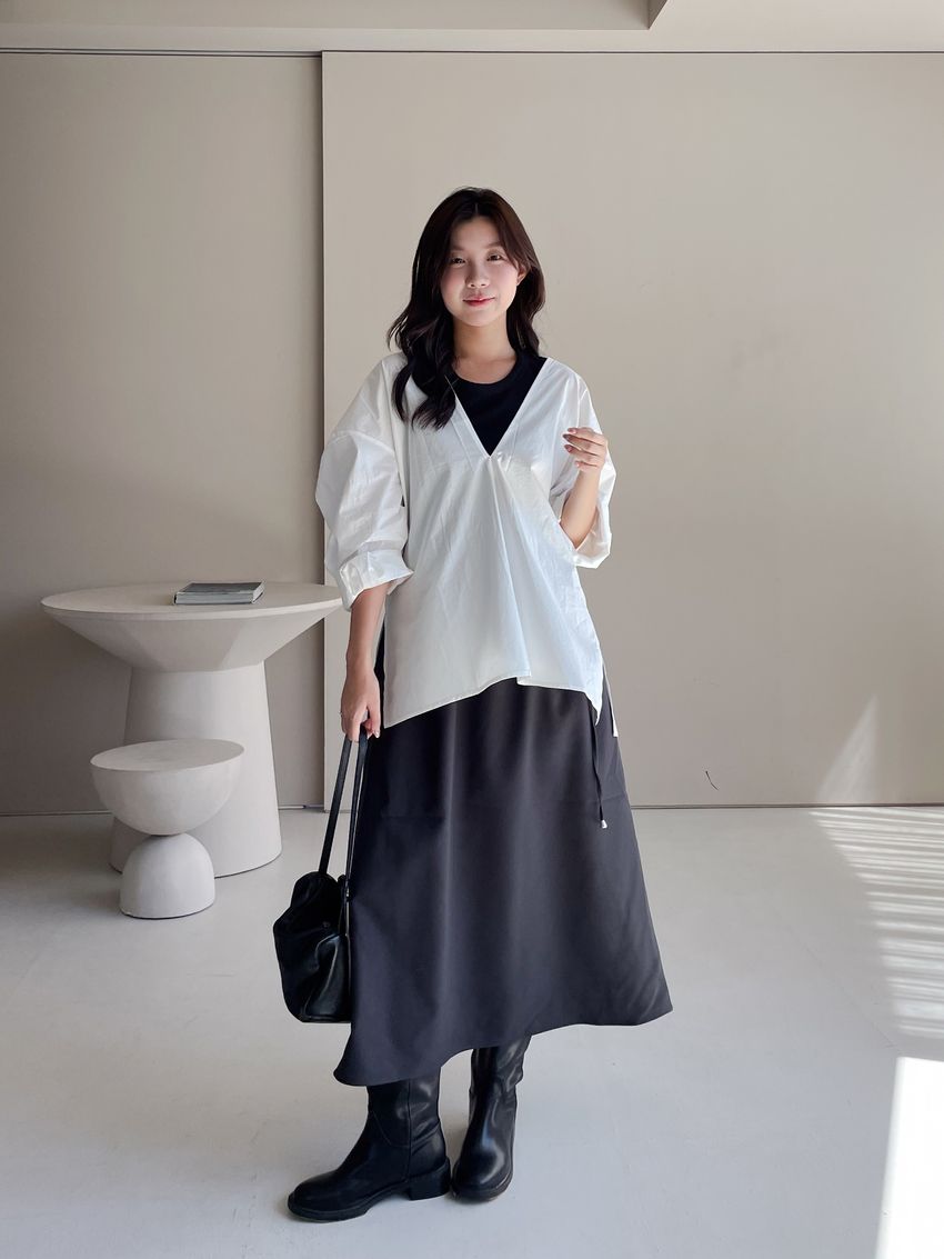 > Connie推薦款!綴釦紗料八分圓裙(直播款)