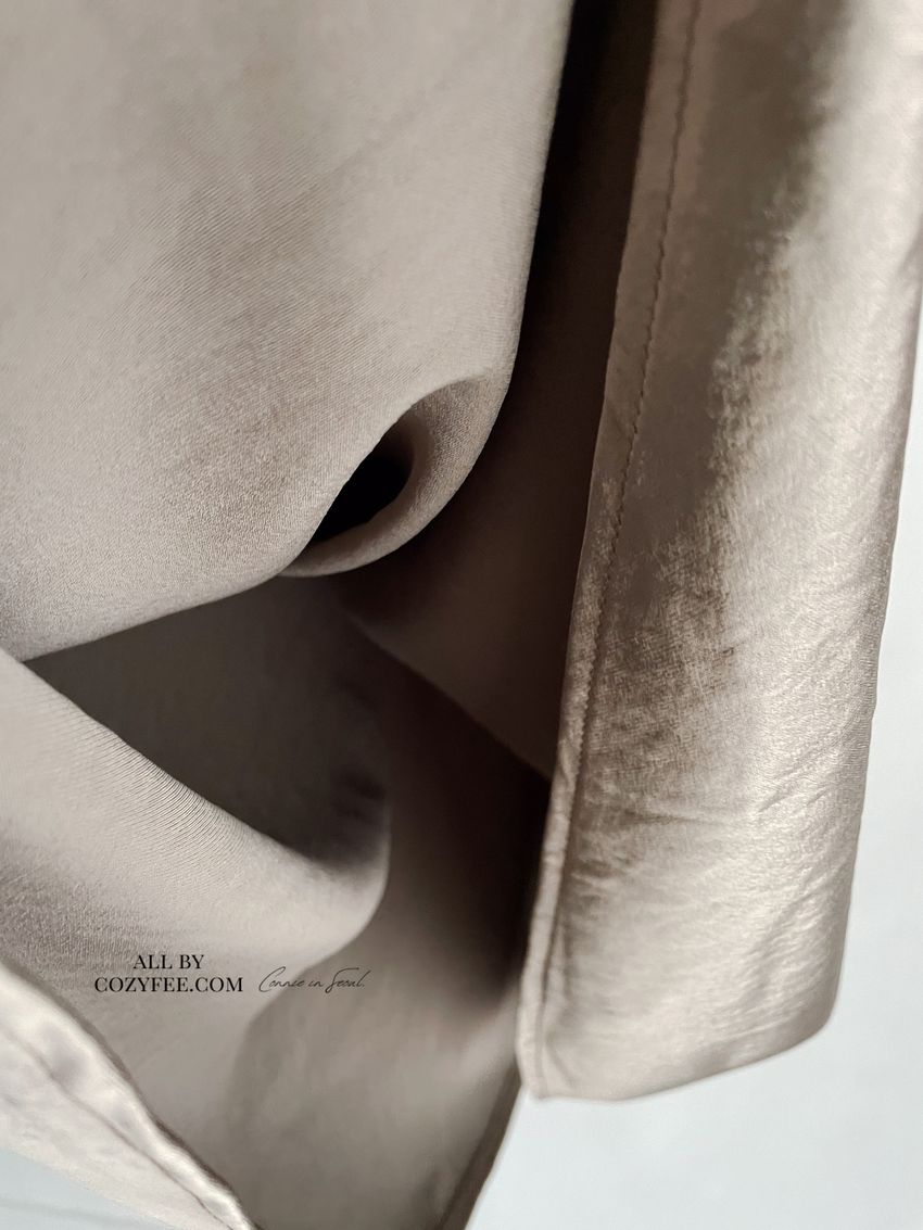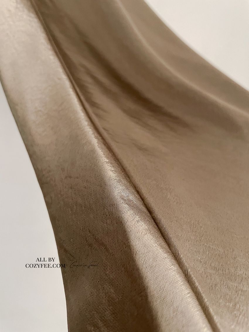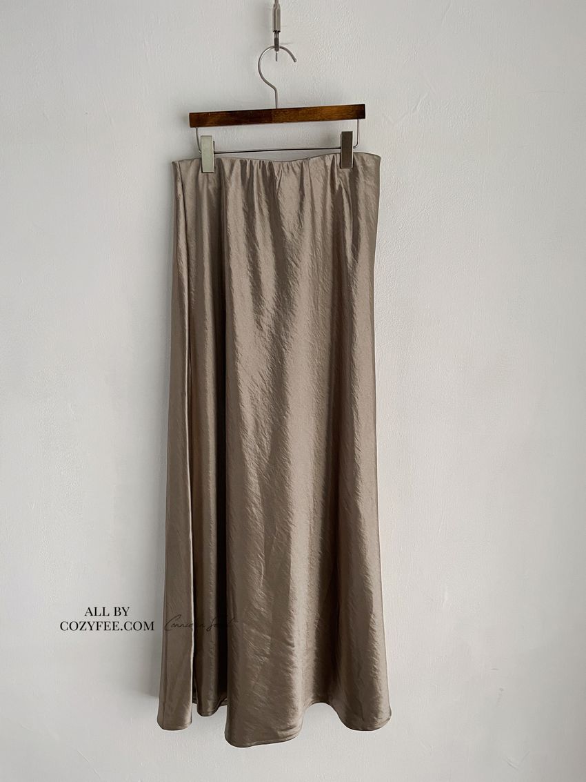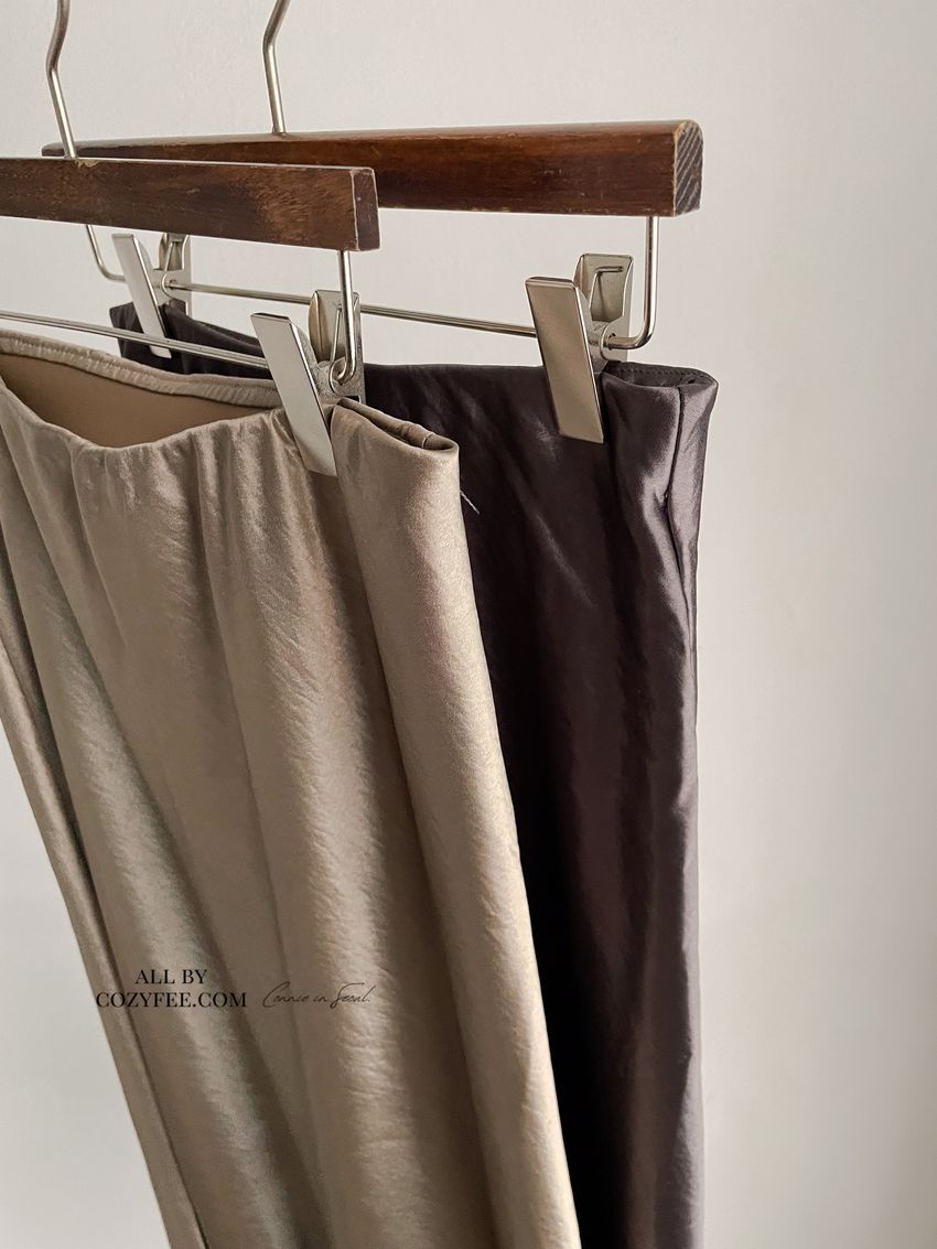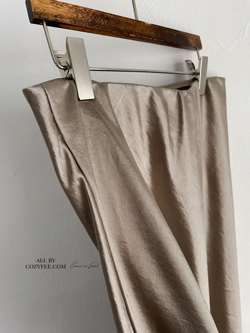 100%poly腰圍內側整圈隱藏鬆緊帶無內裡布料有微彈性 彈性滿分5分有2分灰銀色 / 香檳杏色單一尺寸 建議S號~小L號 以內 身型適合model / Yen - 159cm / 44kg 腰24 臀34