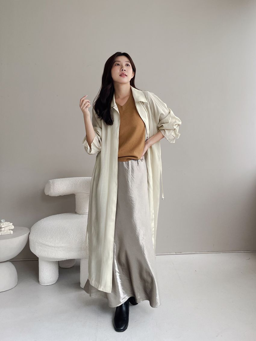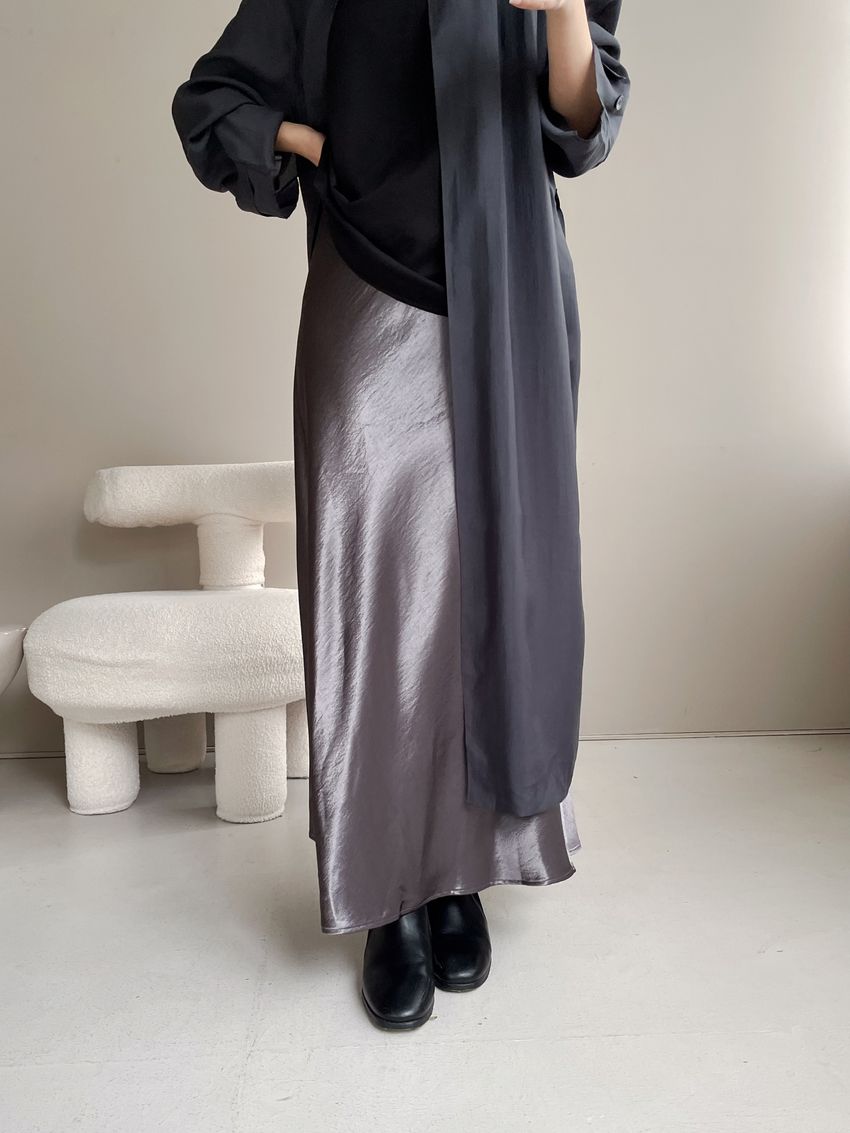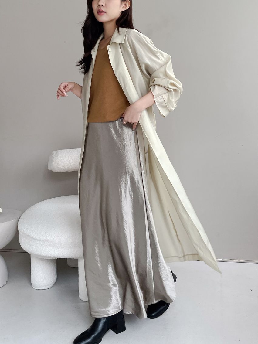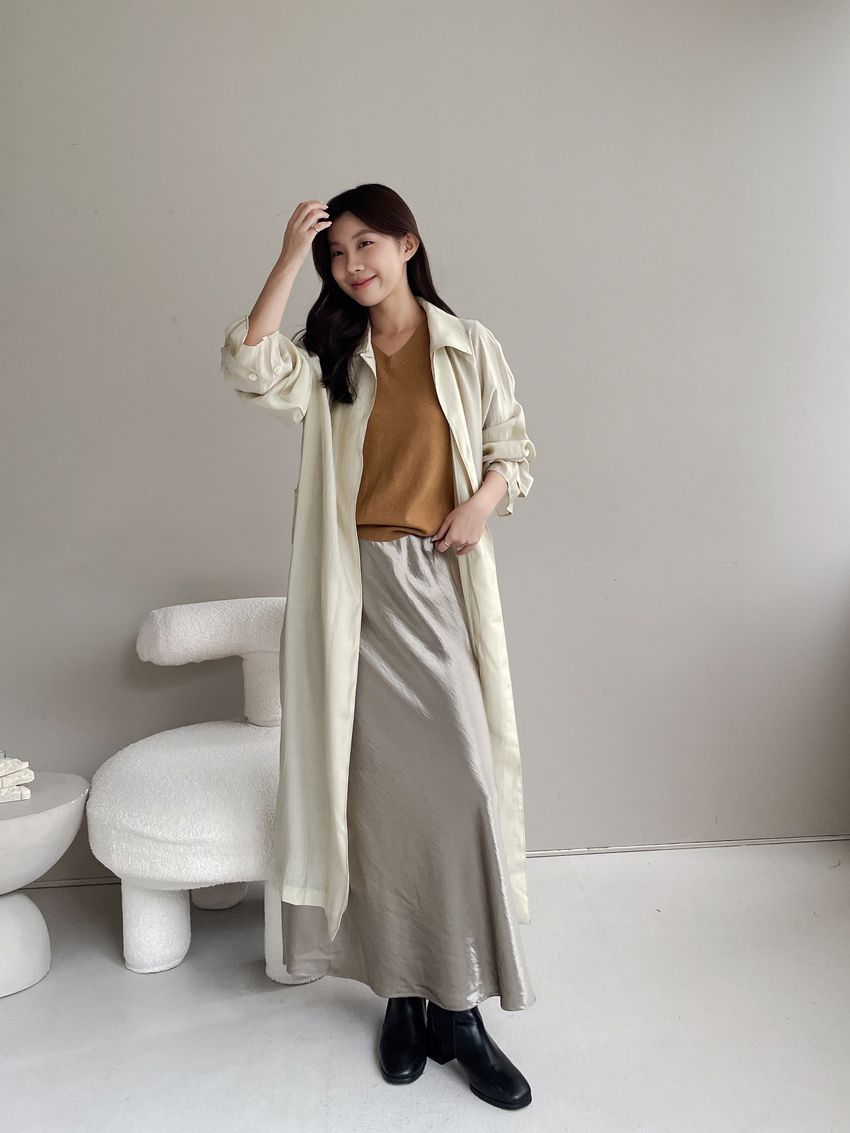 100%poly腰圍內側整圈隱藏鬆緊帶無內裡布料有微彈性 彈性滿分5分有2分灰銀色 / 香檳杏色單一尺寸 建議S號~小L號 以內 身型適合model / Yen - 159cm / 44kg 腰24 臀34
