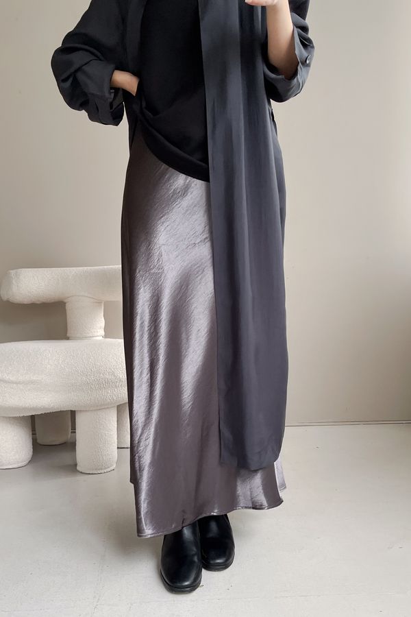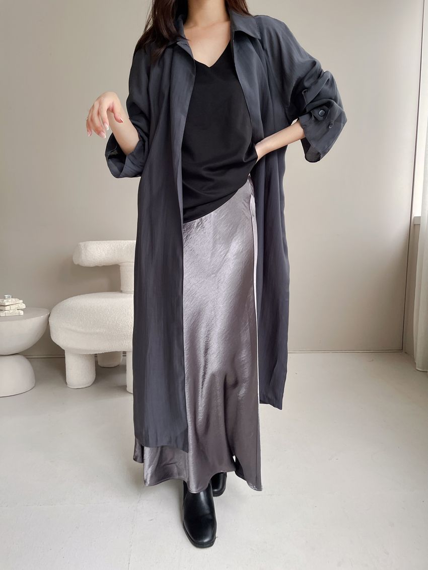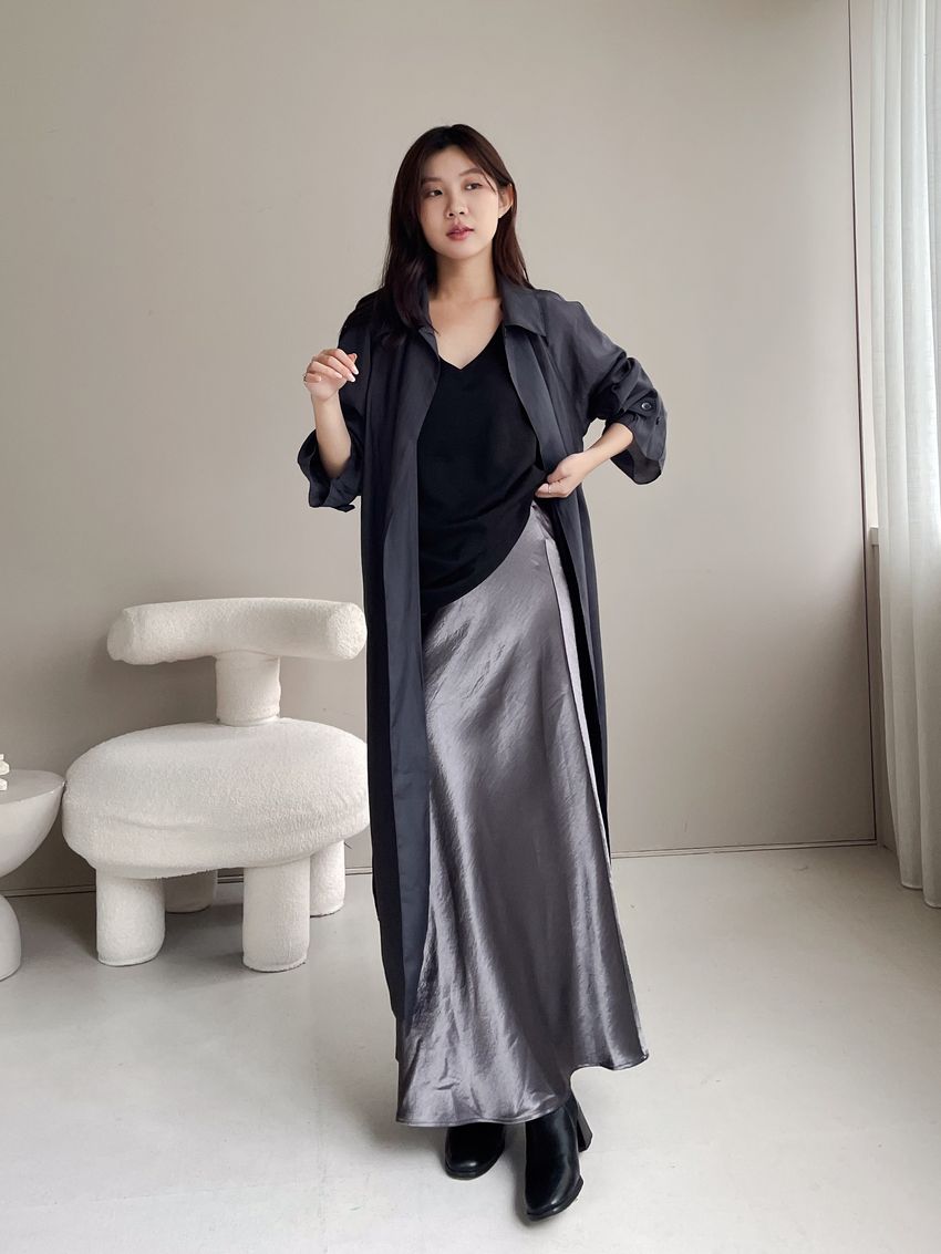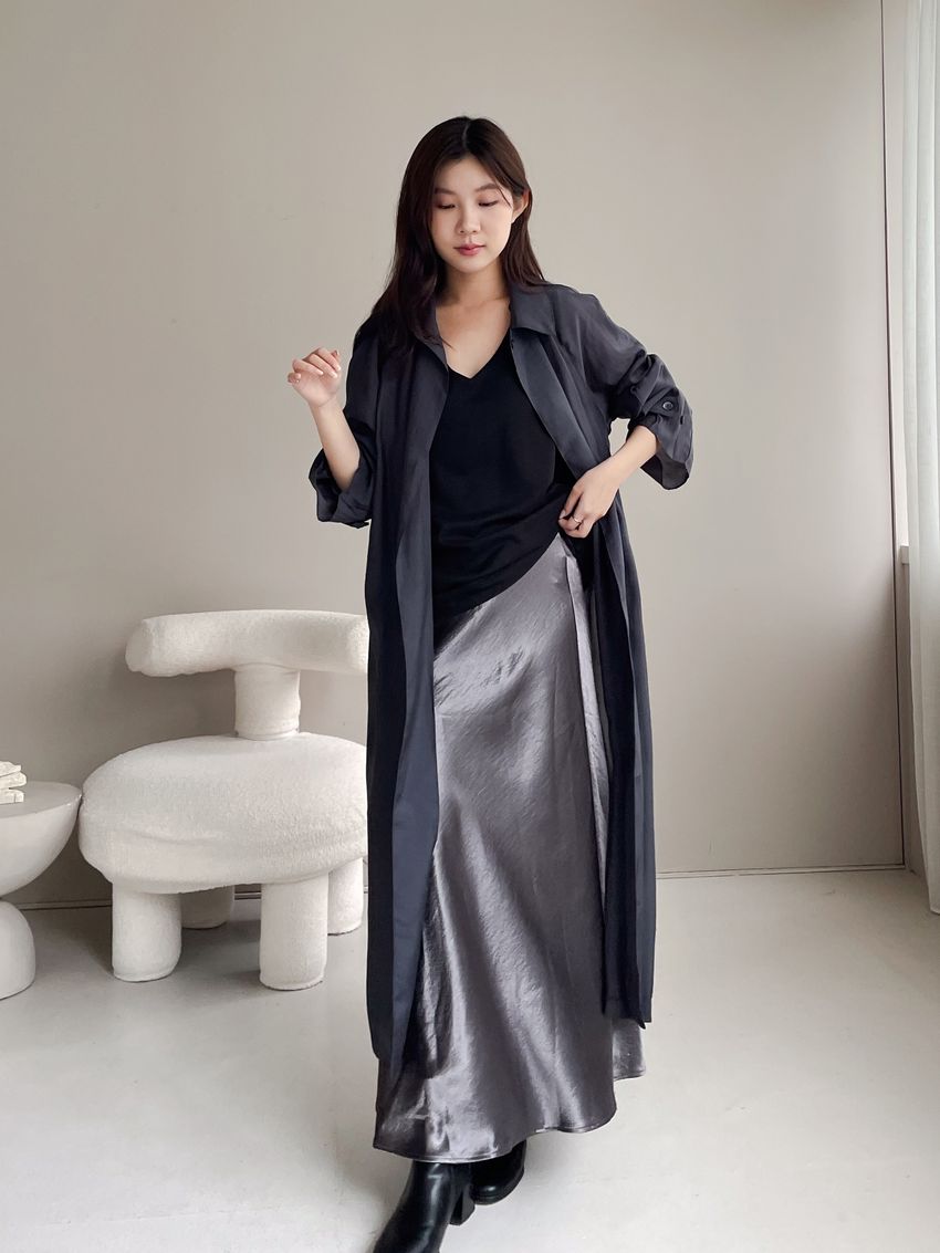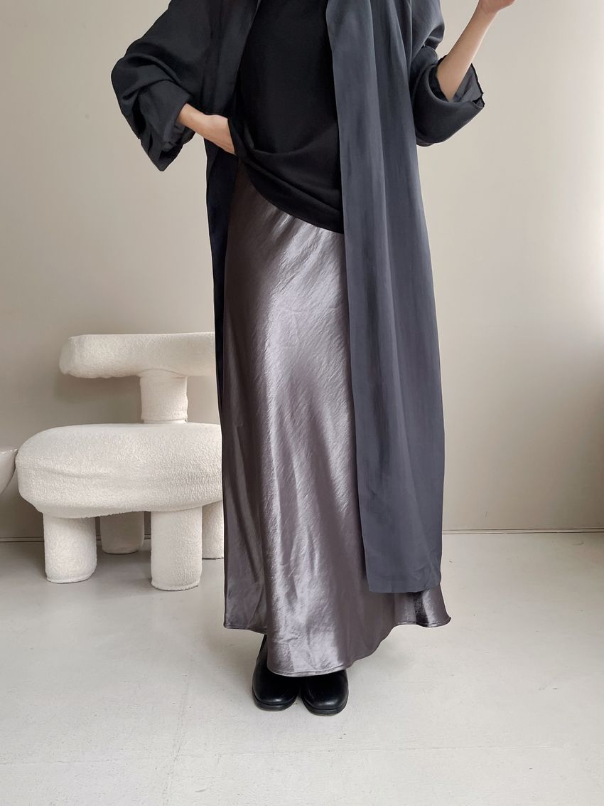 100%poly腰圍內側整圈隱藏鬆緊帶無內裡布料有微彈性 彈性滿分5分有2分灰銀色 / 香檳杏色單一尺寸 建議S號~小L號 以內 身型適合model / Yen - 159cm / 44kg 腰24 臀34