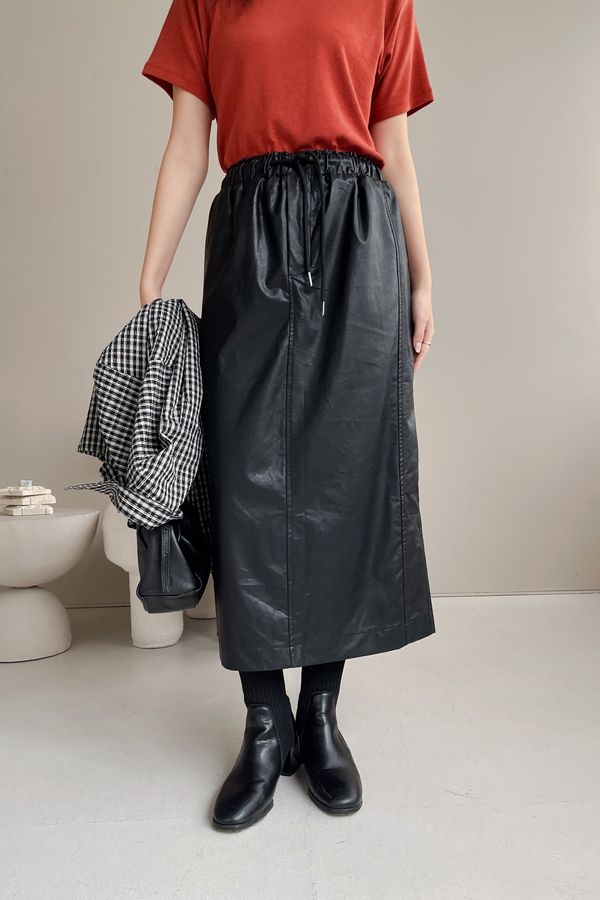 50%poly 50%rayon腰圍整圈鬆緊+綁帶設計布料有彈性 彈性滿分5分有3.5分無內裡黑色單一尺寸 建議S號~L號 以內 身型適合model / Yen - 159cm / 44kg 腰24 臀34