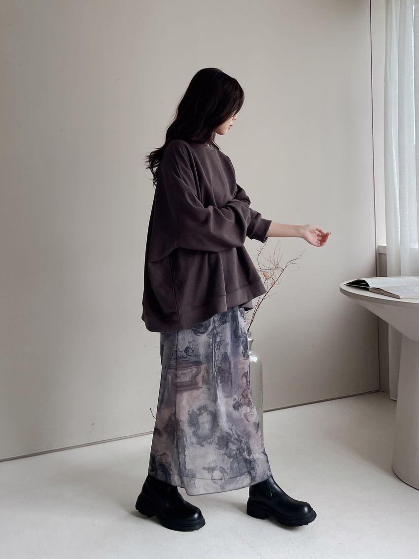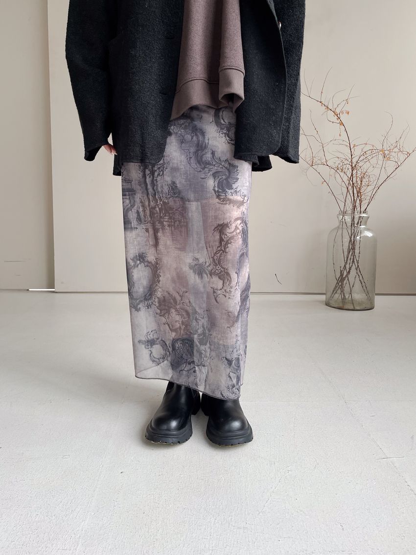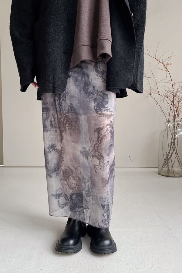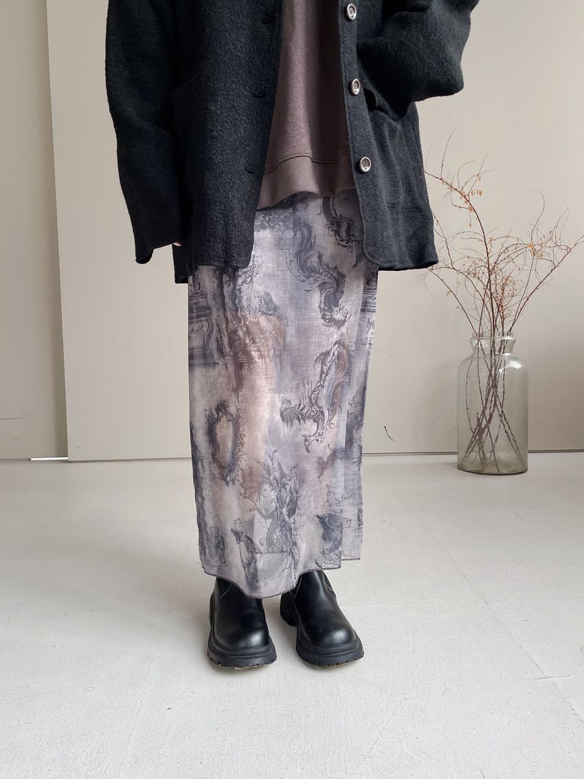 > 印花透紗直筒裙