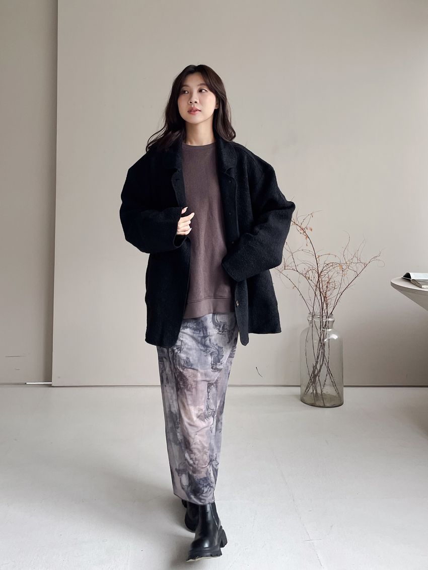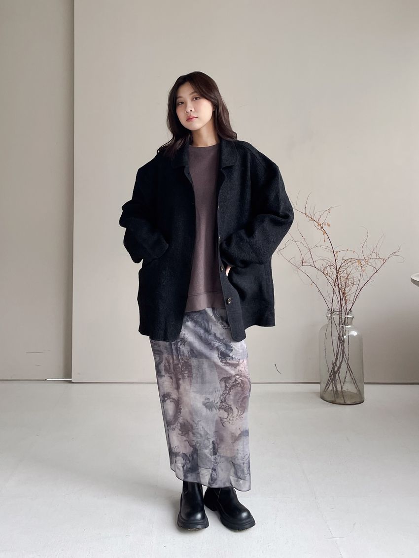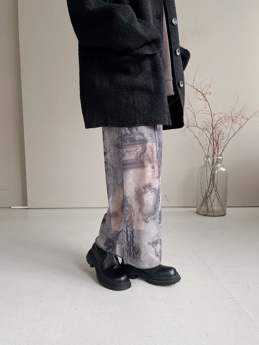 > 印花透紗直筒裙