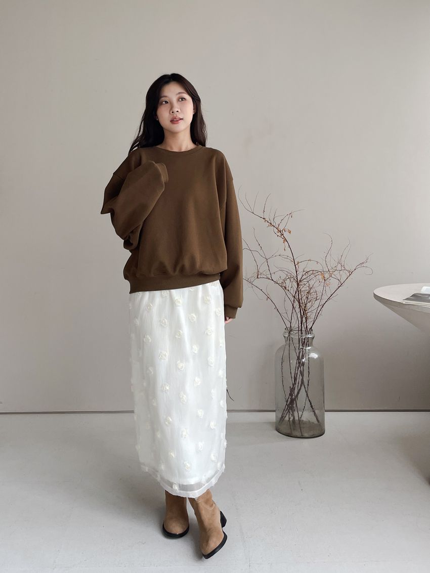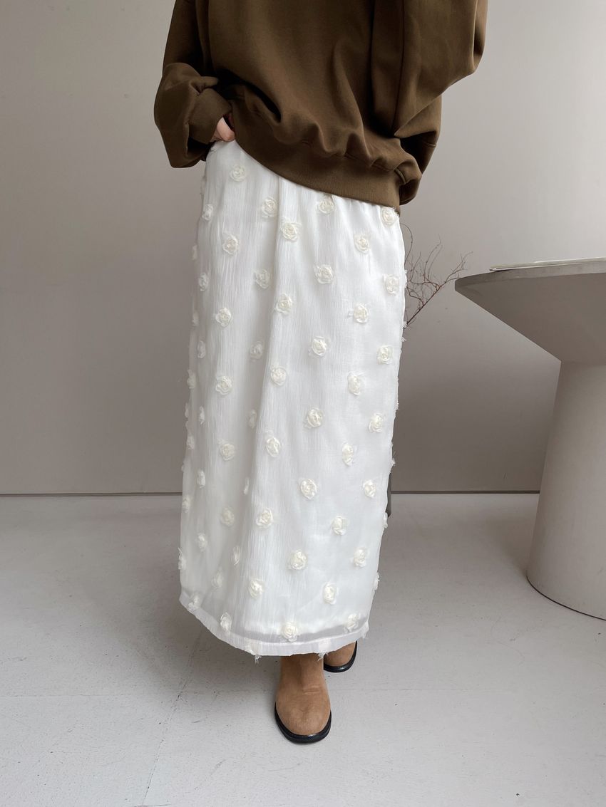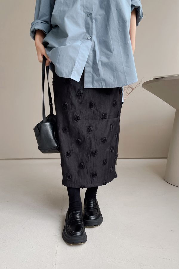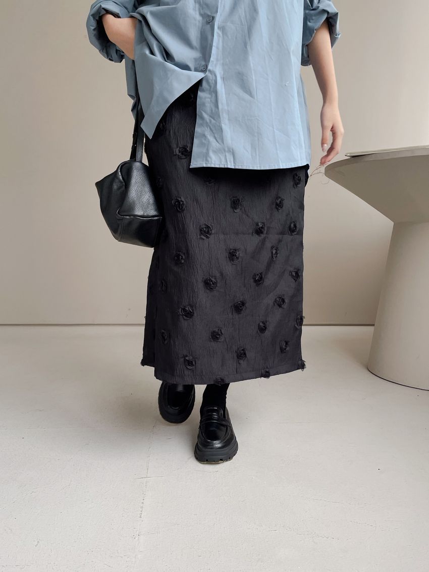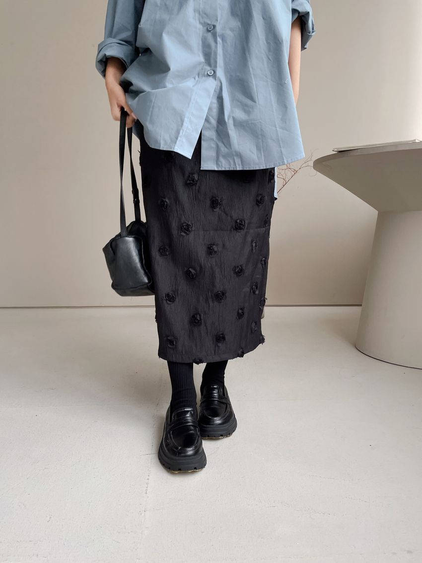 立體花紗開衩直筒裙