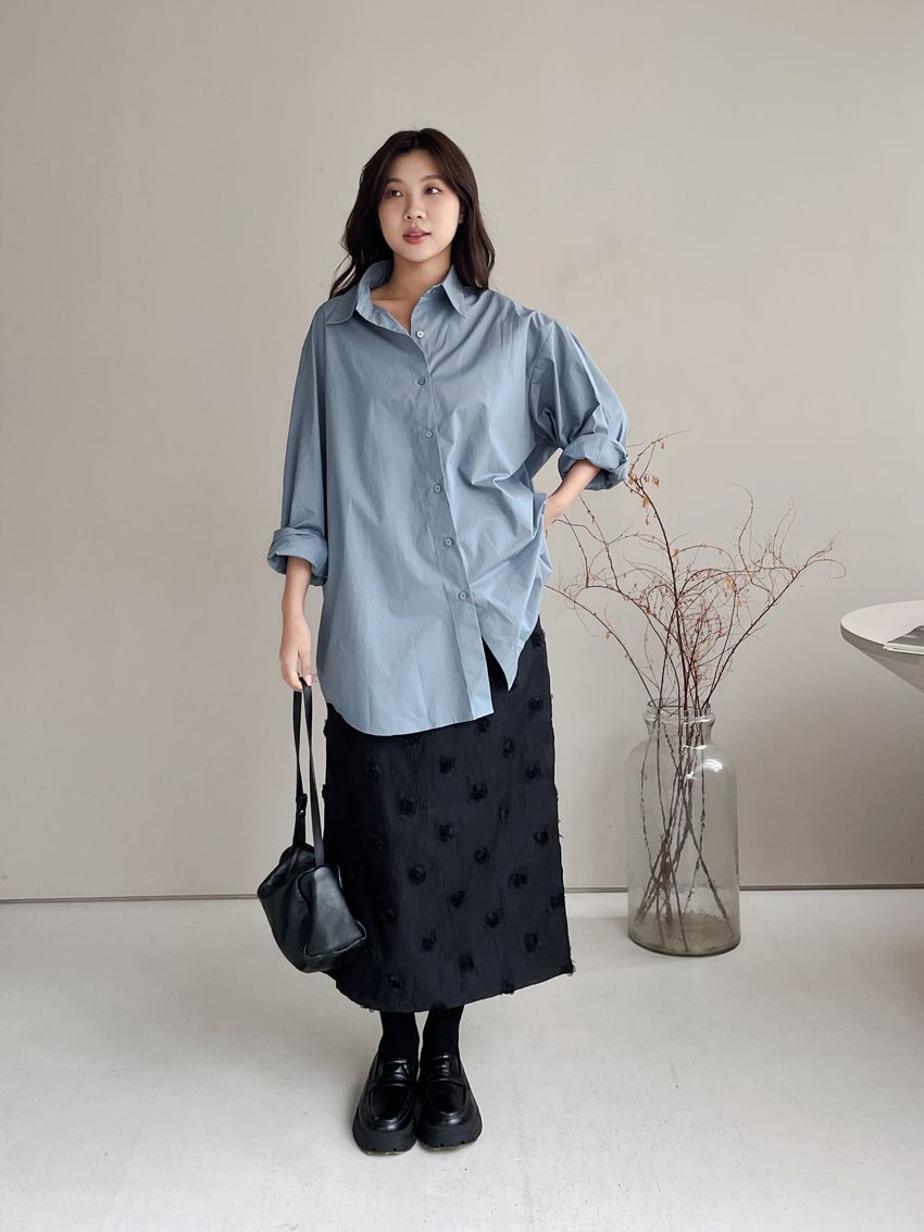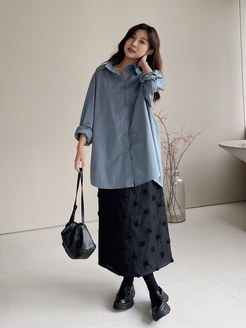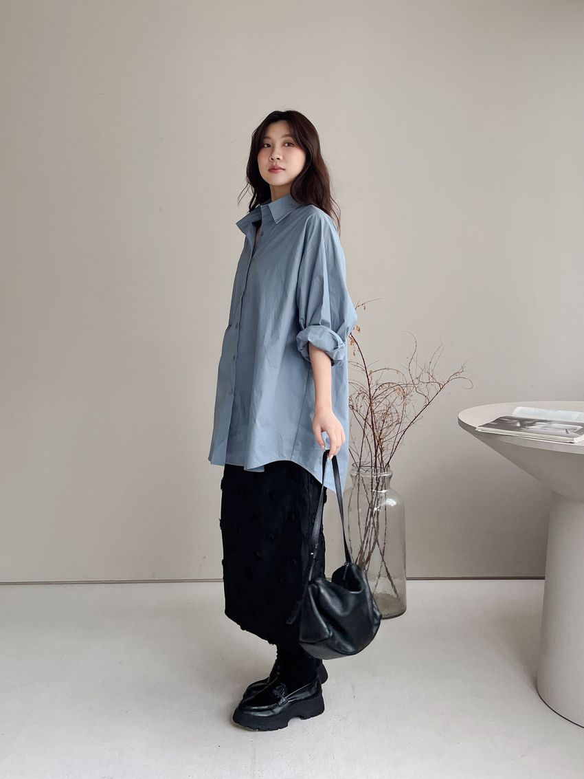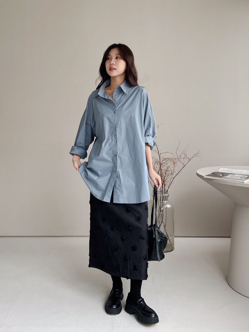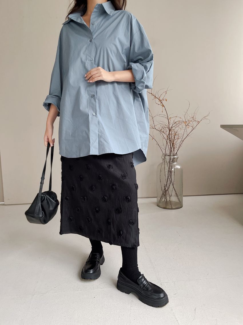 > 立體花紗開衩直筒裙