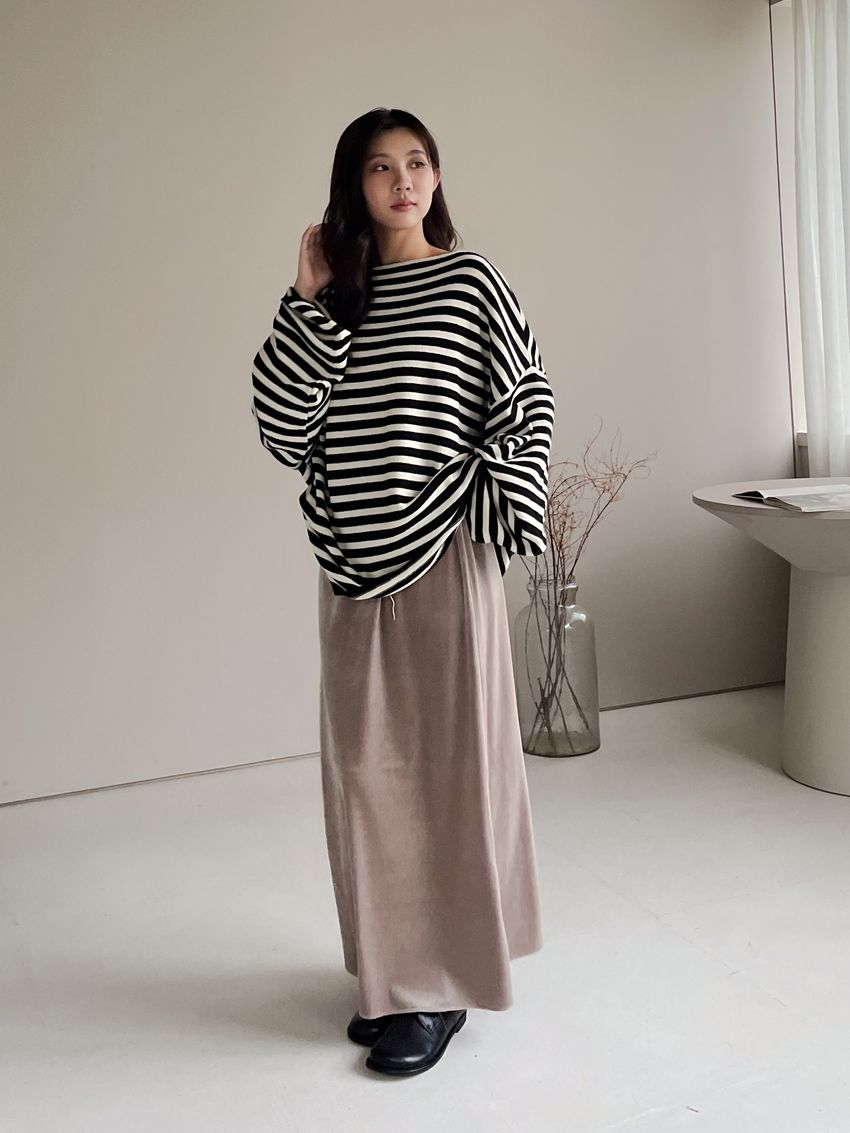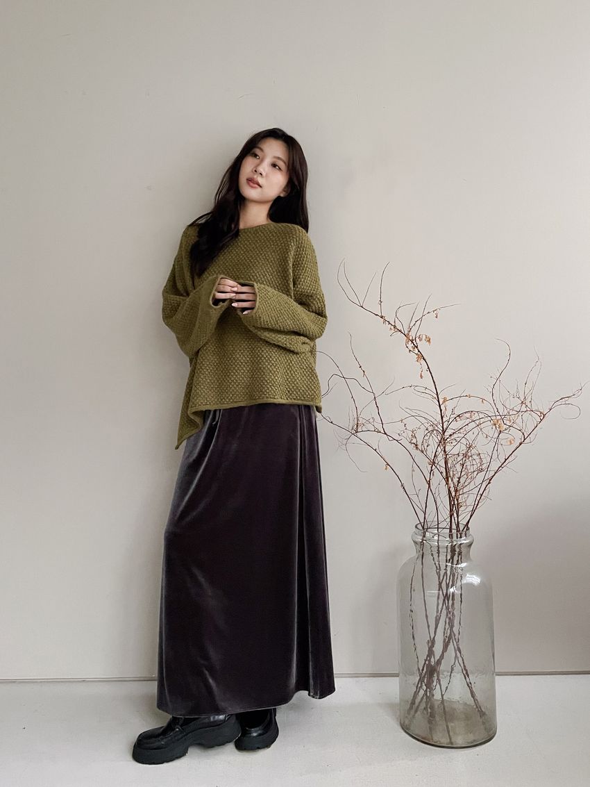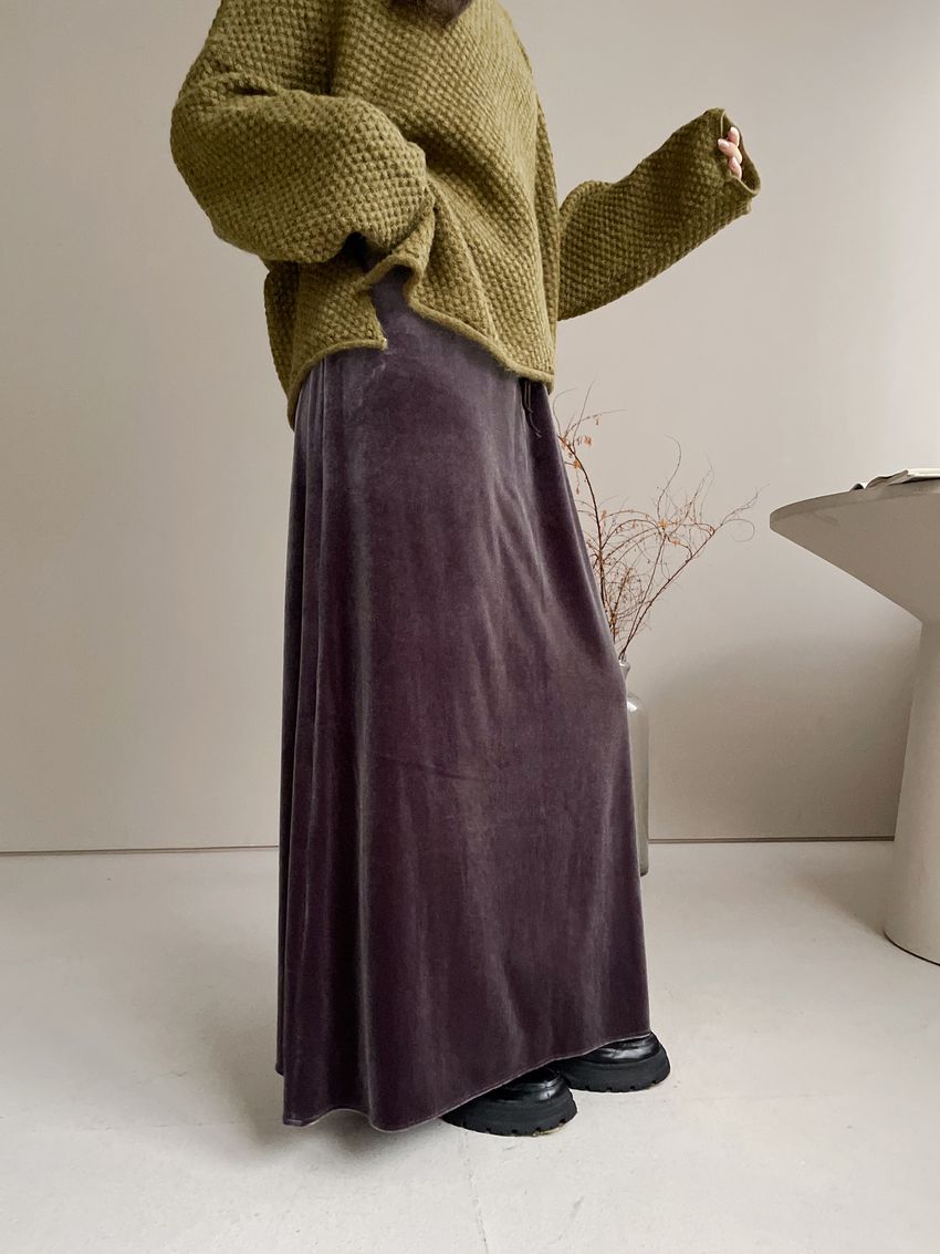 > Connie推薦款!天鵝絨綁帶小A字長裙