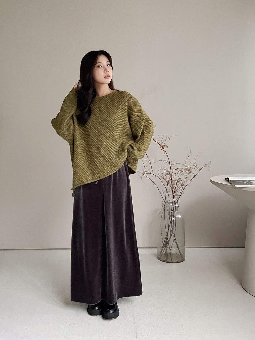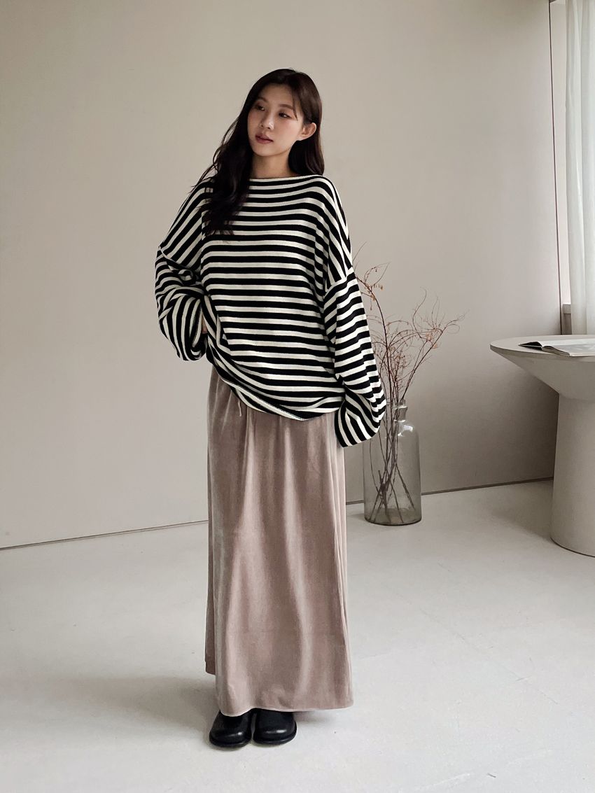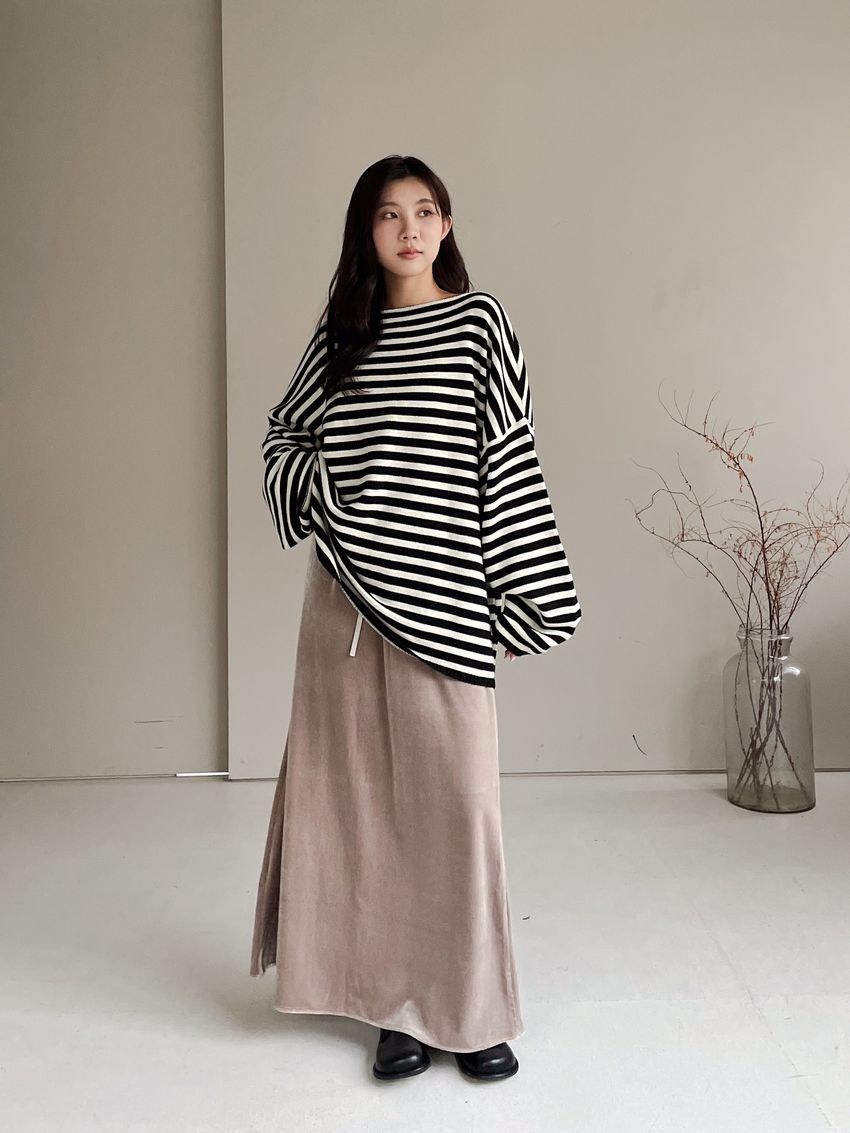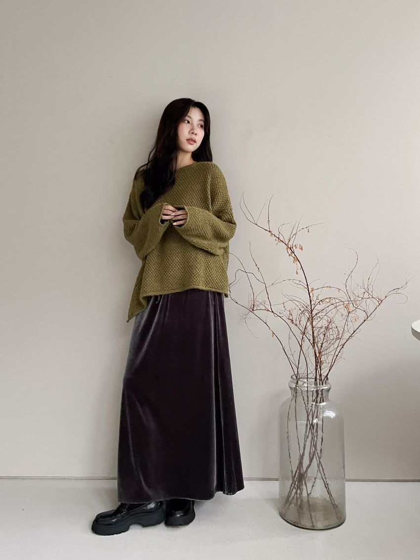 > Connie推薦款!天鵝絨綁帶小A字長裙