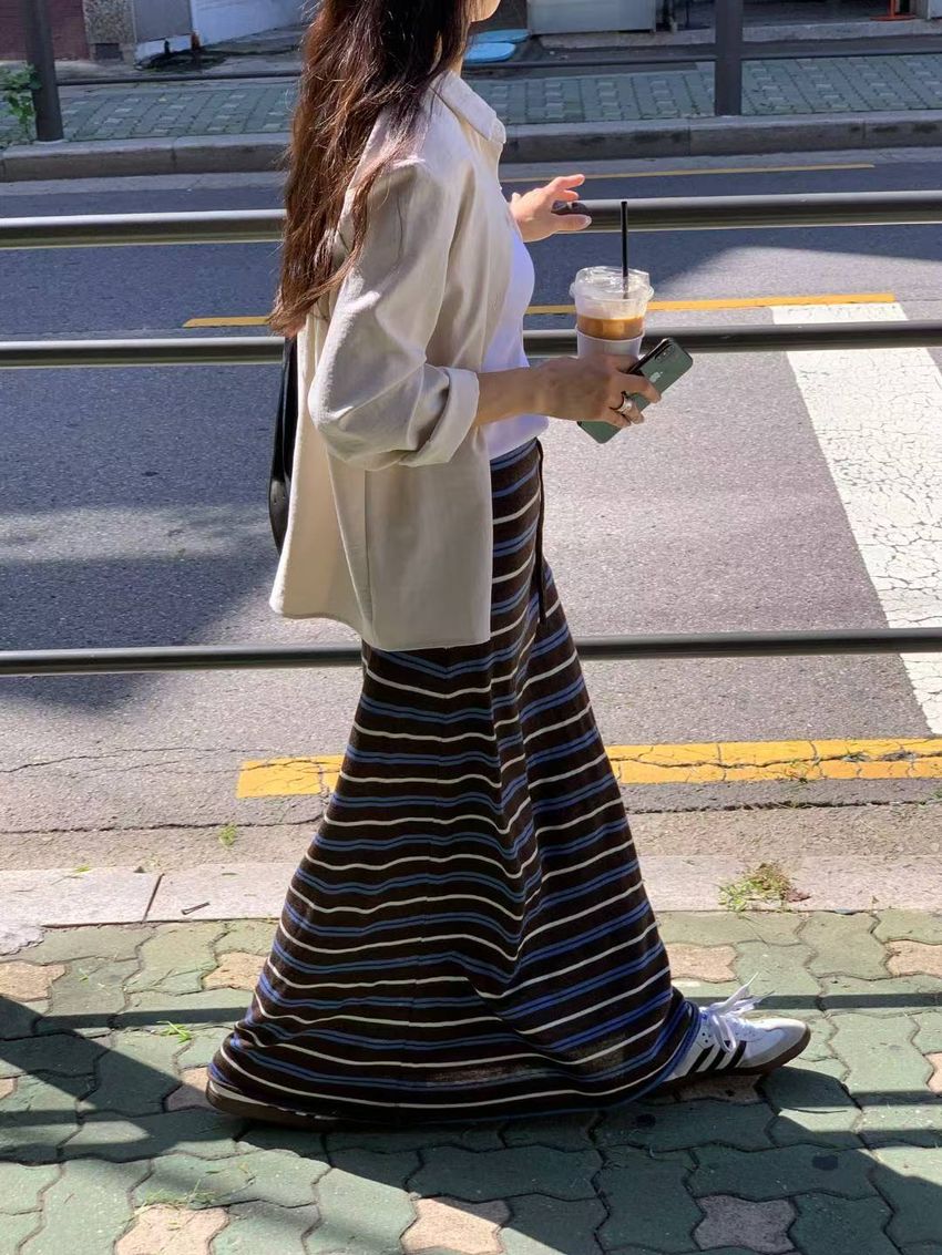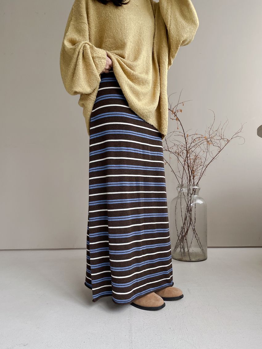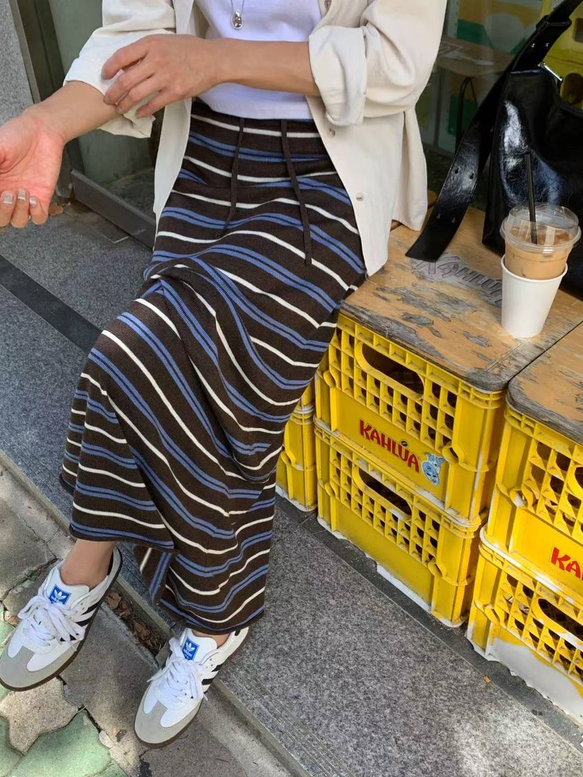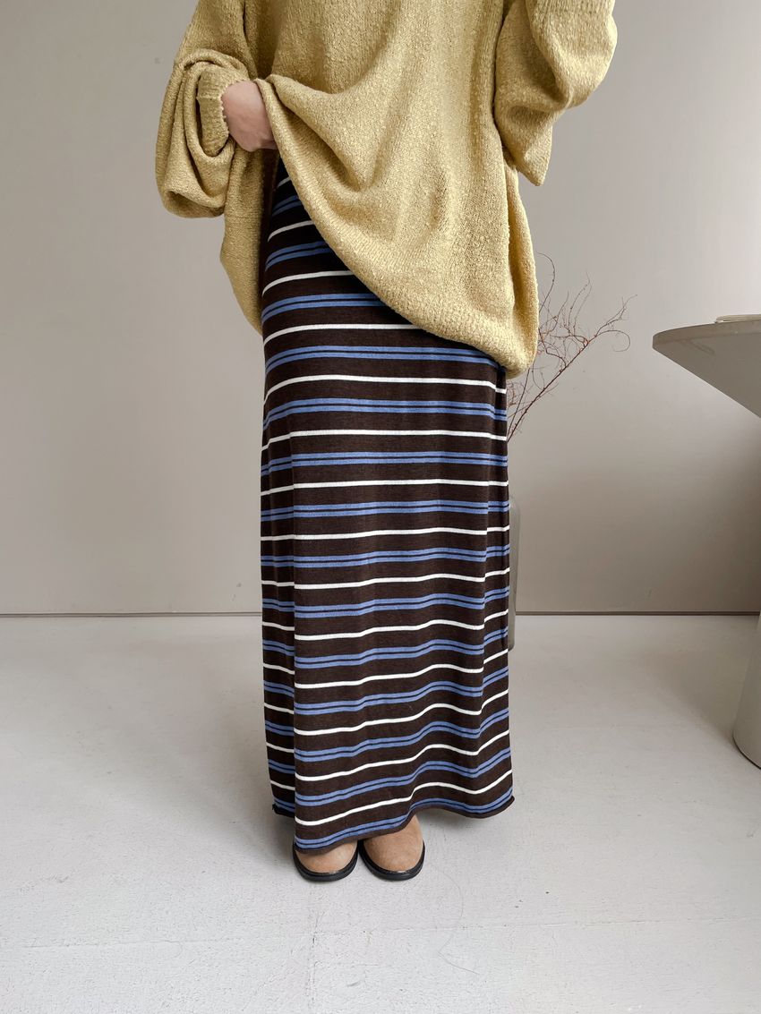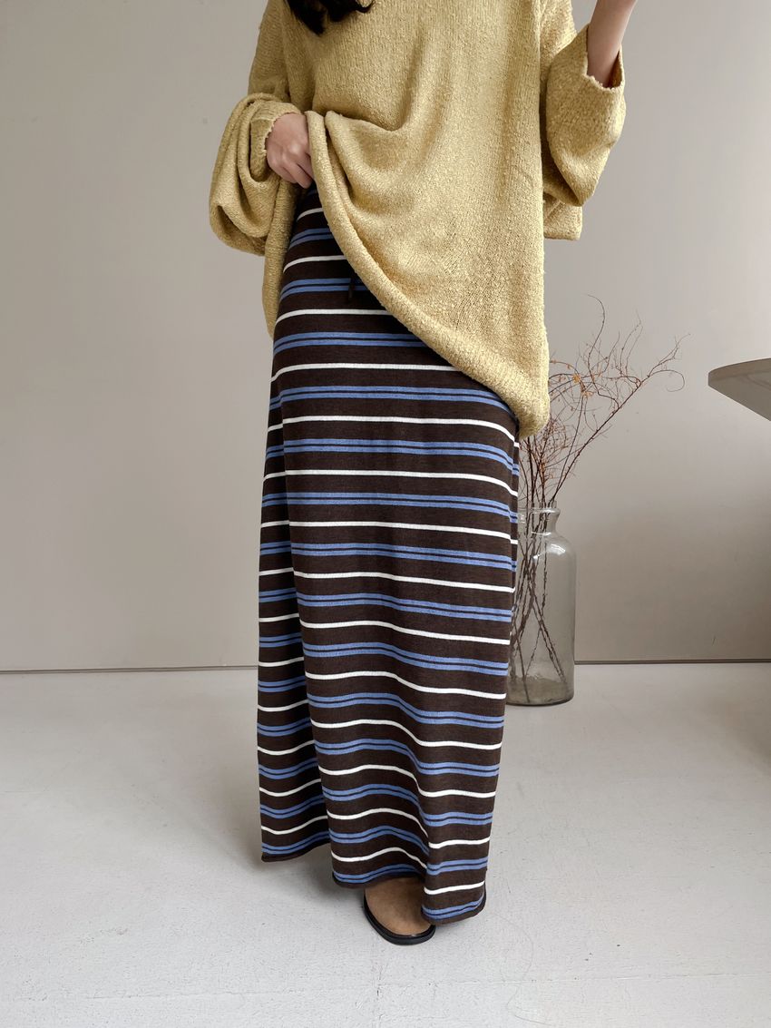 > Connie推薦款!薄針織跳色條紋長裙