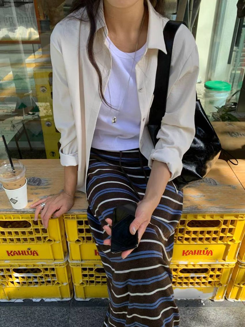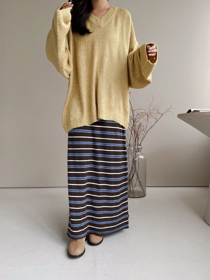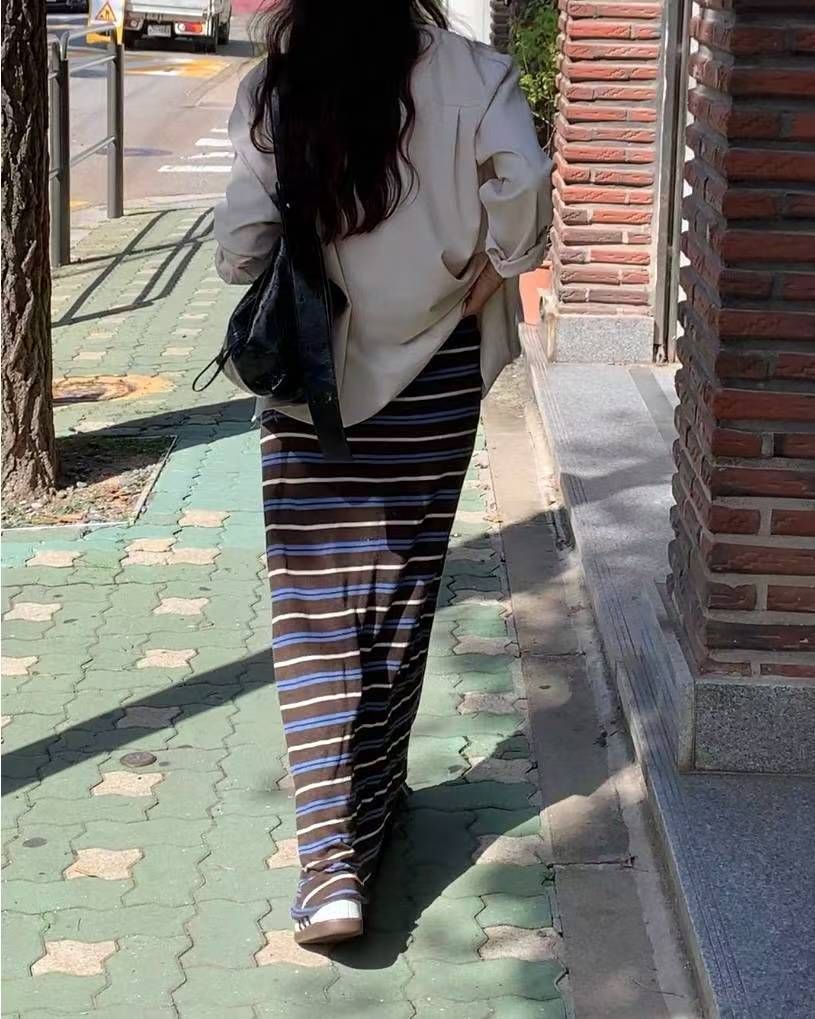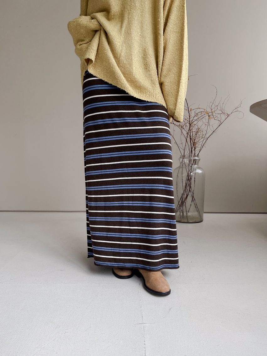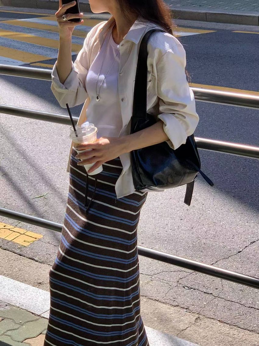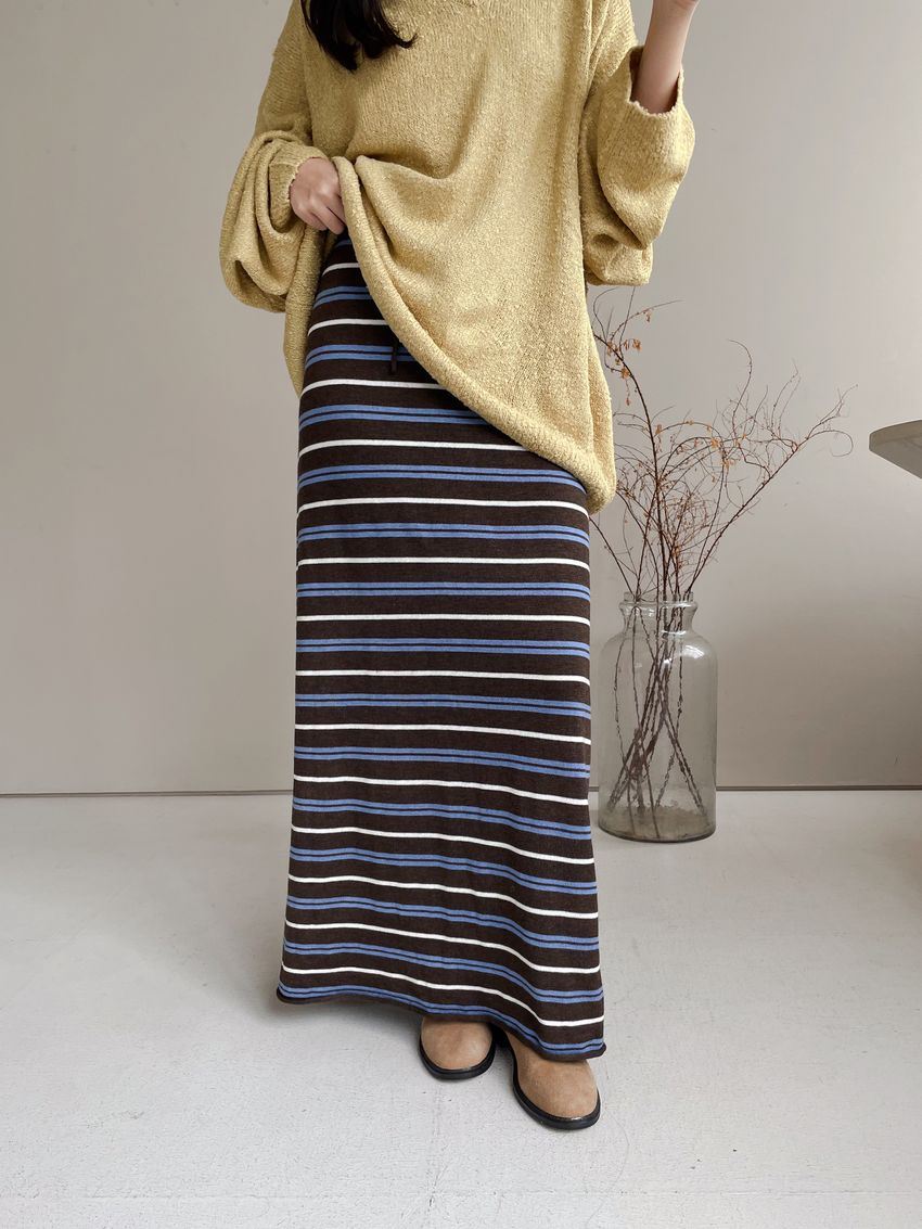 > Connie推薦款!薄針織跳色條紋長裙