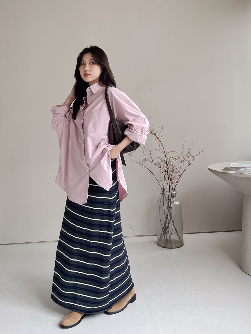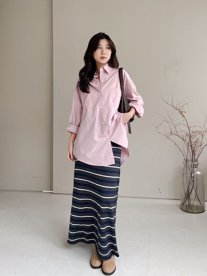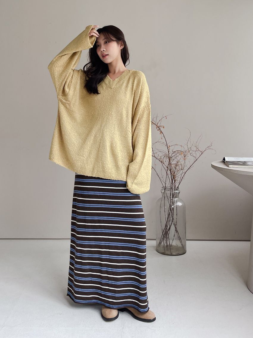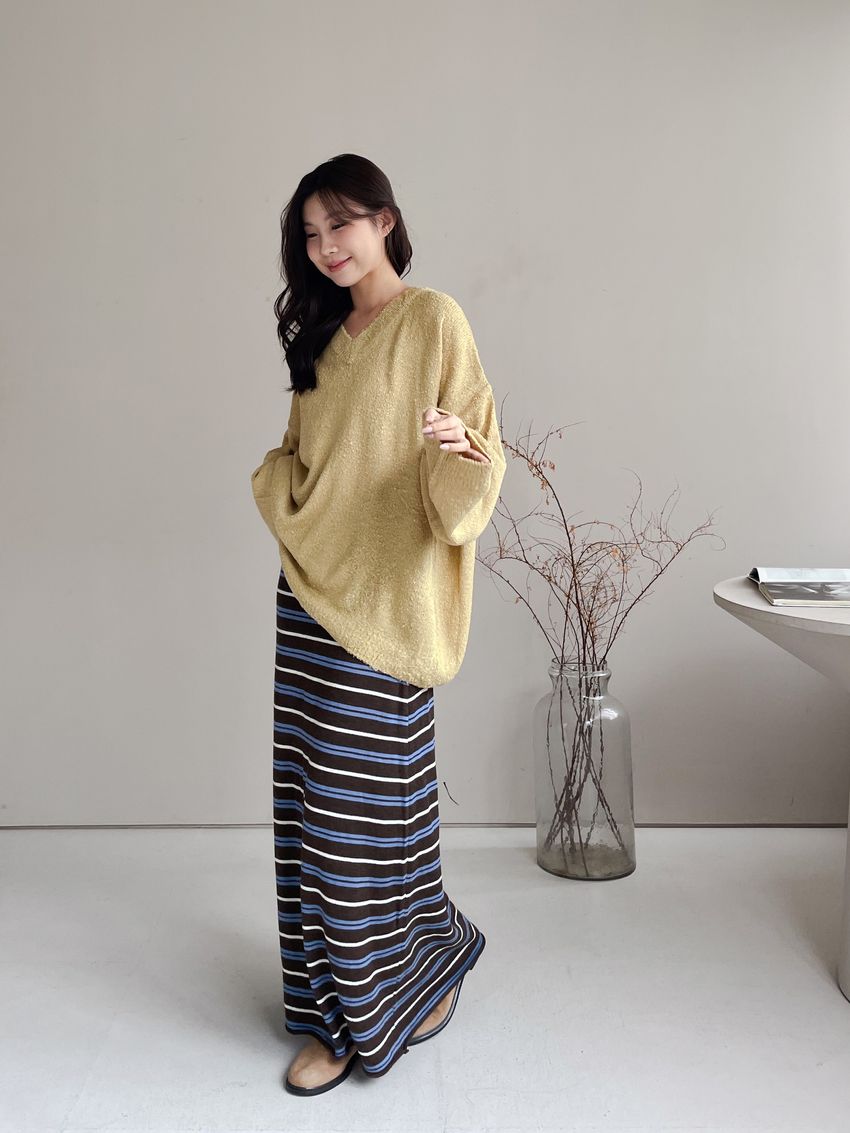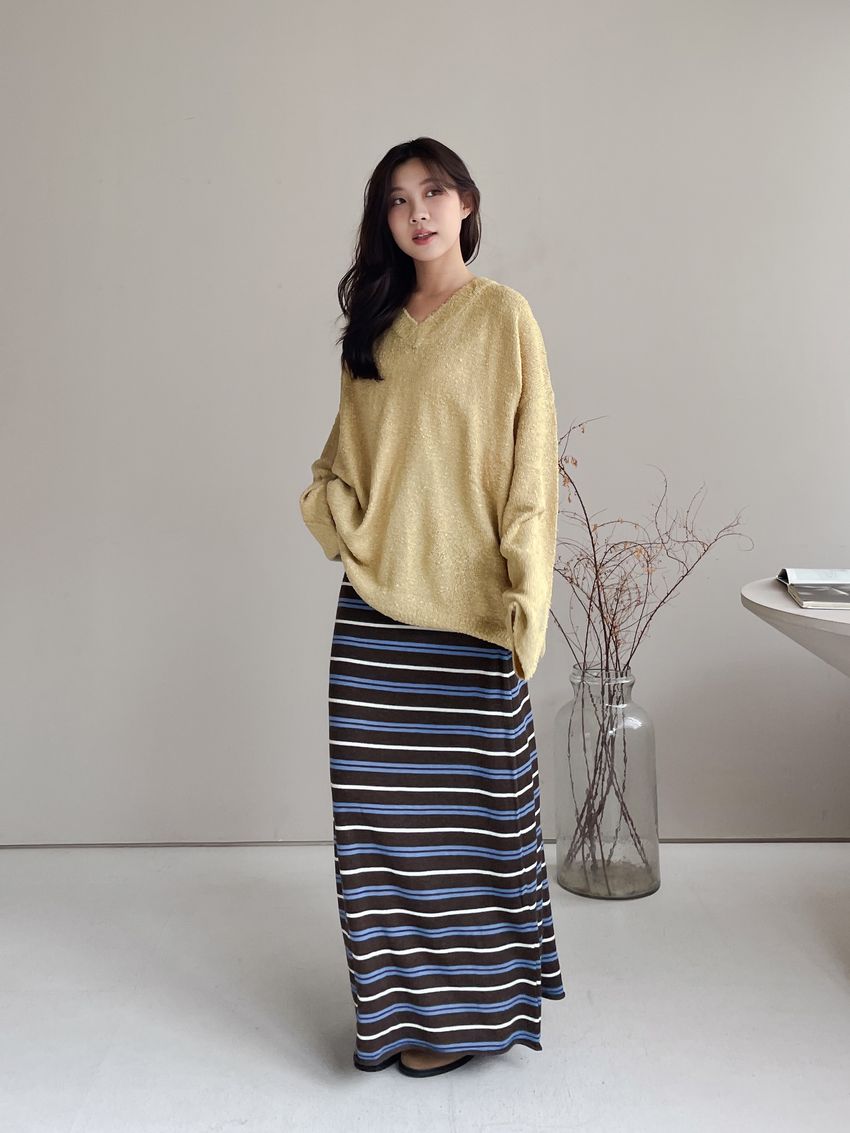 > Connie推薦款!薄針織跳色條紋長裙