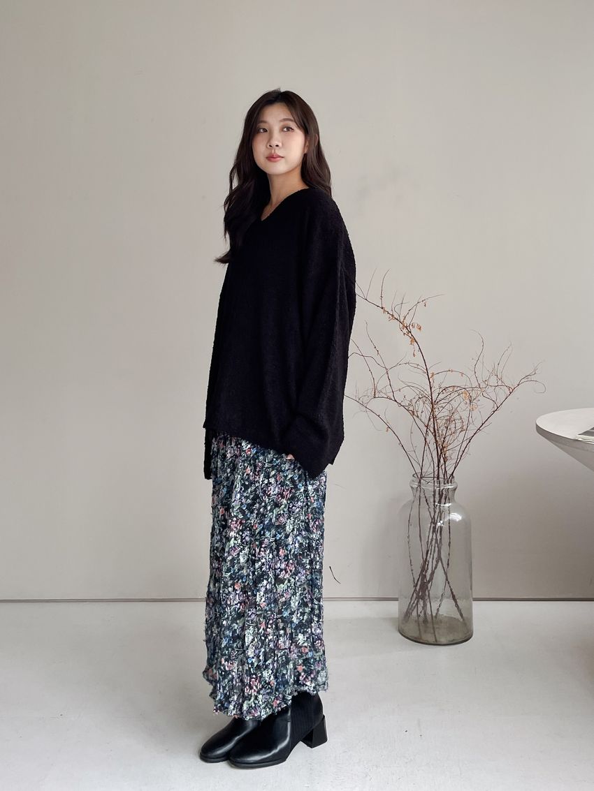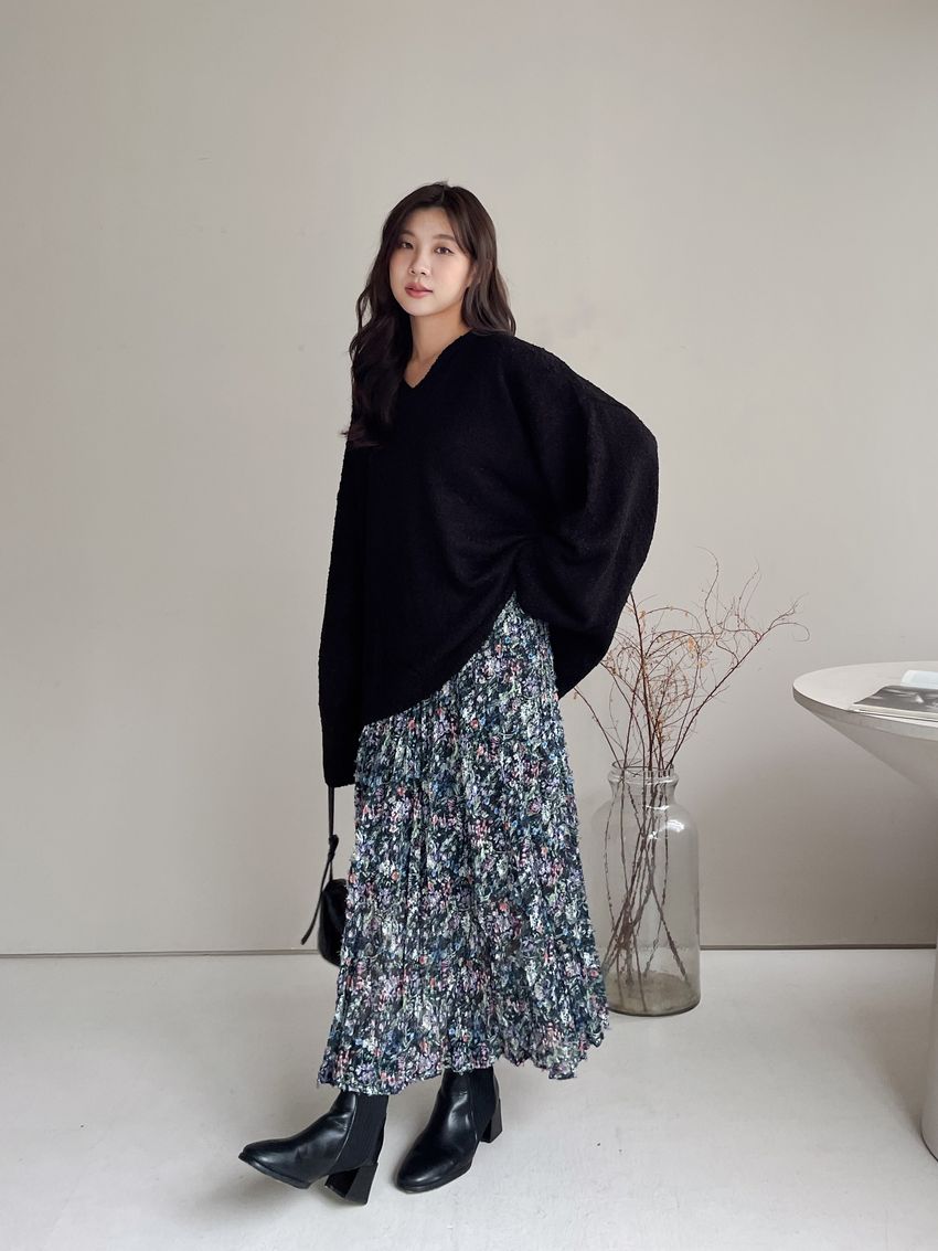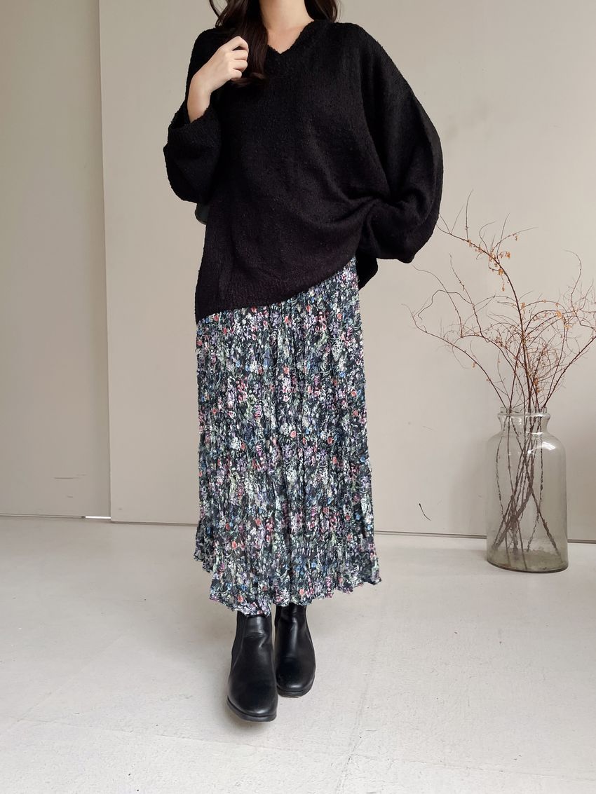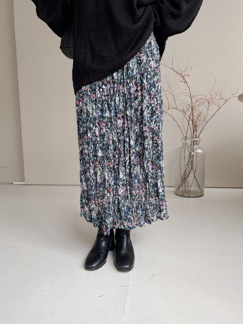 Connie推薦款!莫內彩花植絨揉皺雪紡裙