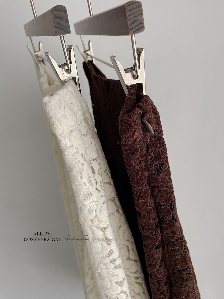 100%poly後腰鬆緊 側拉鍊穿脫布料無彈性咖啡色 / 白色單一尺寸 建議S號~小L號 以內 身型適合model / Yen - 159cm / 44kg 腰24 臀34蕾絲商品建議使用中性洗劑冷水輕柔手洗勿用溫熱水、勿長時間浸泡、勿烘乾、勿強力脫水、勿大力扭轉