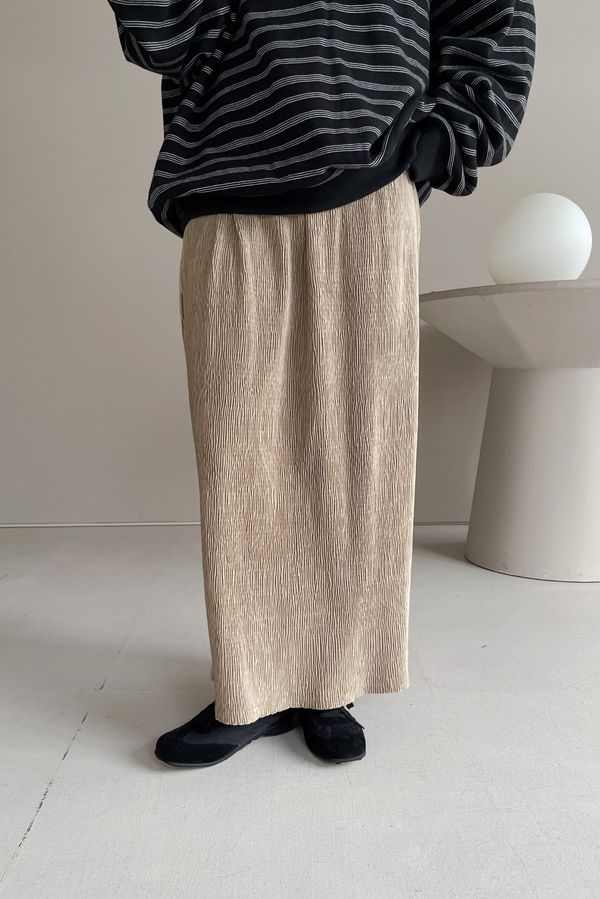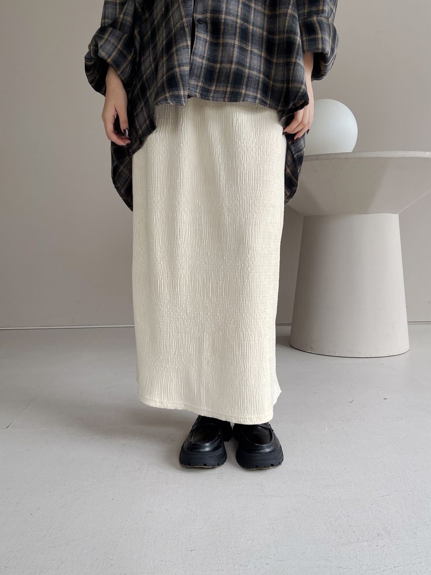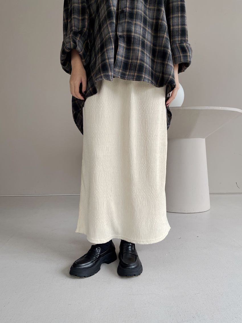 100%poly腰圍無鬆緊 尺寸用綁帶調整無內裡 後下擺開杈布料有彈性 滿分5分約2.5分棕褐色 / 米白色 / 黑色單一尺寸 建議S號~L號 以內 身型適合model / Yen - 159cm / 44kg 腰24 臀34