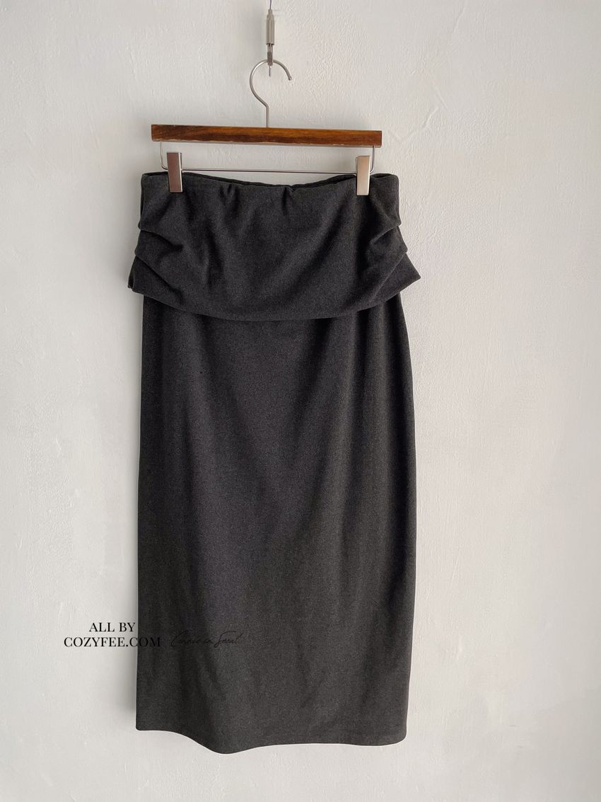腰側抓摺毛呢裙(直播款)(特)
