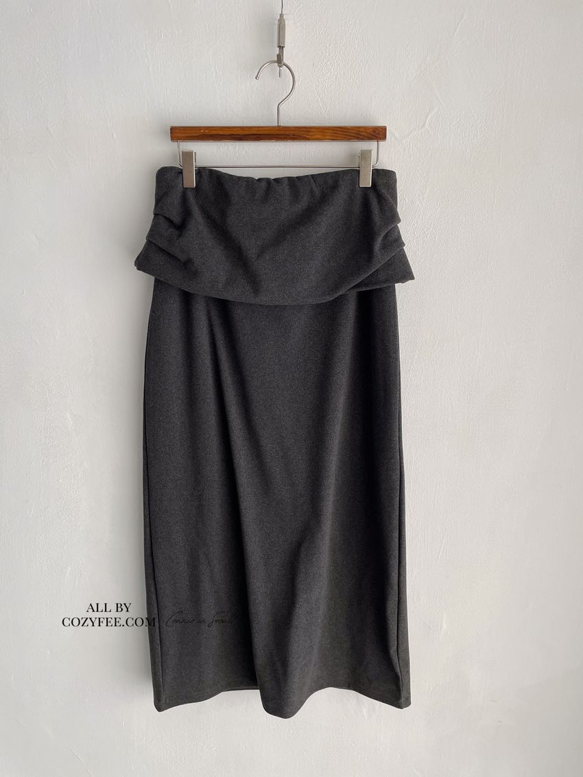 > 腰側抓摺毛呢裙(直播款)(特)