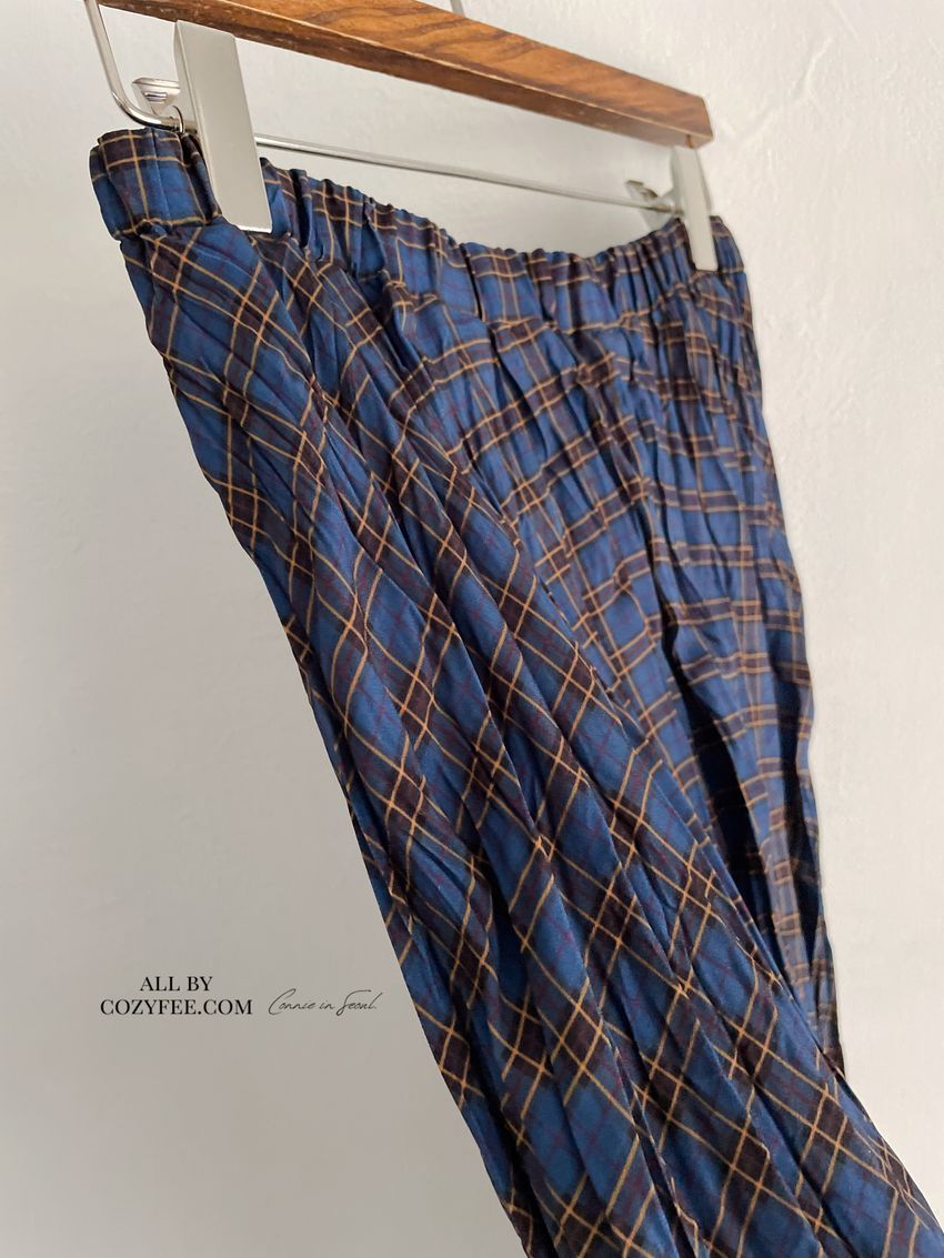 > Connie推薦款!揉皺格紋雪紡裙(直播款)