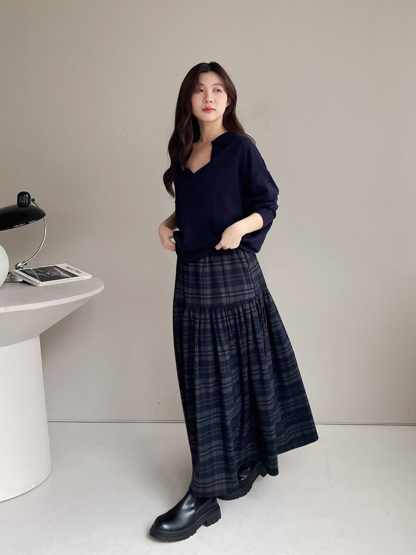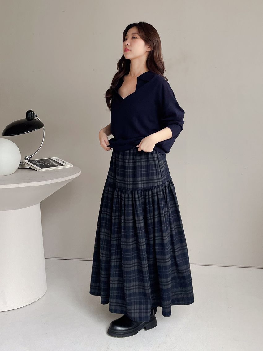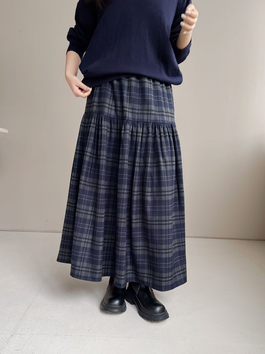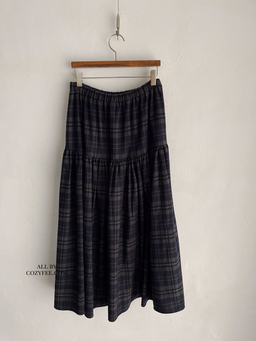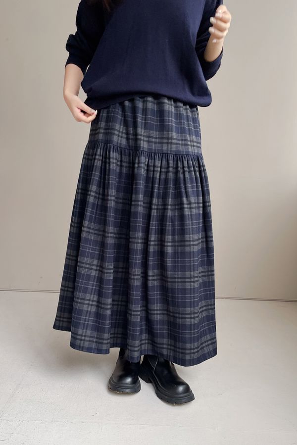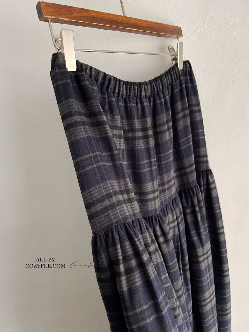 > Connie推薦款!藍綠低調格紋微澎圓裙