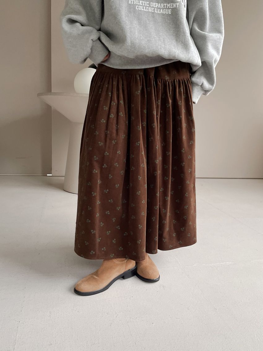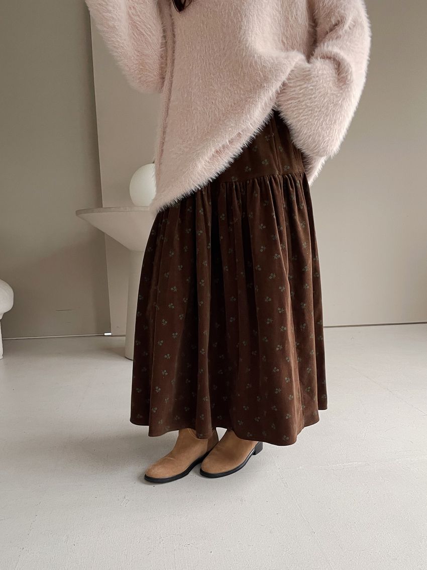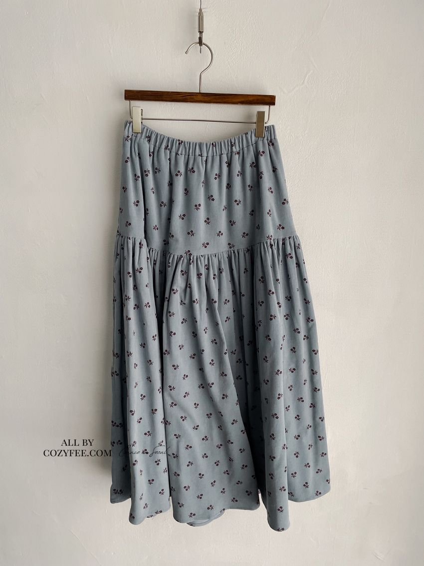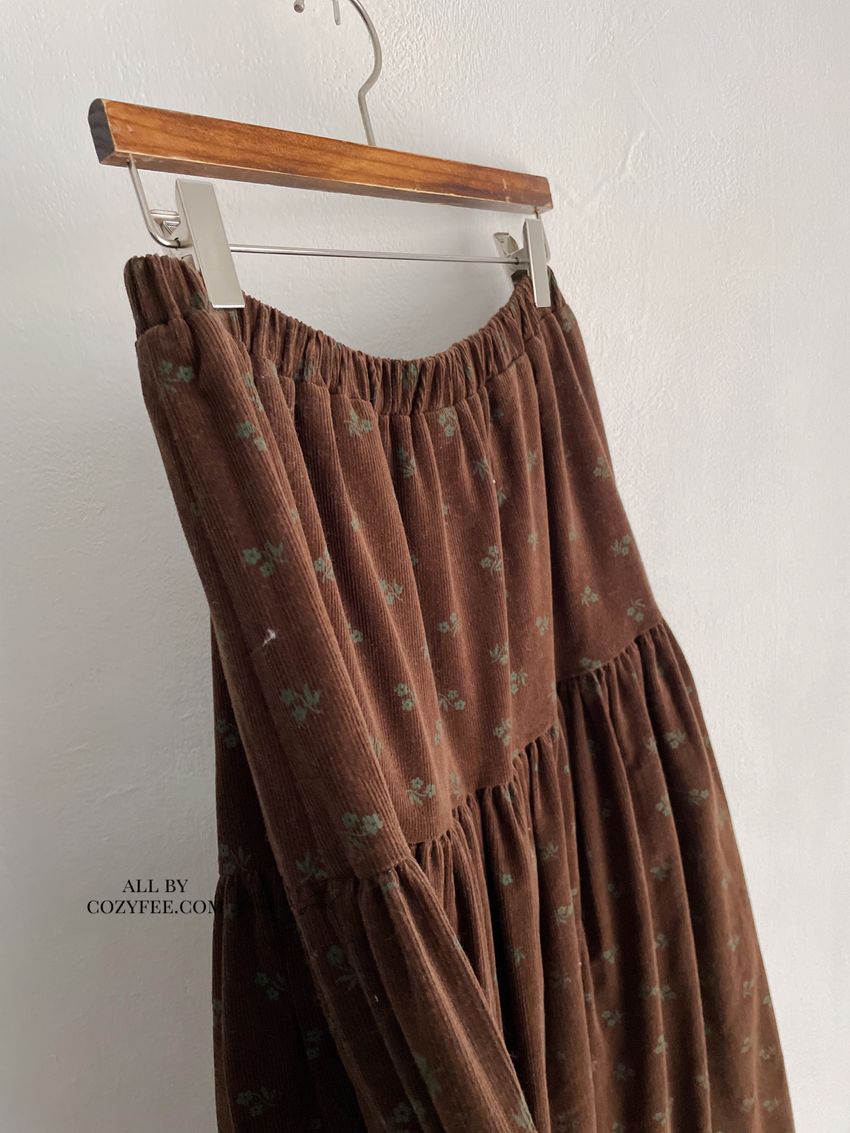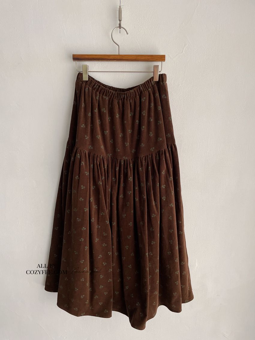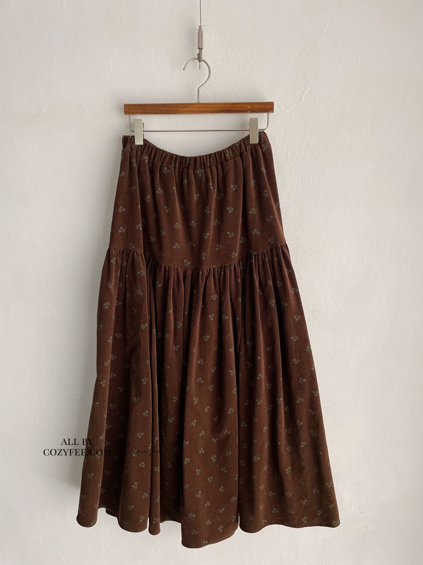 > 花草拓印細絨澎澎圓裙