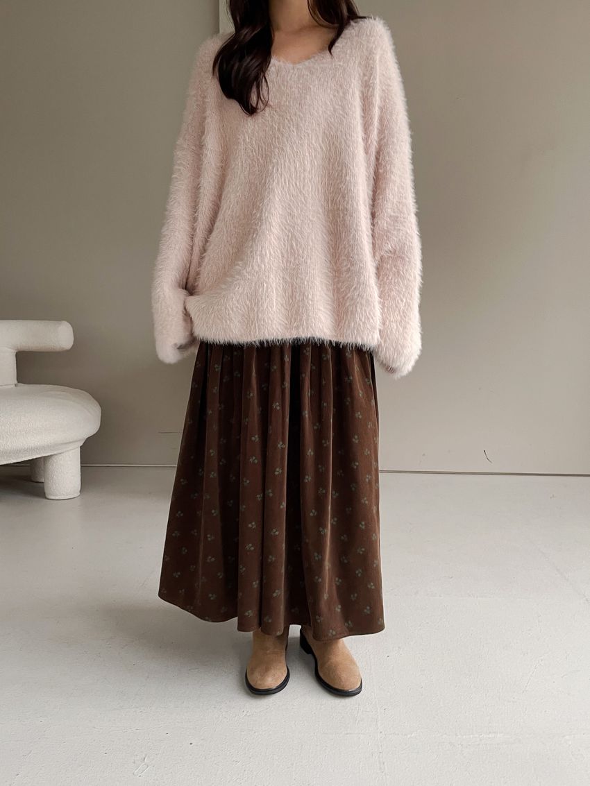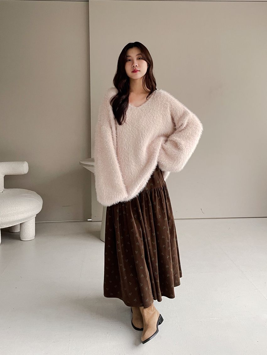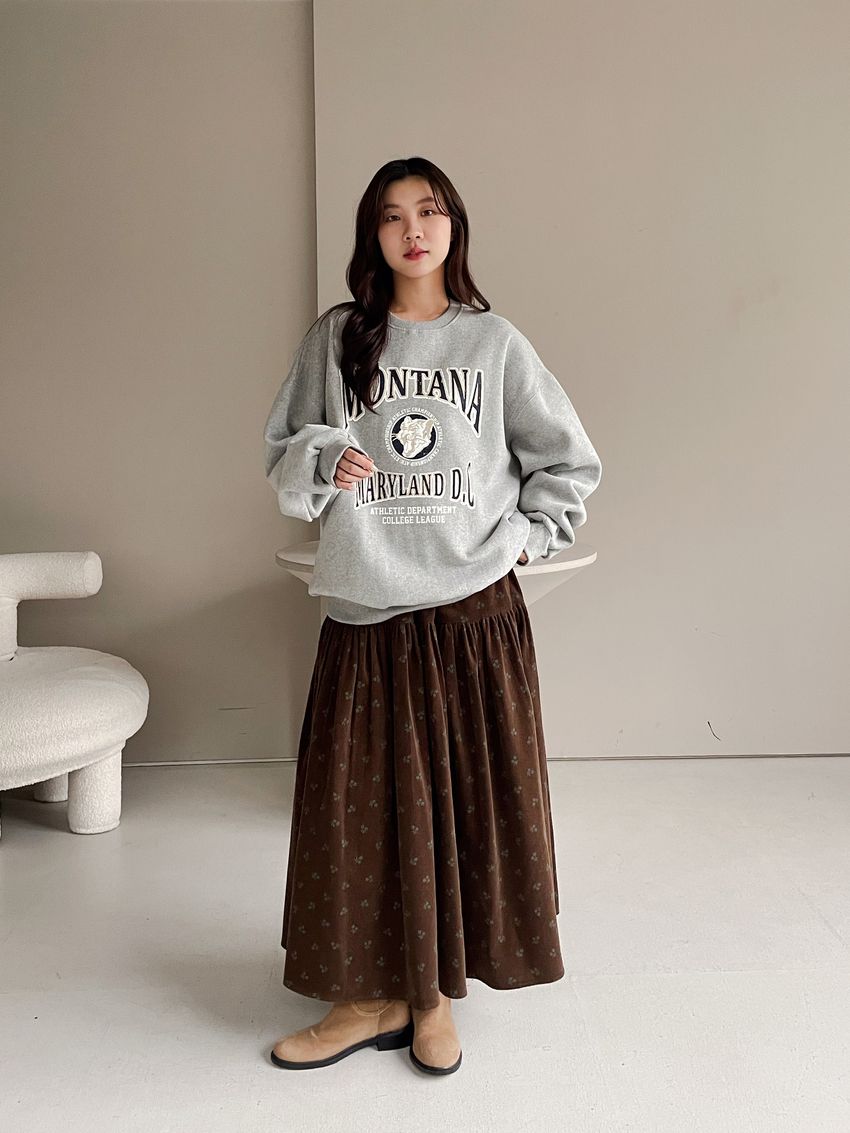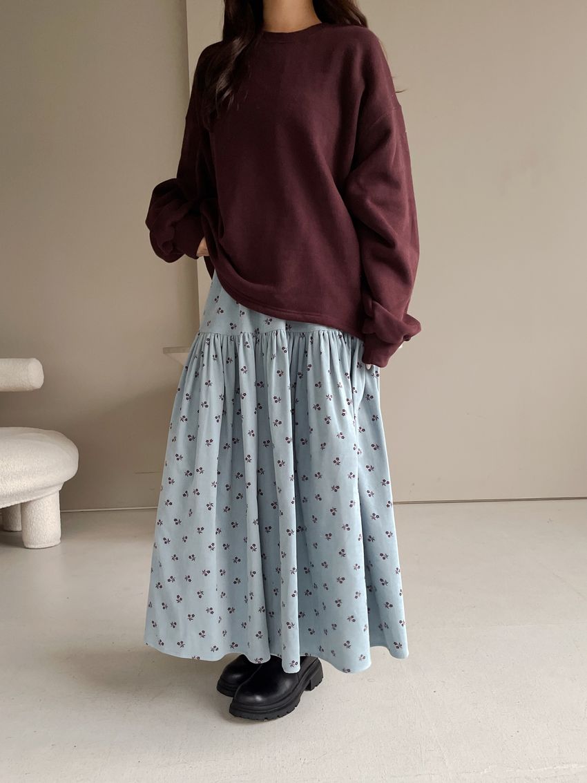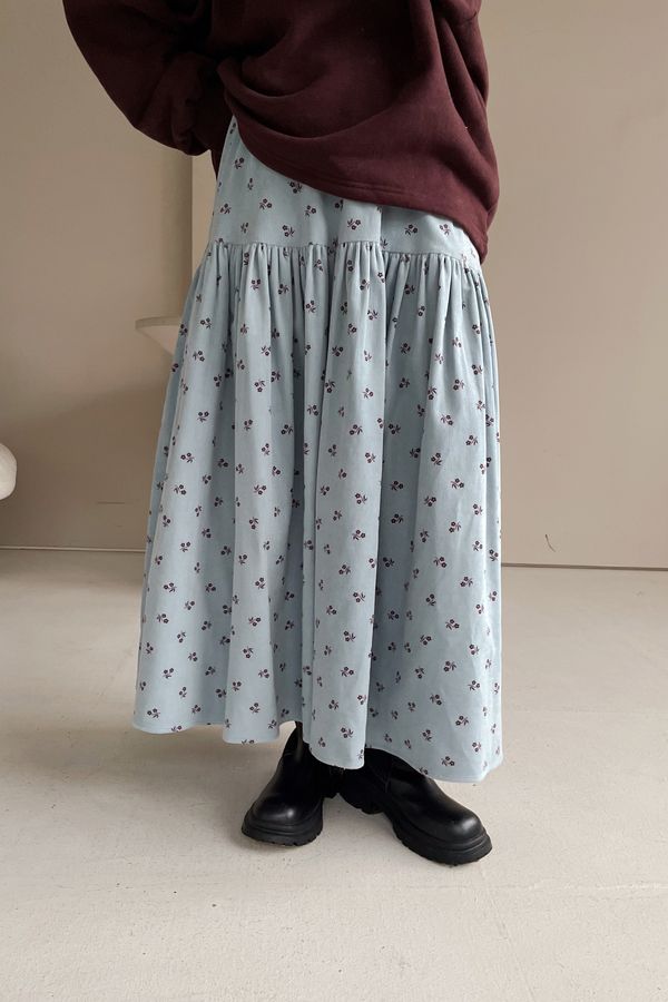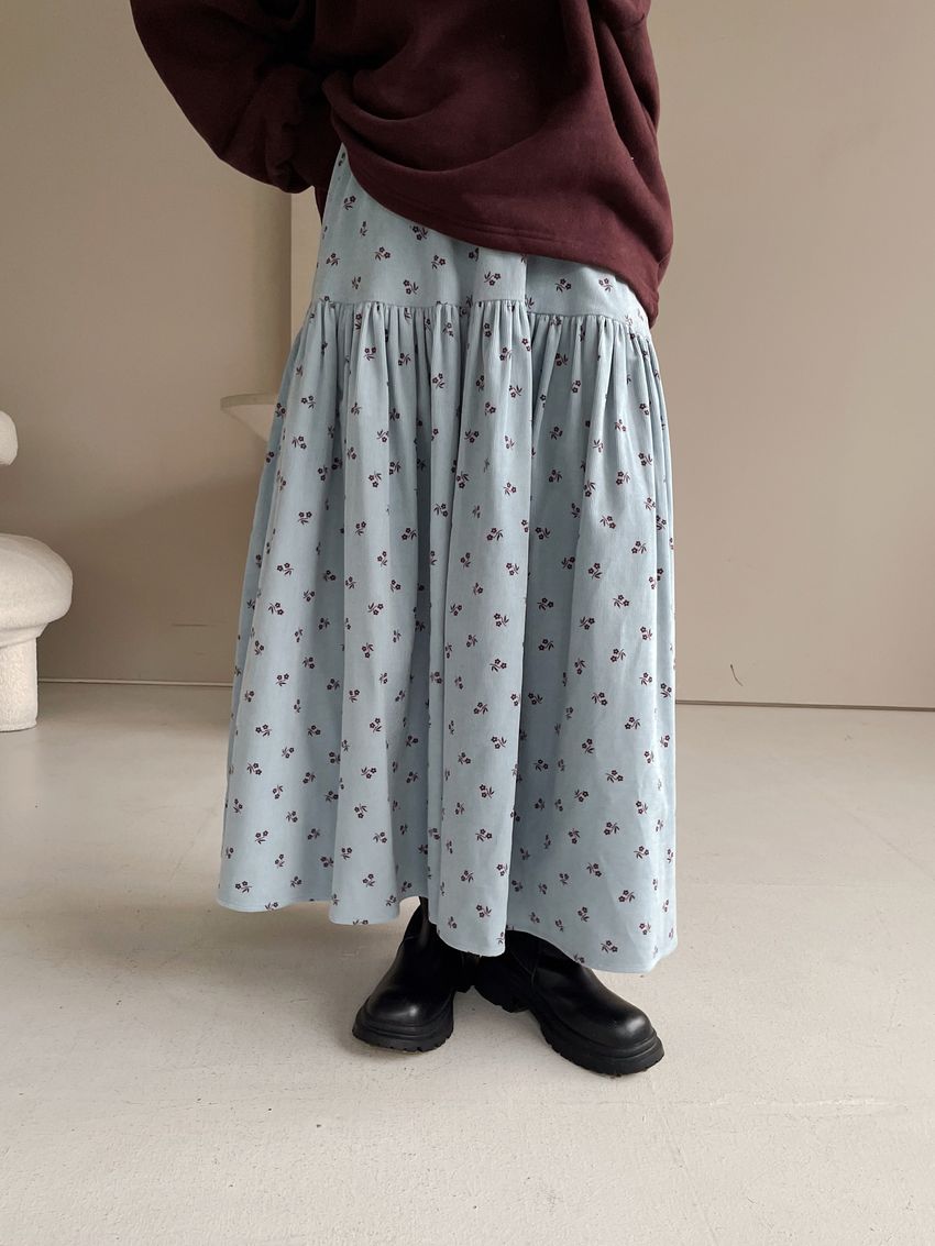 > 花草拓印細絨澎澎圓裙