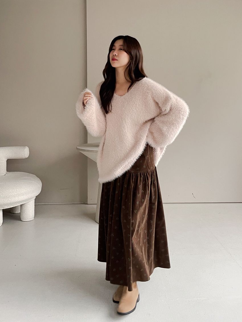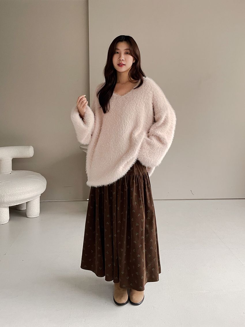 花草拓印細絨澎澎圓裙