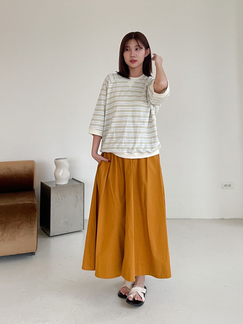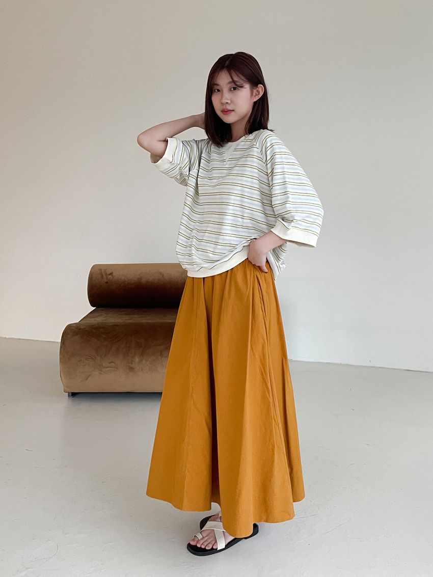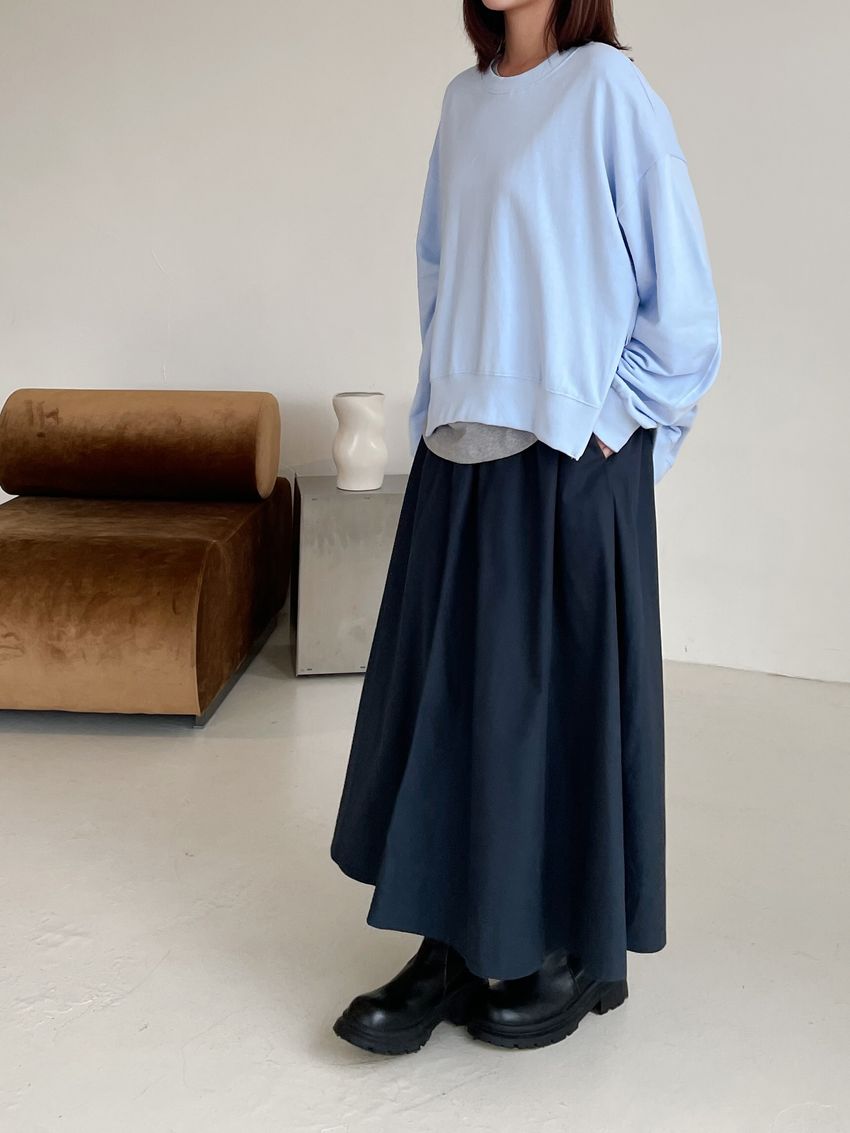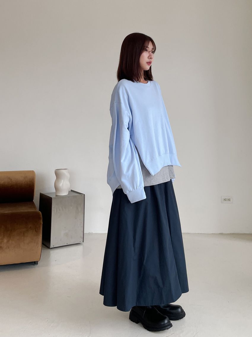 側拉鍊棉質大圓裙