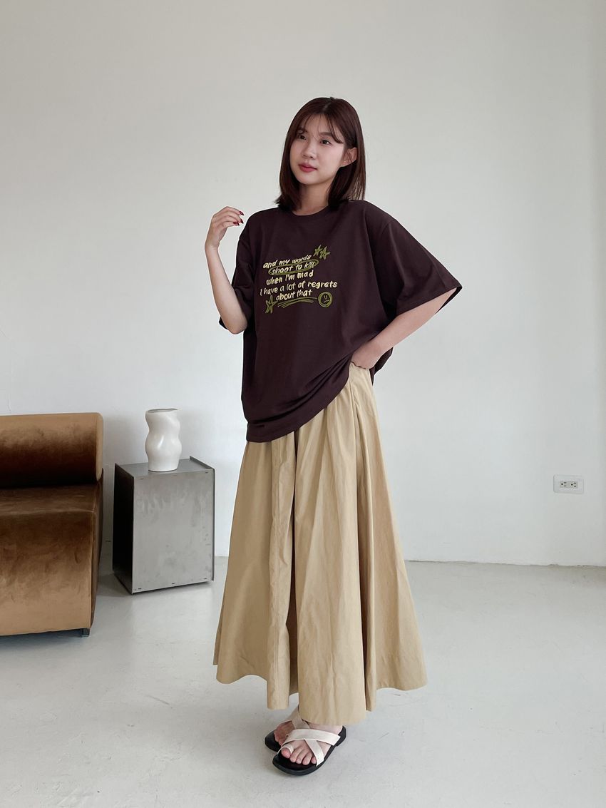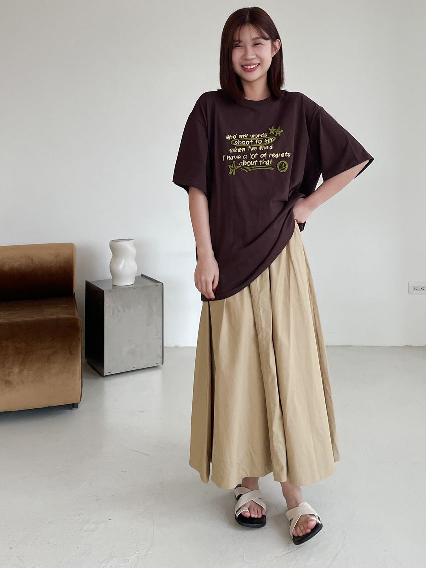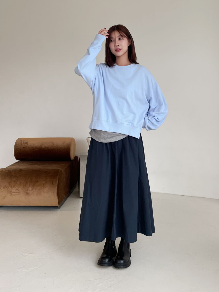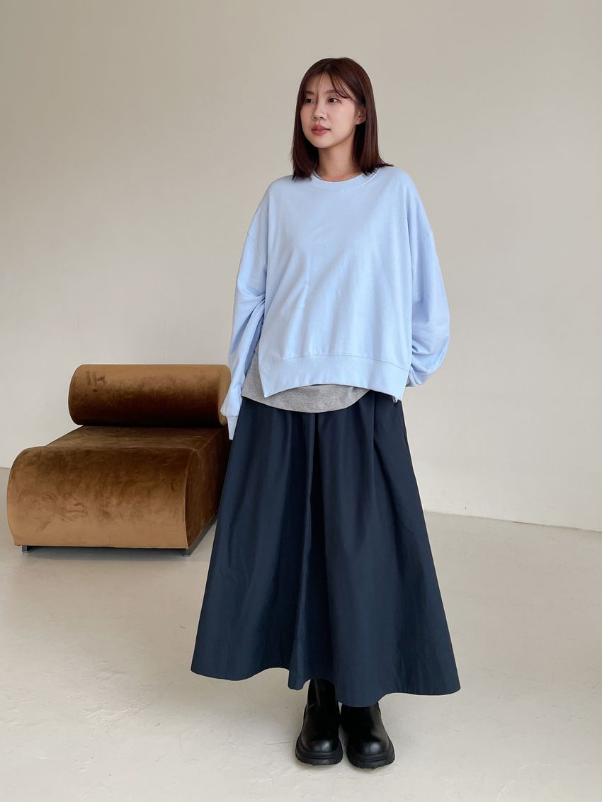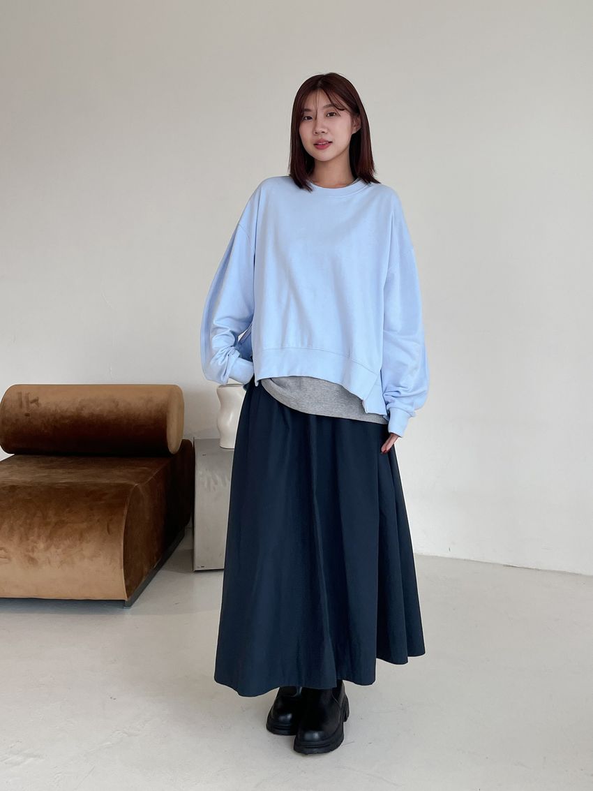 側拉鍊棉質大圓裙