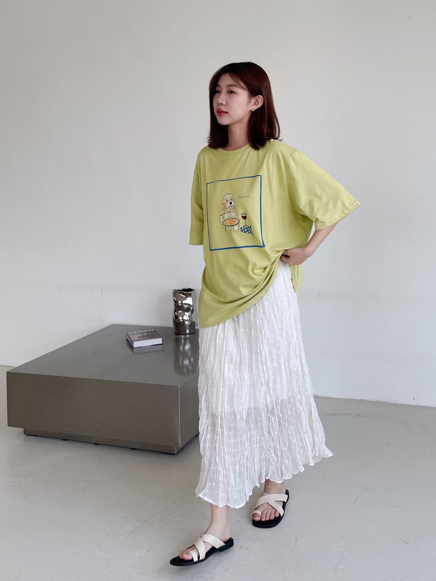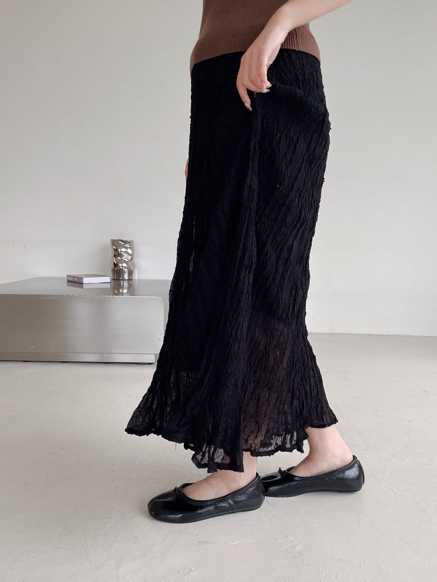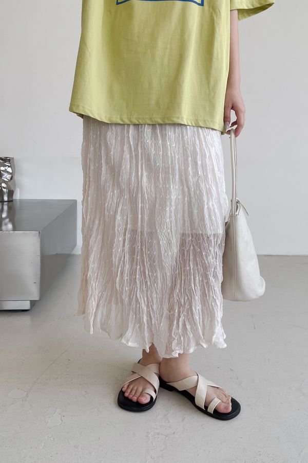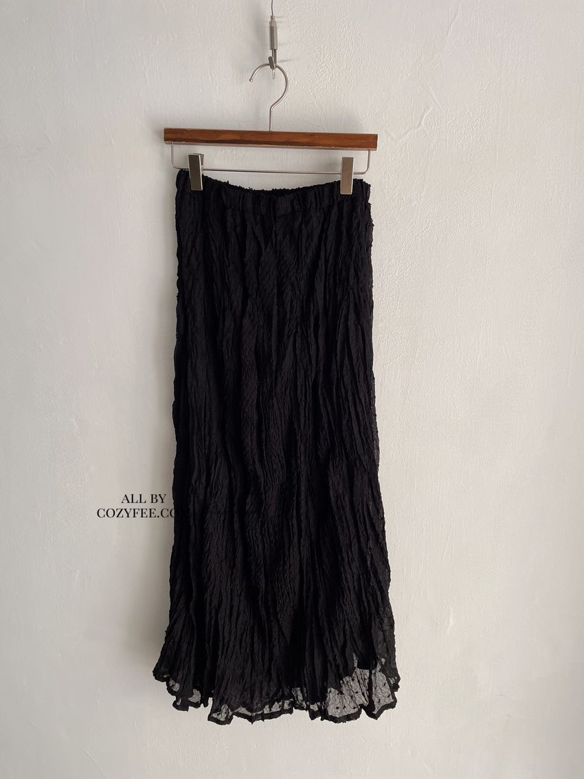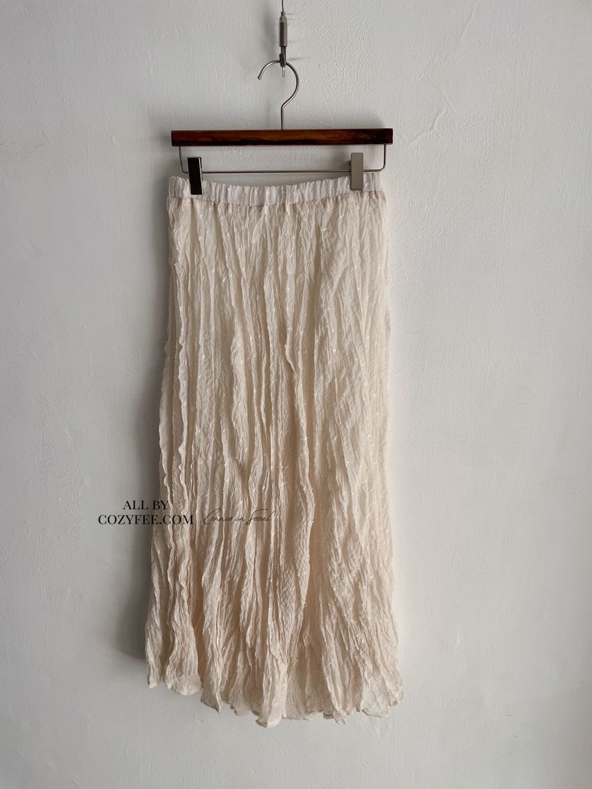 雪點植絨揉皺雪紡紗裙