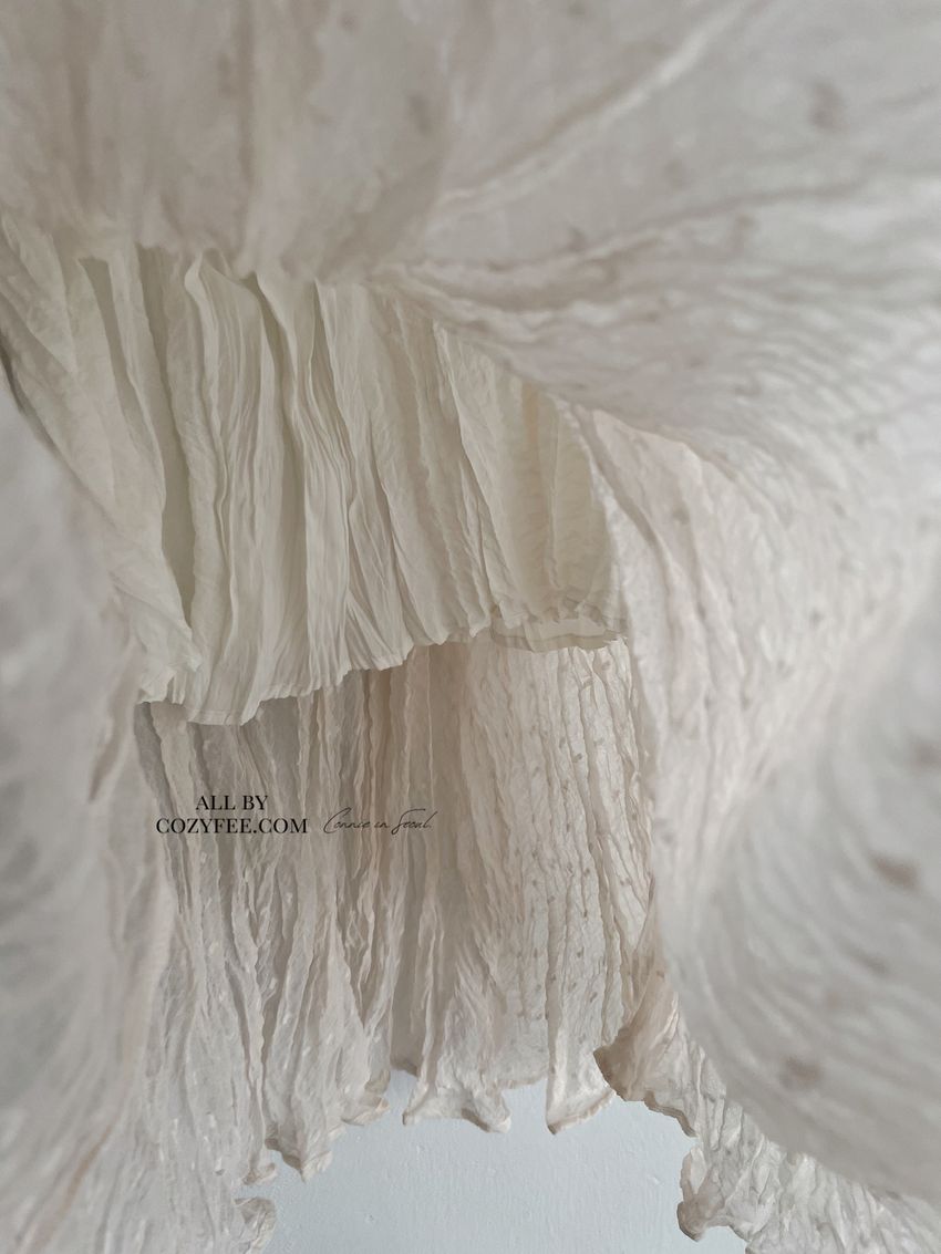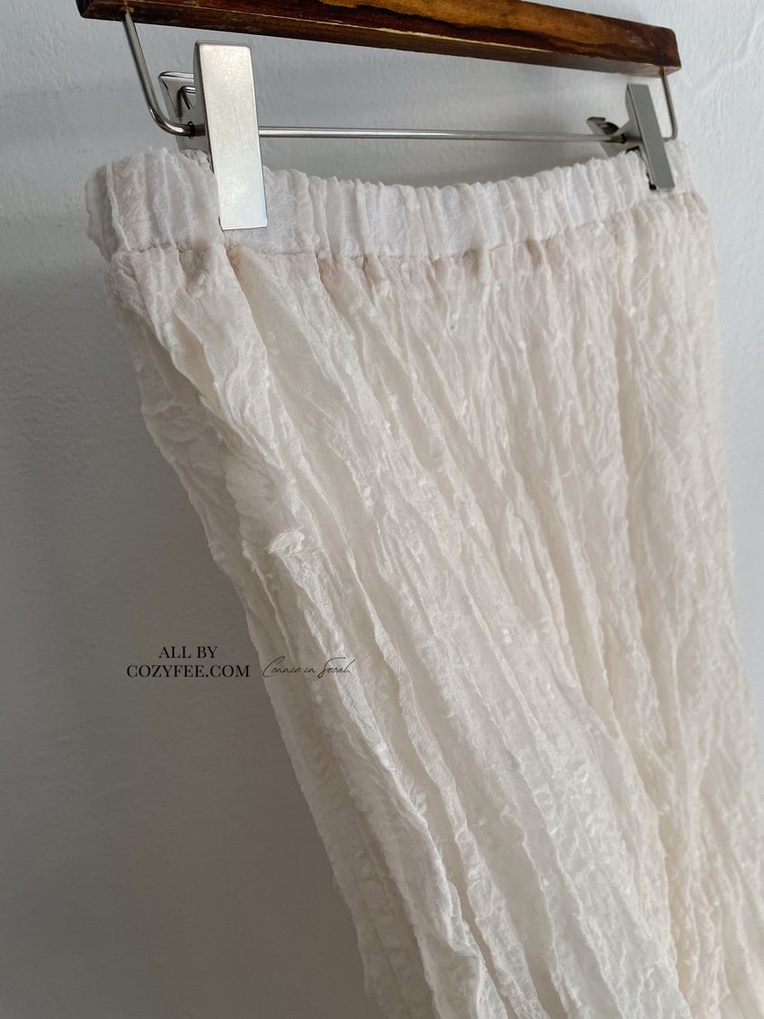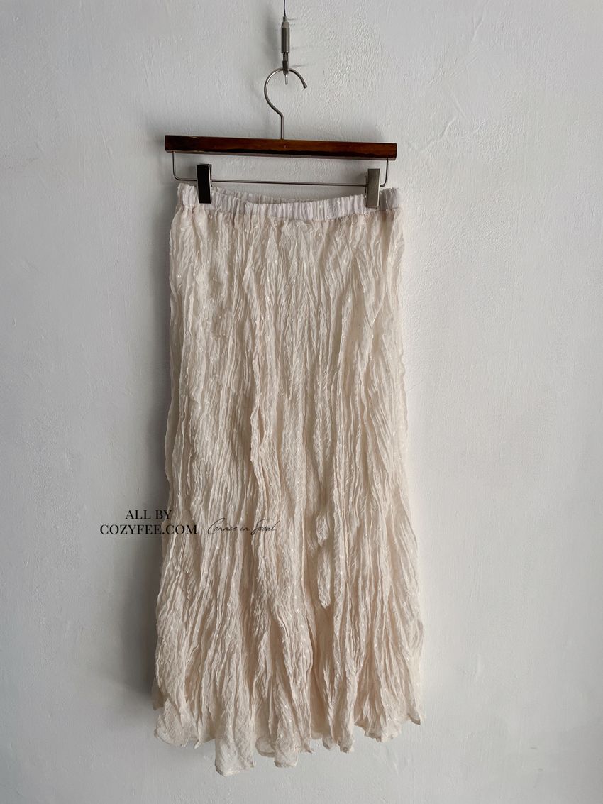 > 雪點植絨揉皺雪紡紗裙